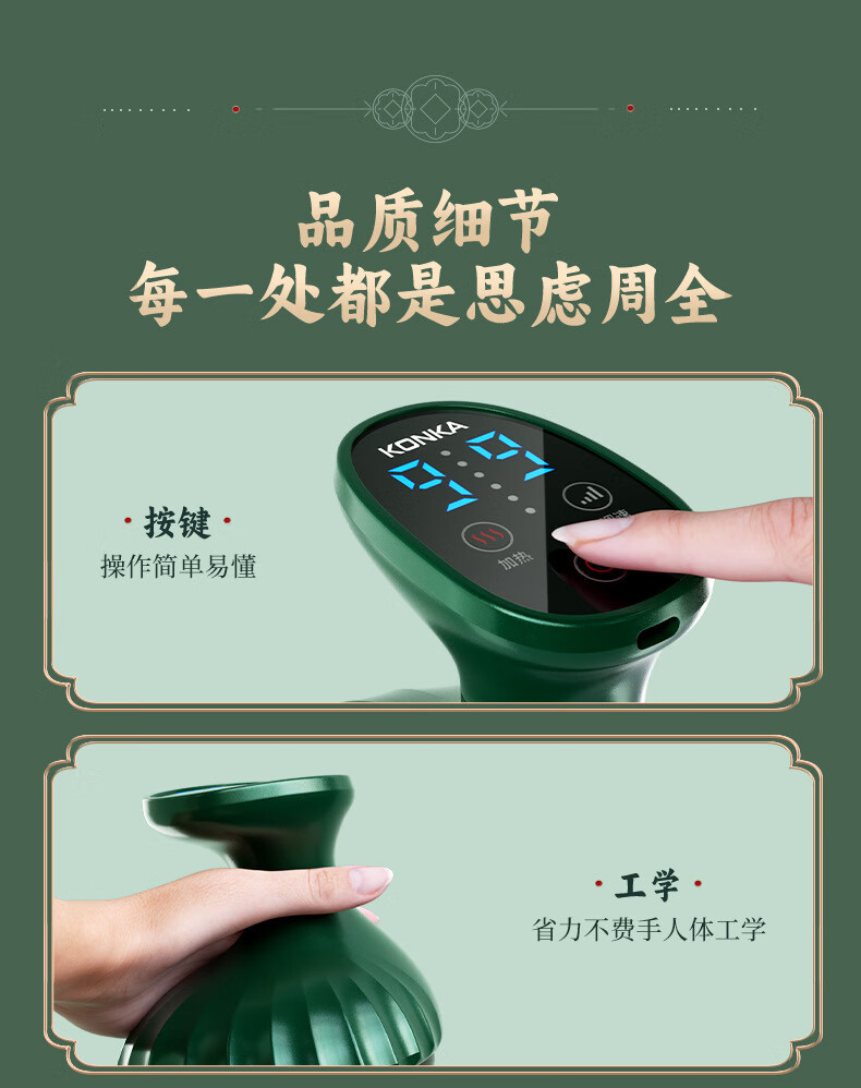 KONKA electric scraping instrument, whole body universal massage scraping board, stone cupping instrument, meridian brush scraping instrument, flagship model - LCD digital display, heated steel balls