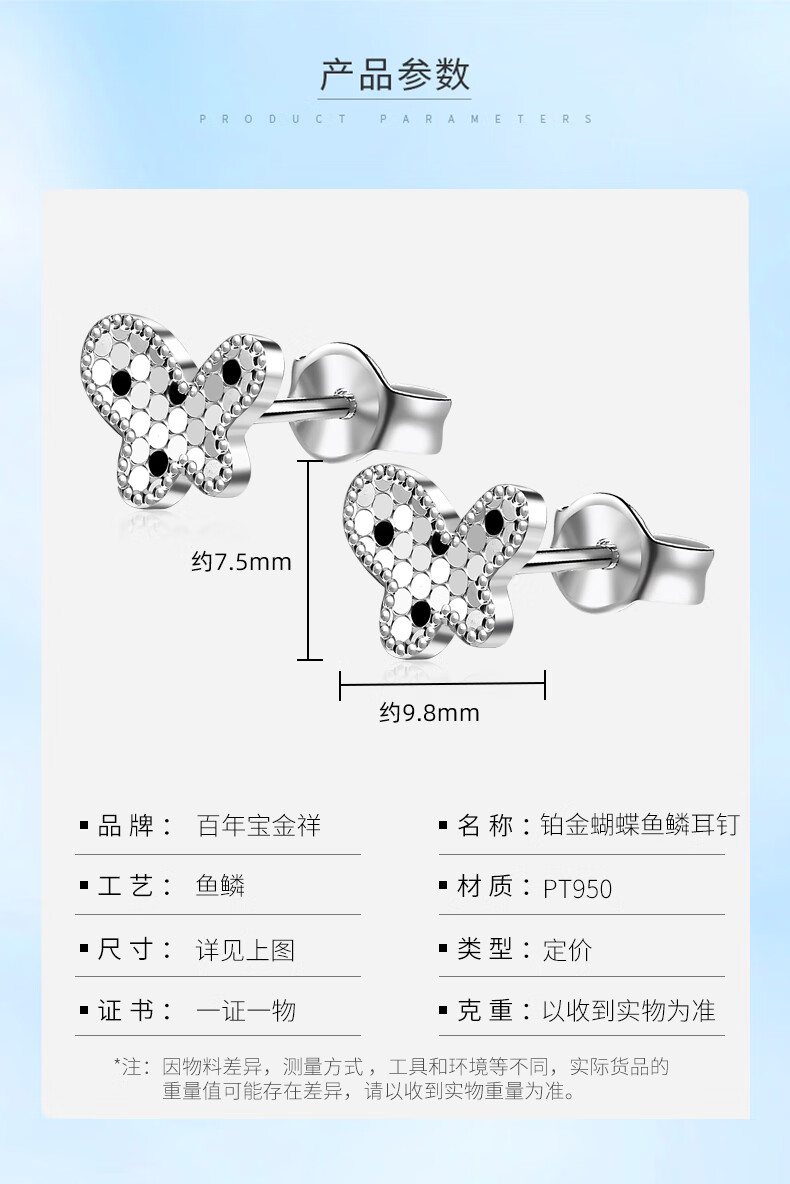 Centenary Baojinxiang PT950 Platinum Butterfly Earrings for Women Fish Scale CNC Car Flower Platinum Earrings for Girlfriends Light Luxury and High-Level Gifts Platinum Butterfly Fish Scale Earrings Weighing About 3.9-4 Grams