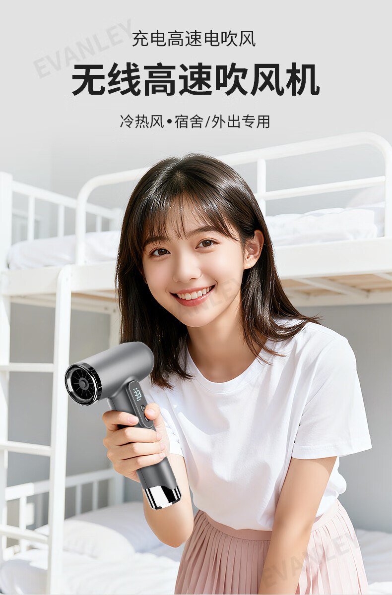 EVANLEY German Wireless Hair Dryer Rechargeable Student Dormitory Unplugged Battery Hair Dryer USB Hair Dryer Adjustable Hot and Cold Low Power Not Harmful to Hair Art Exam Portable 100,000 RPM - High Configuration Can Blow Hot Air Without Plug-In - Deep Space Gray