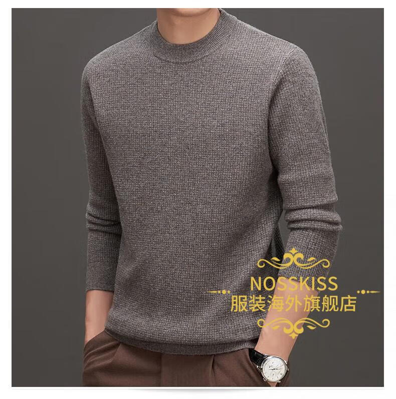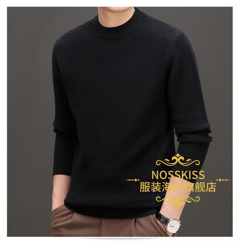 NOSSKISS luxury high-end brand pure woolen sweater for men in winter, warm inner sweater, Korean style solid color round neck knitted bottoming sweater, black ink, gift box, 3XL 190, suitable for 180-200Jin Jin equals 0.5 kg