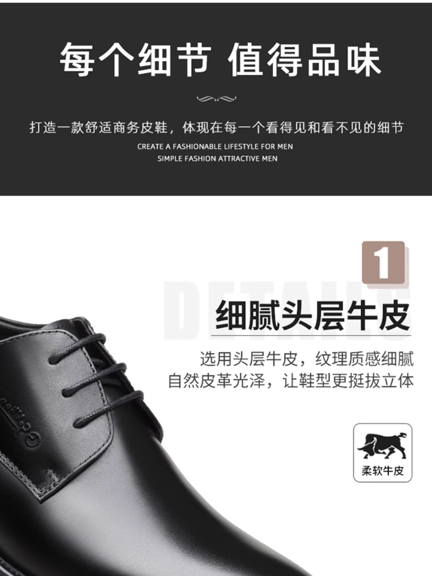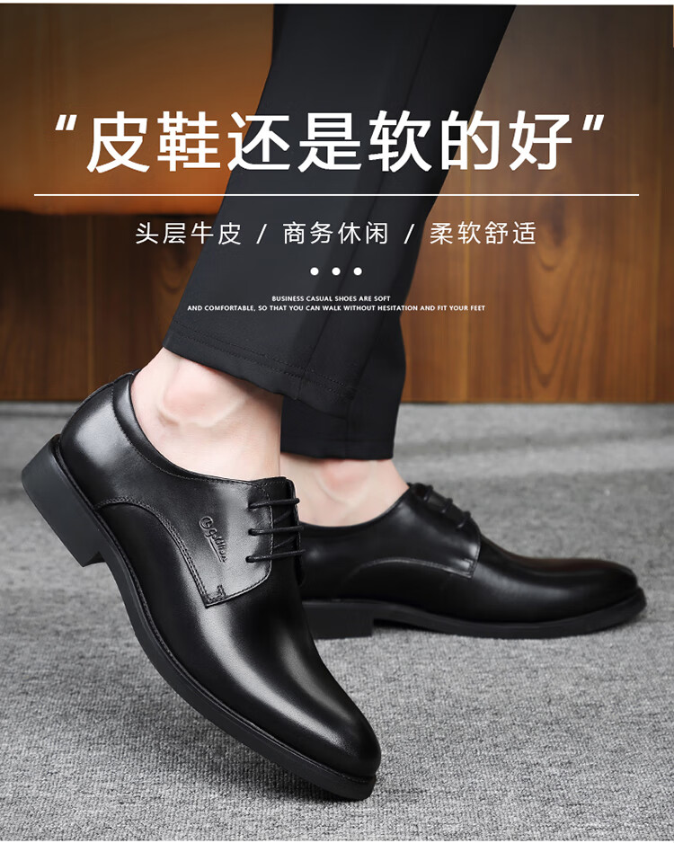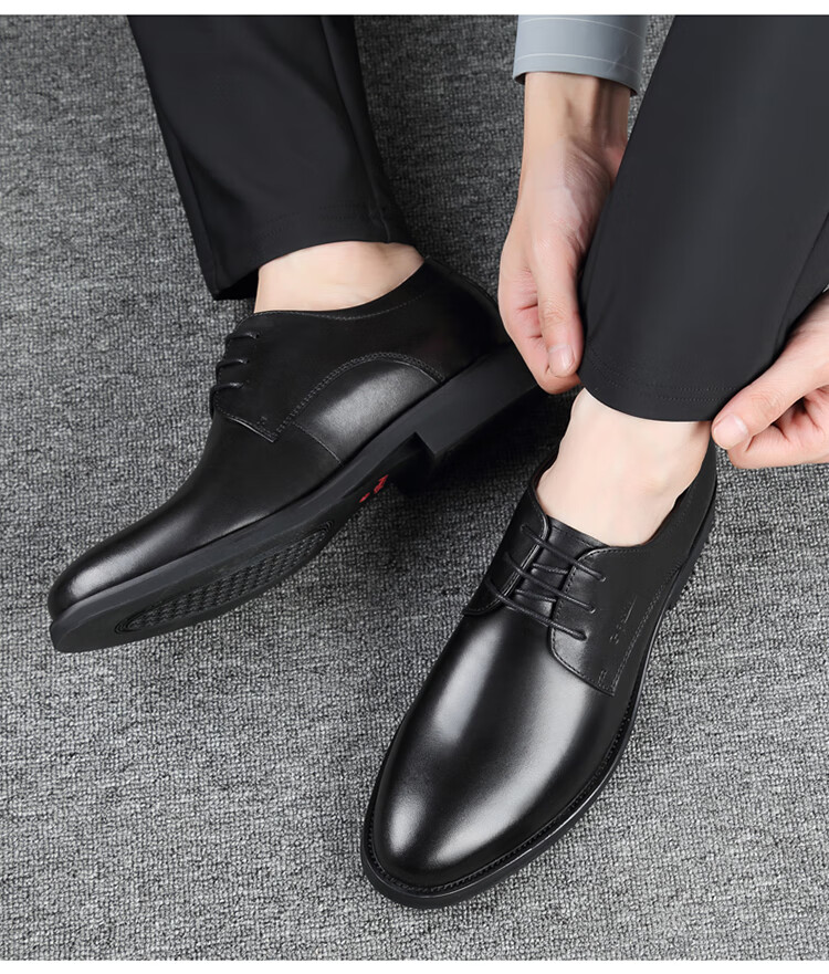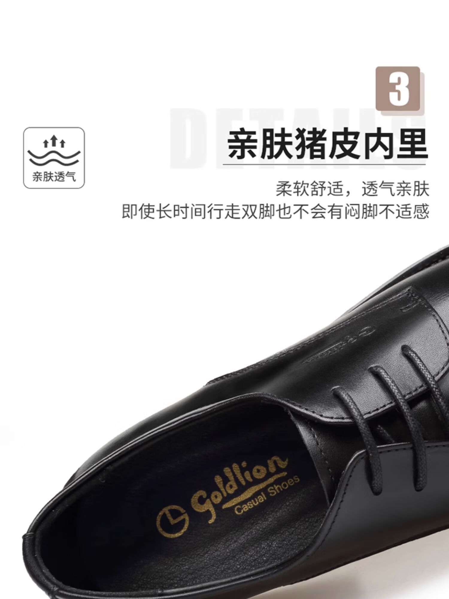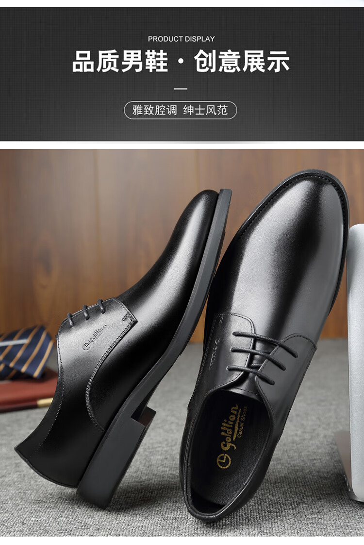 Goldlion Men's Shoes 2025 New Business Formal Lace-Up Leather Shoes Men's Genuine Leather Soft Sole Casual Men's Wedding Shoes 38 European Size (one size larger) It is recommended to order one size smaller