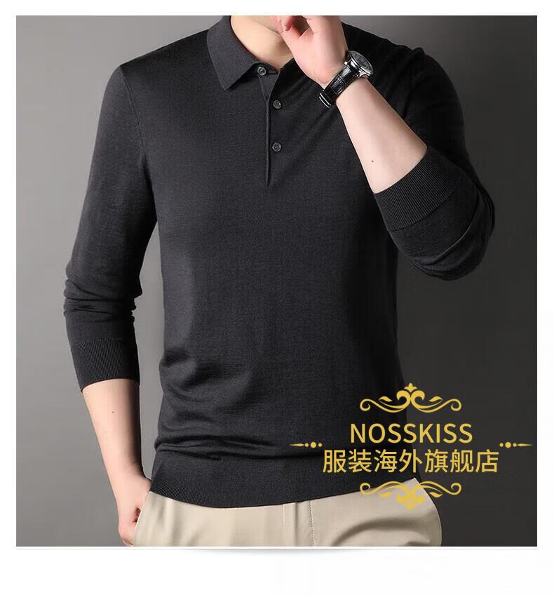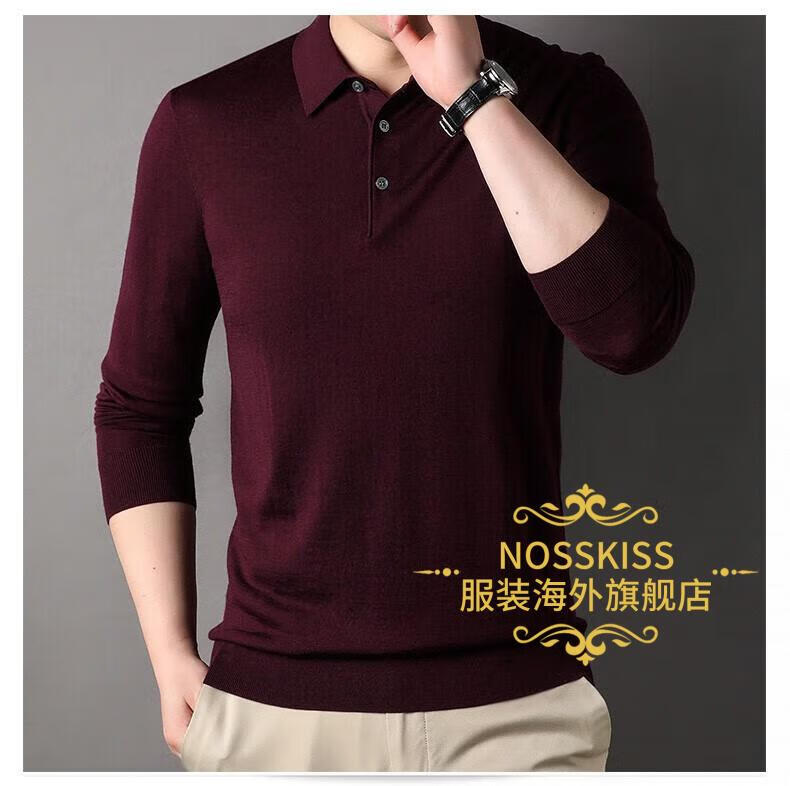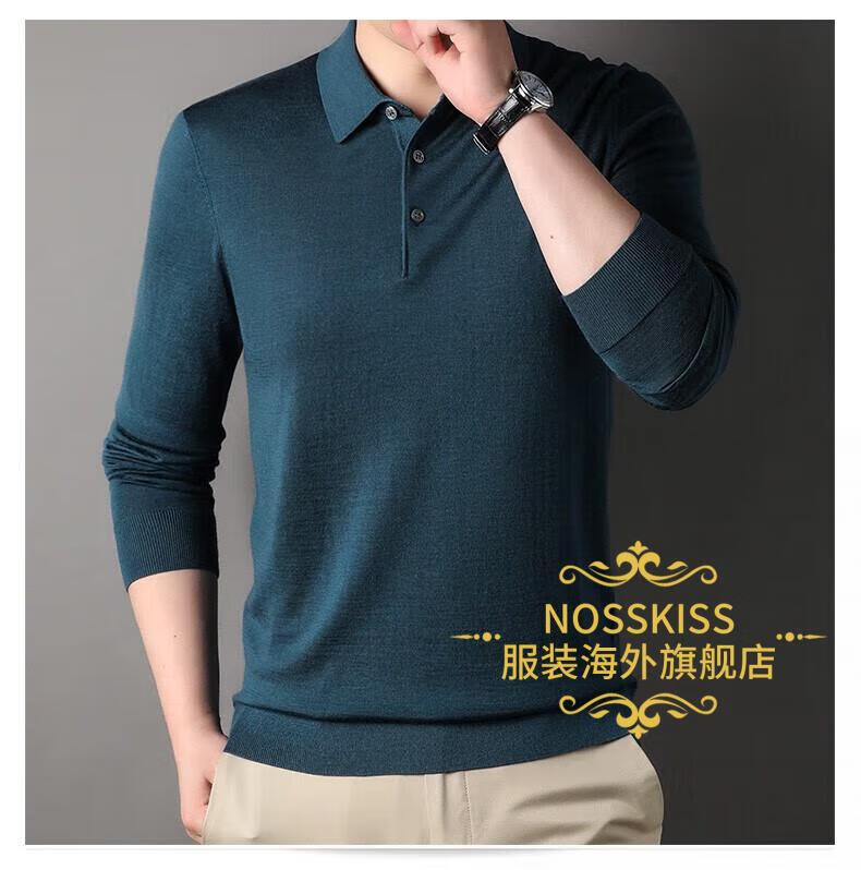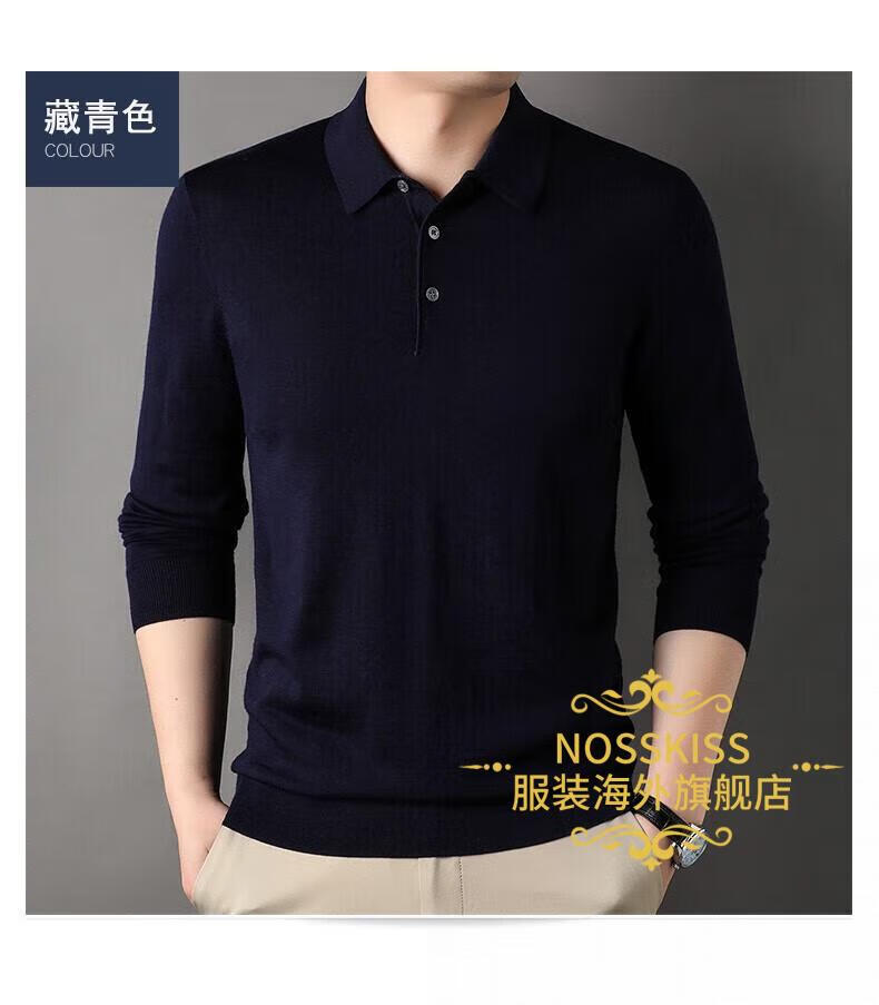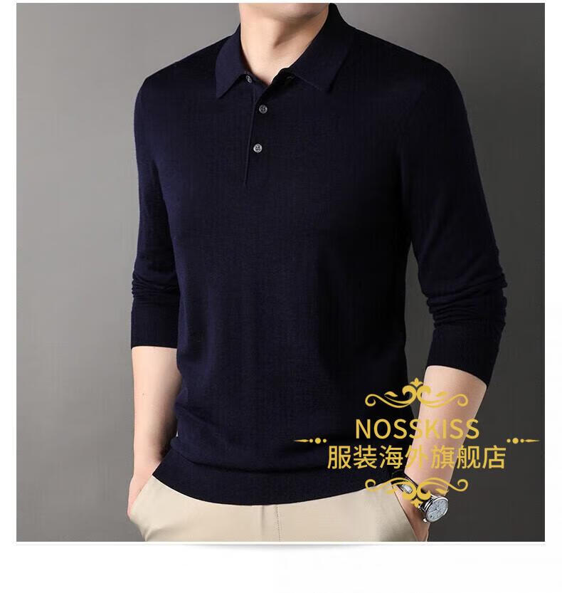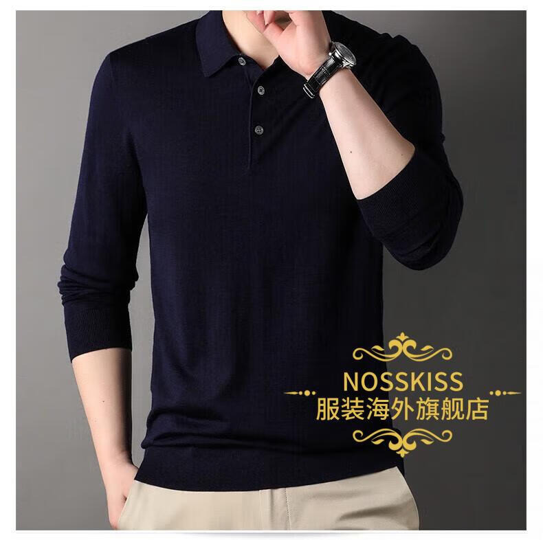 NOSSKISS luxury high-end brand wool sweater men's pure wool sweater men's spring and autumn thin knitted business polo bottoming shirt navy blue gift box 3XL 190 suitable for 180-200Jin Jin equals 0.5 kg