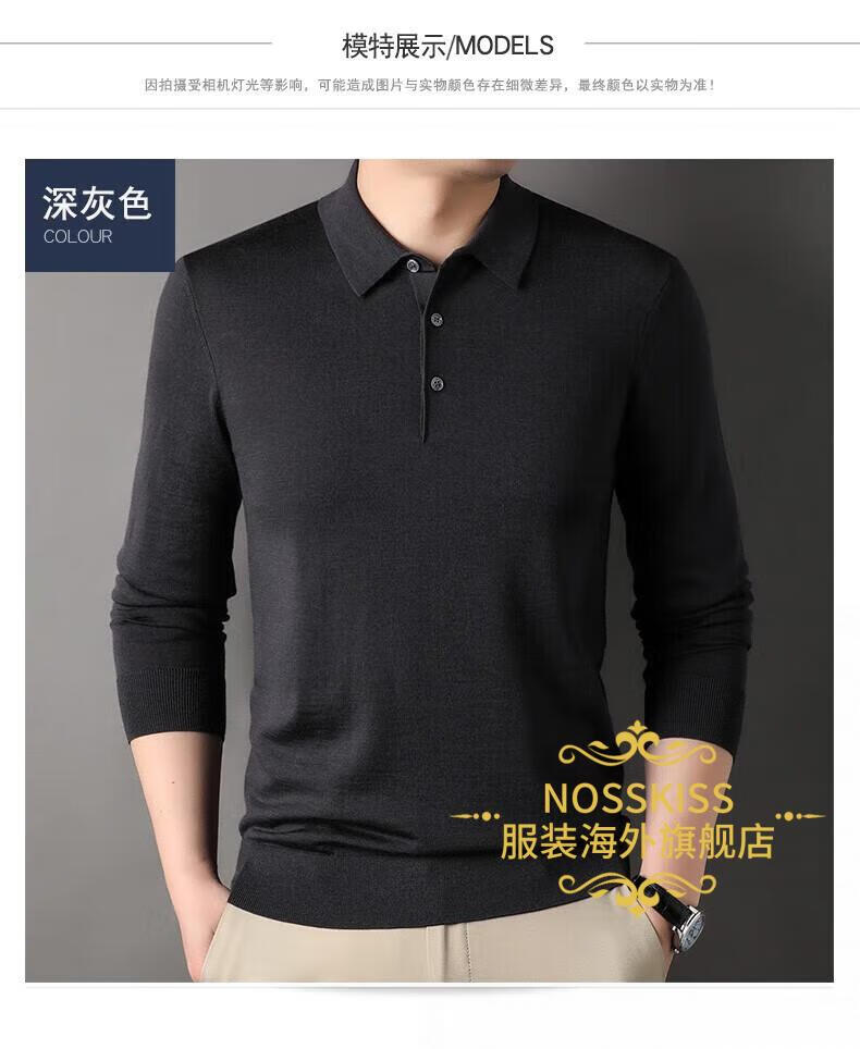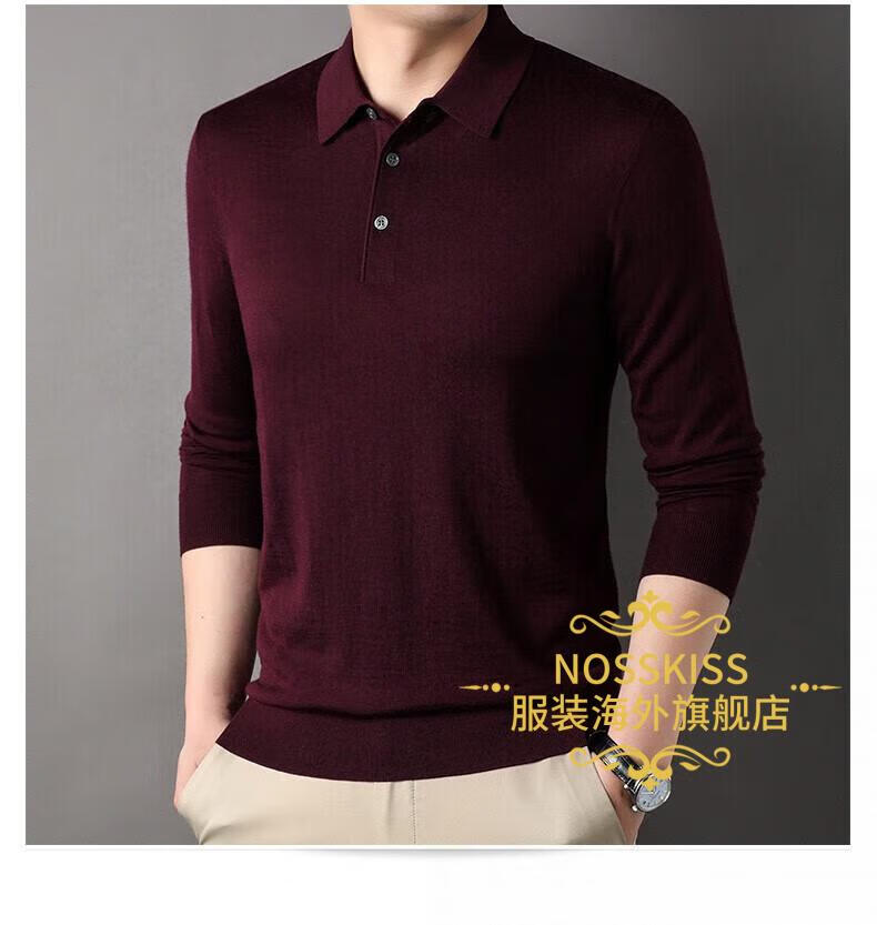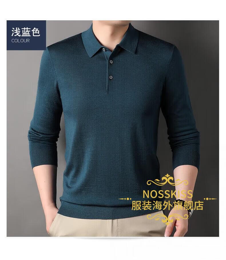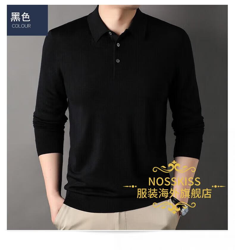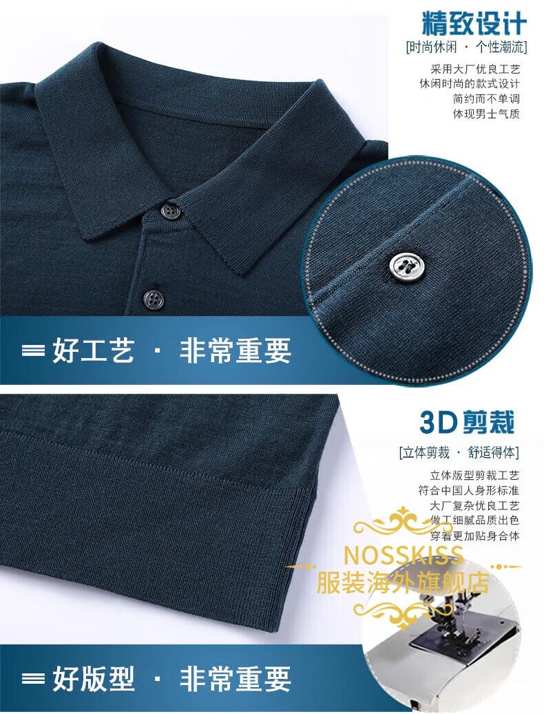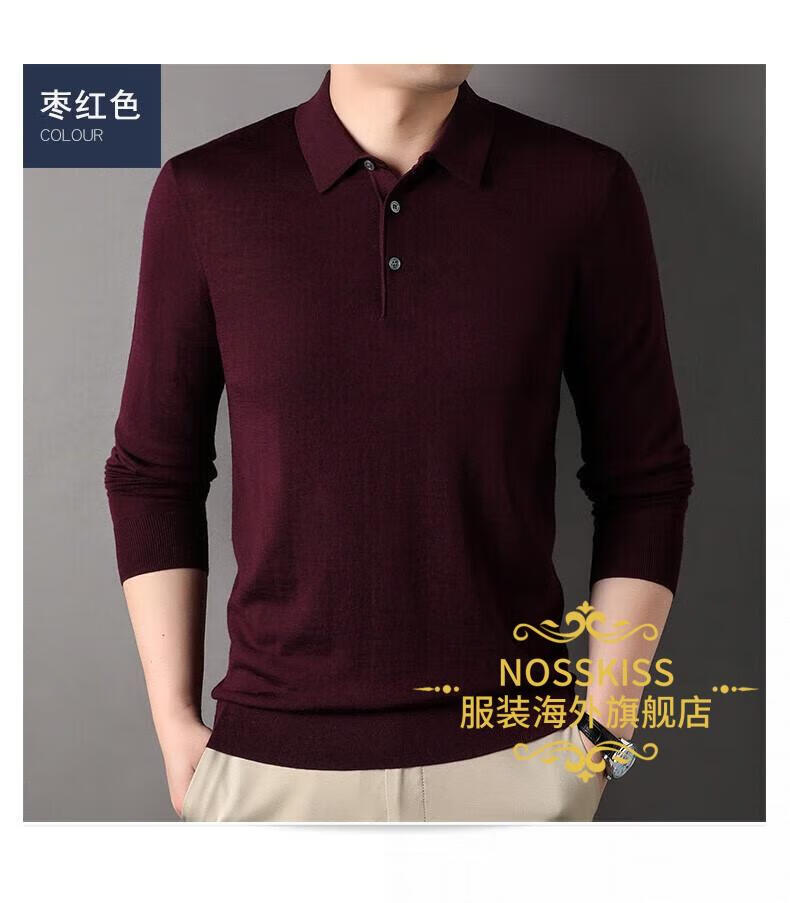 NOSSKISS luxury high-end brand wool sweater men's pure wool sweater men's spring and autumn thin knitted business polo bottoming shirt navy blue gift box 3XL 190 suitable for 180-200Jin Jin equals 0.5 kg