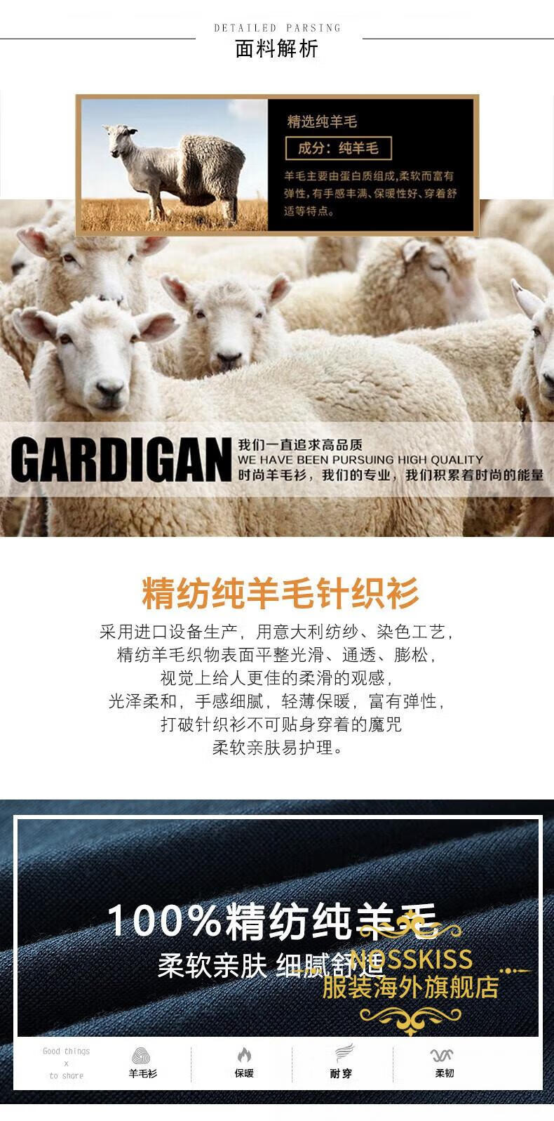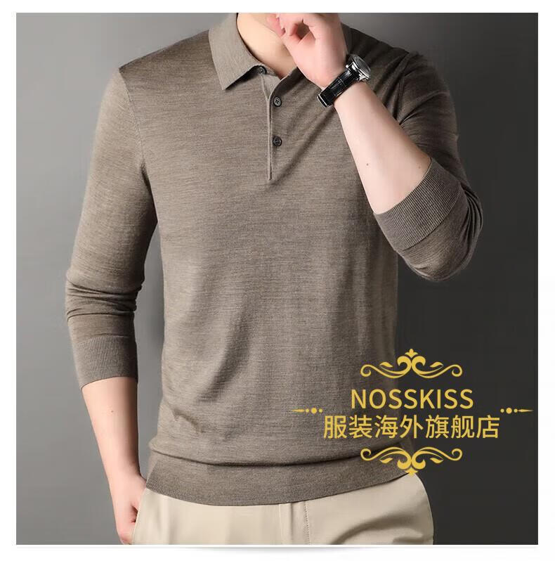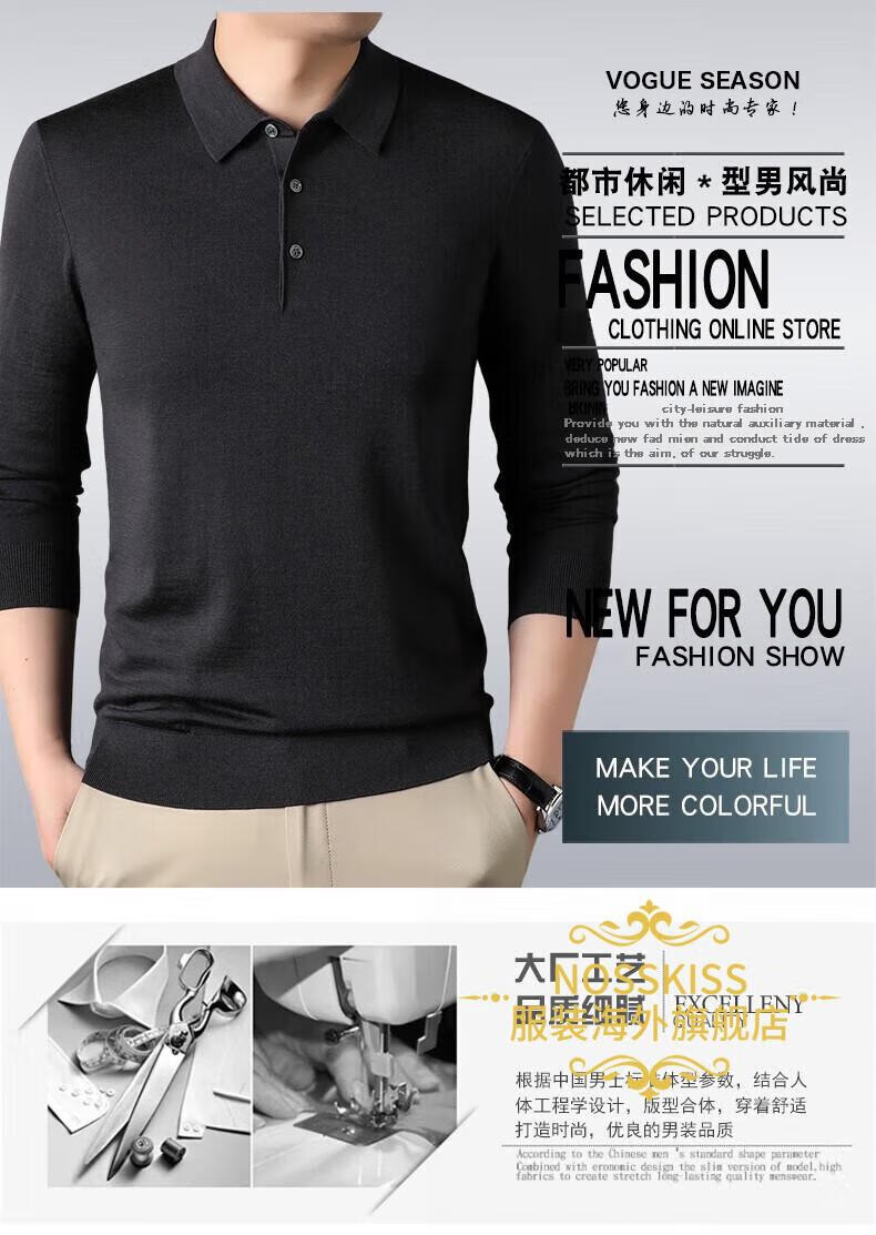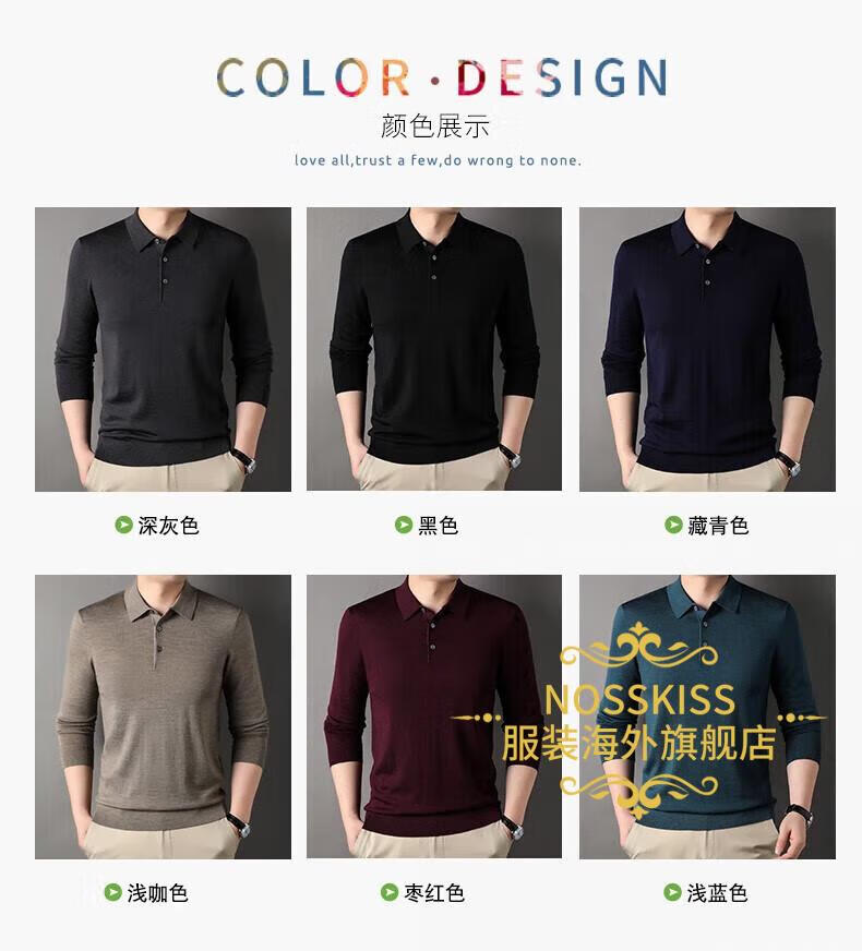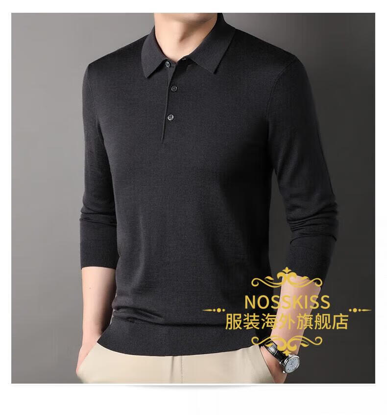 NOSSKISS luxury high-end brand wool sweater men's pure wool sweater men's spring and autumn thin knitted business polo bottoming shirt navy blue gift box 3XL 190 suitable for 180-200Jin Jin equals 0.5 kg