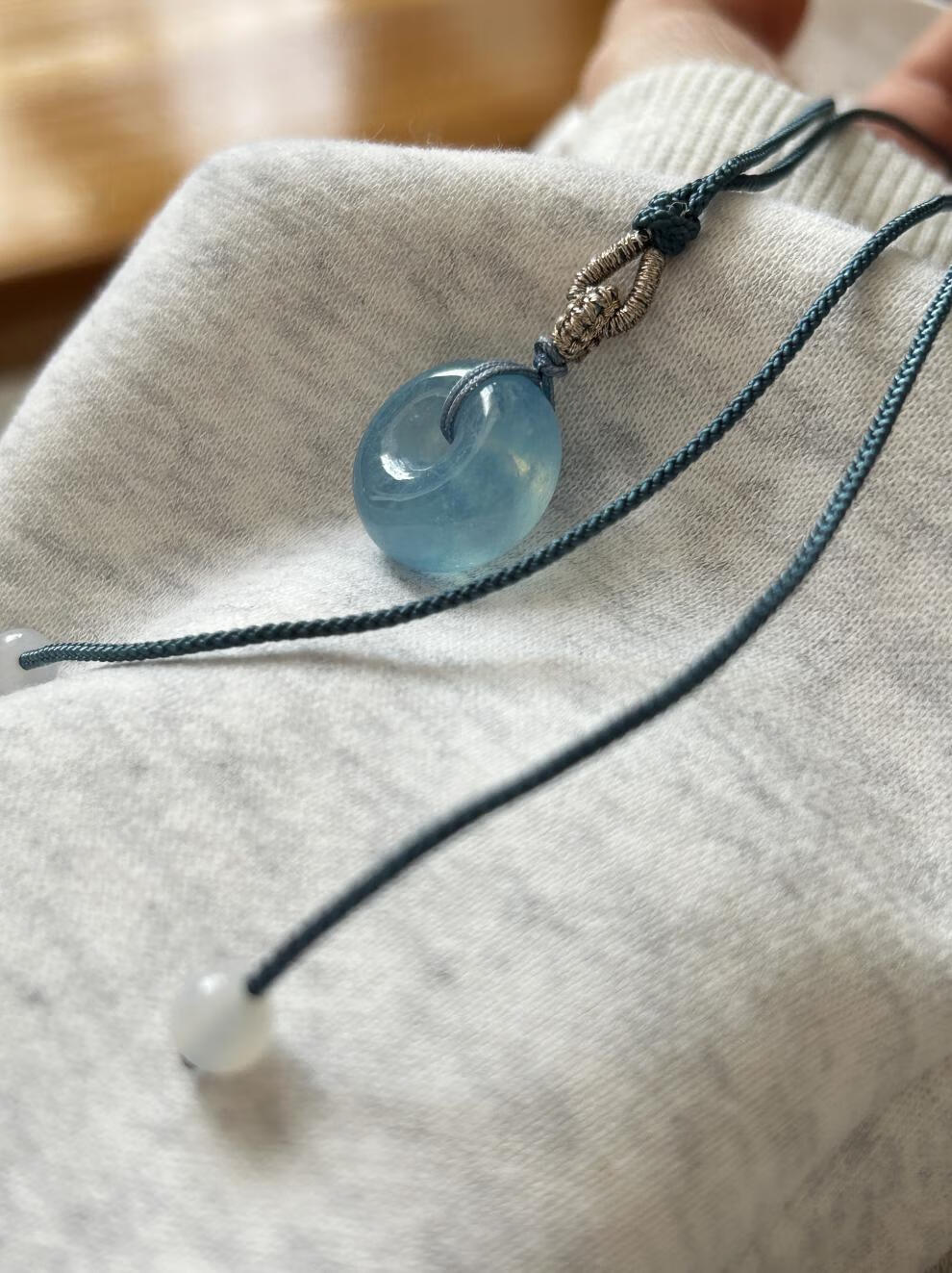 Xiyinfu natural crystal aquamarine pendant safe buckle temperament icy moist DIY bracelet with beads (finished product) hand-woven rope pendant card 20-23 bread