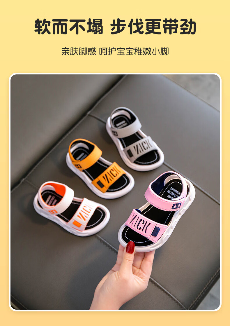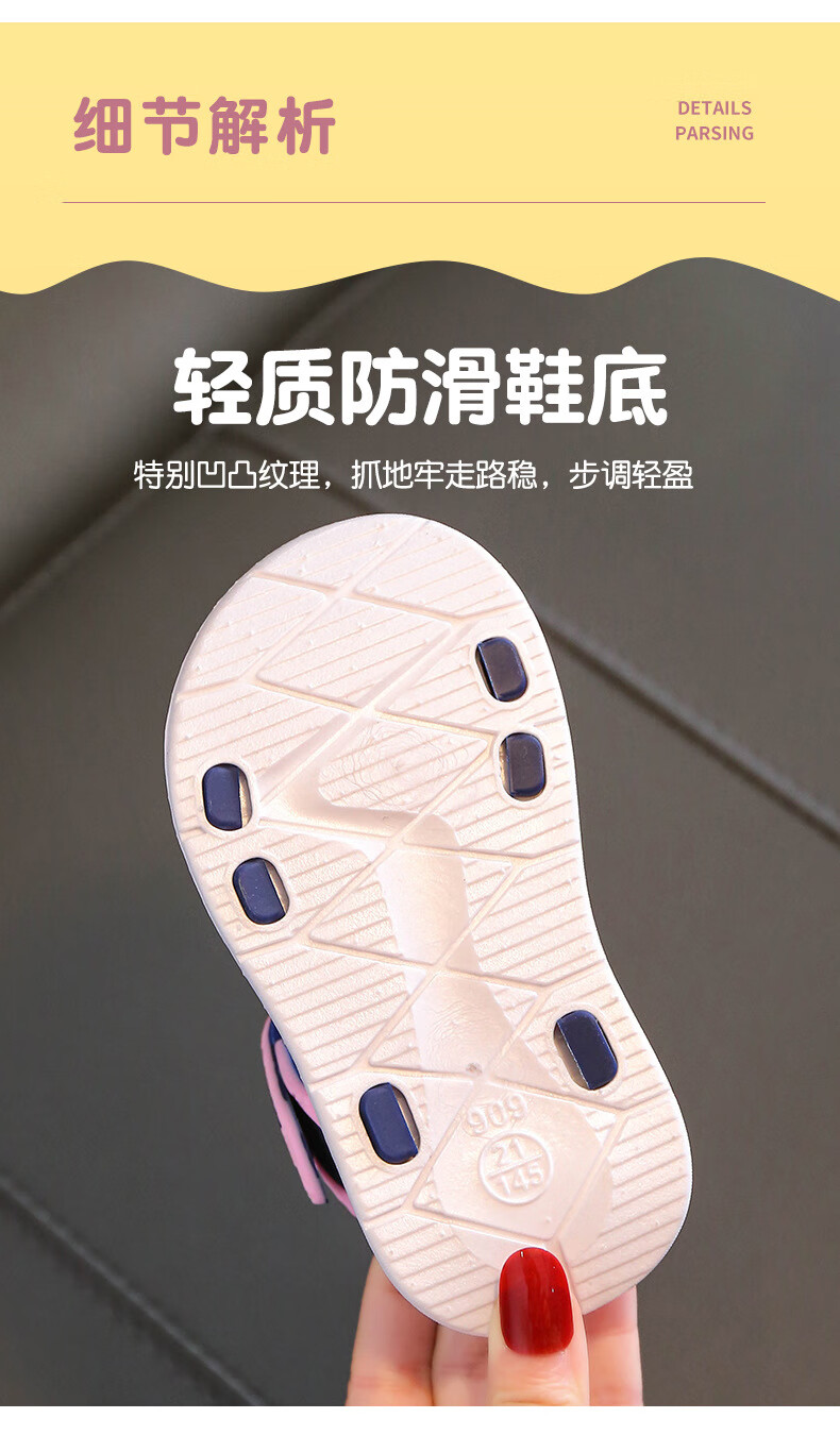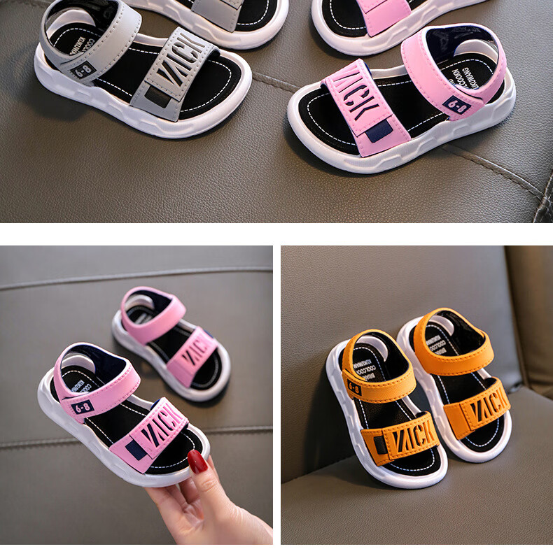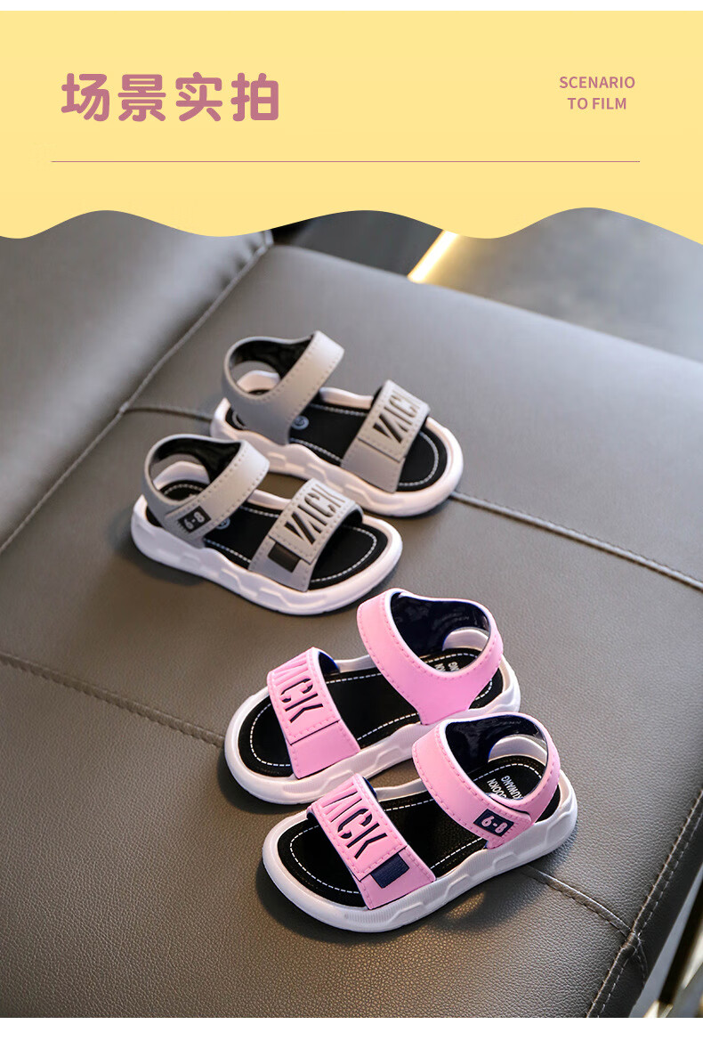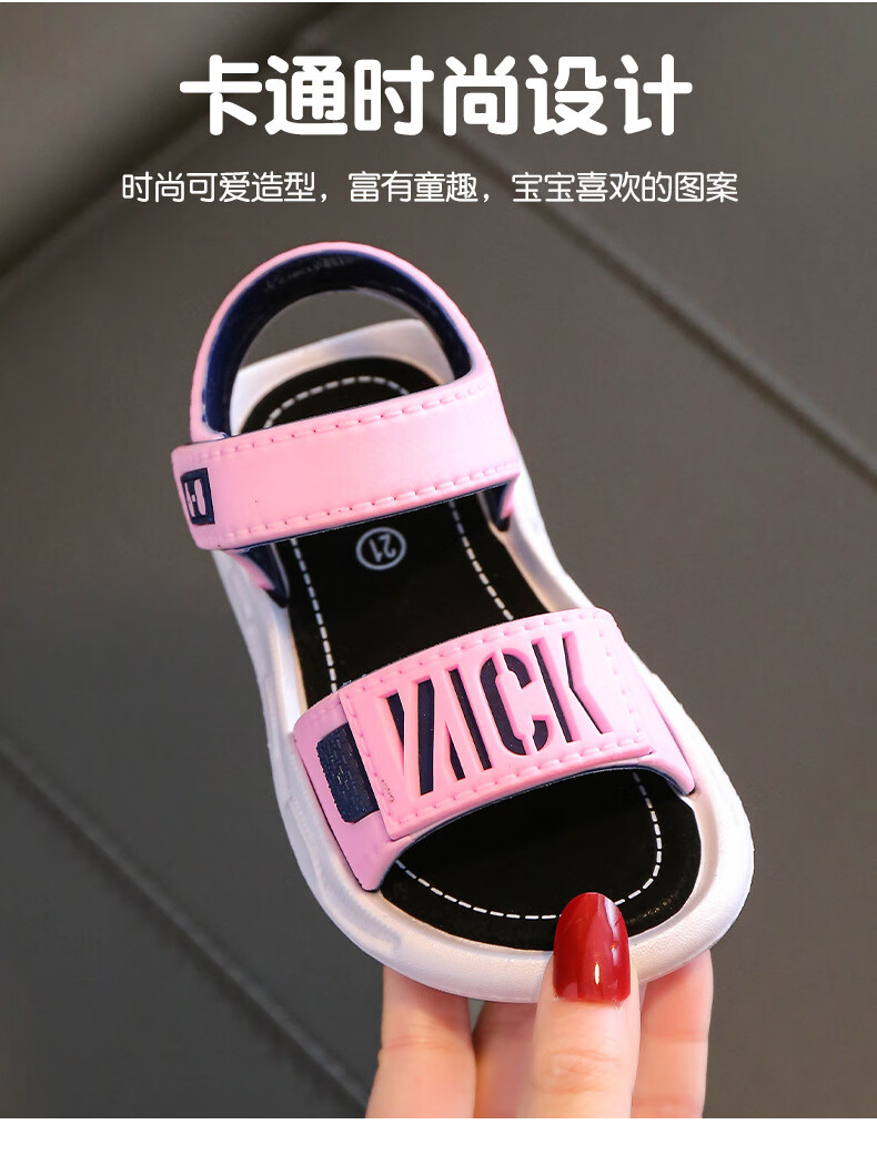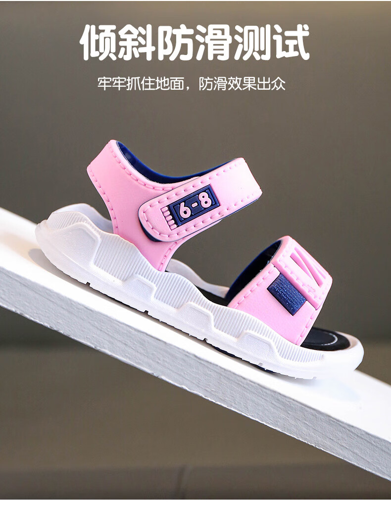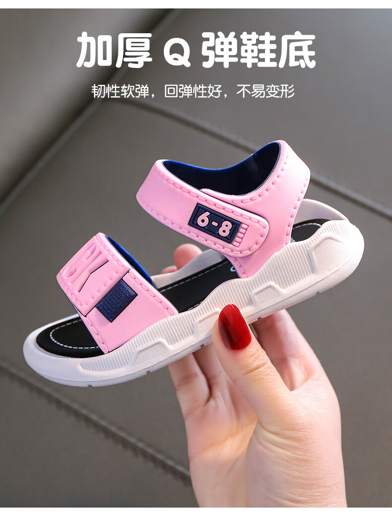 Miao Fei Girls Sandals 2024 New Summer Middle and Older Girls Soft Sole Anti-Slip Boys Baby Shoes Children's Beach Sandals 909+8K Pink 24