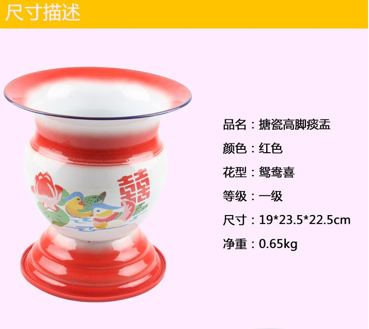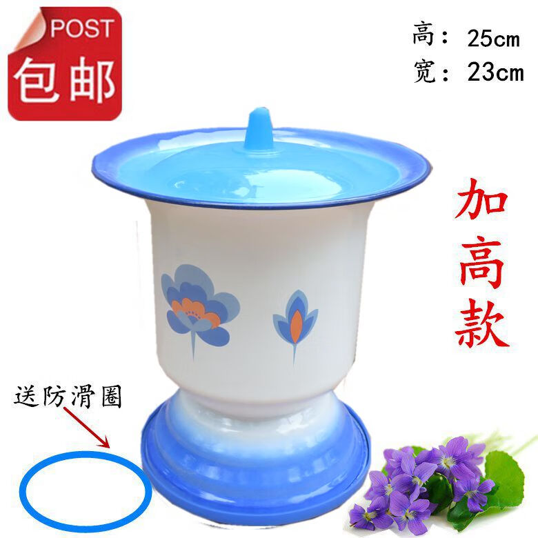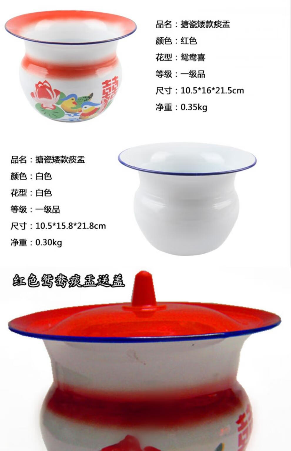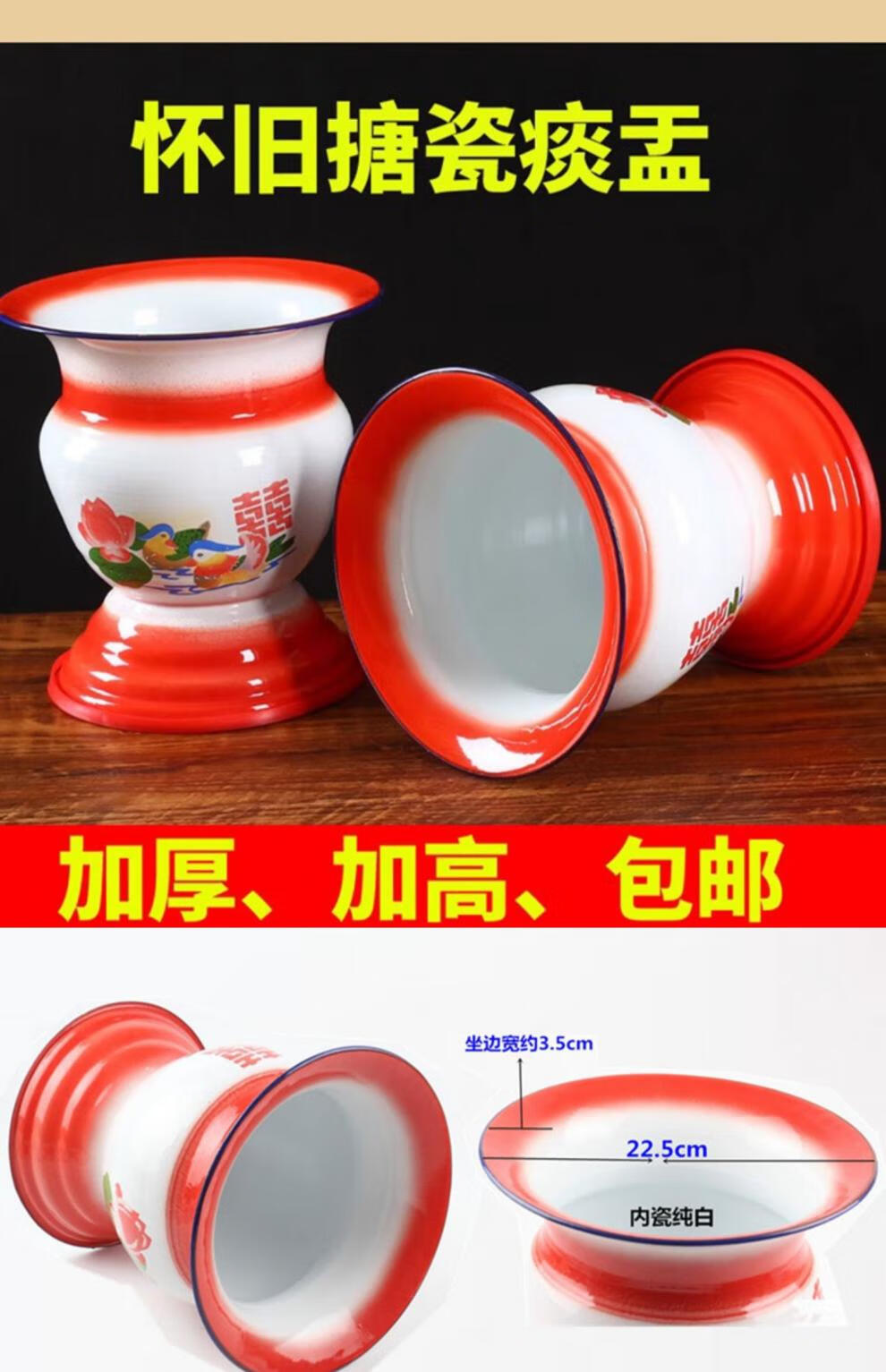 He Jiagong's anti-slip old-fashioned enamel high-footed spittoon for the elderly, pregnant women, children's potty, children's bucket, 24cm thickened red spittoon with cover (Tang Porcelain)