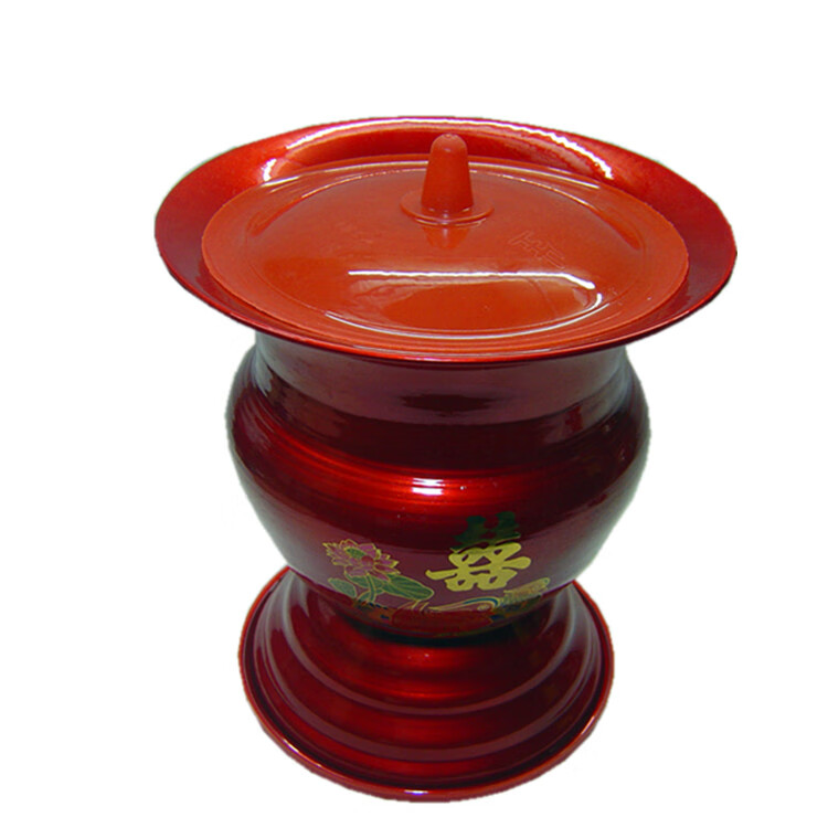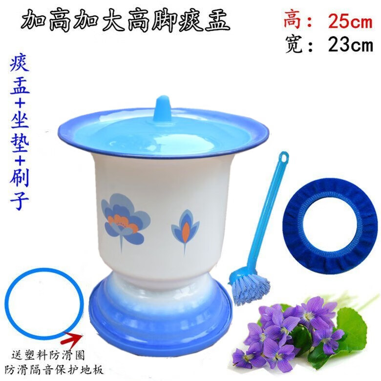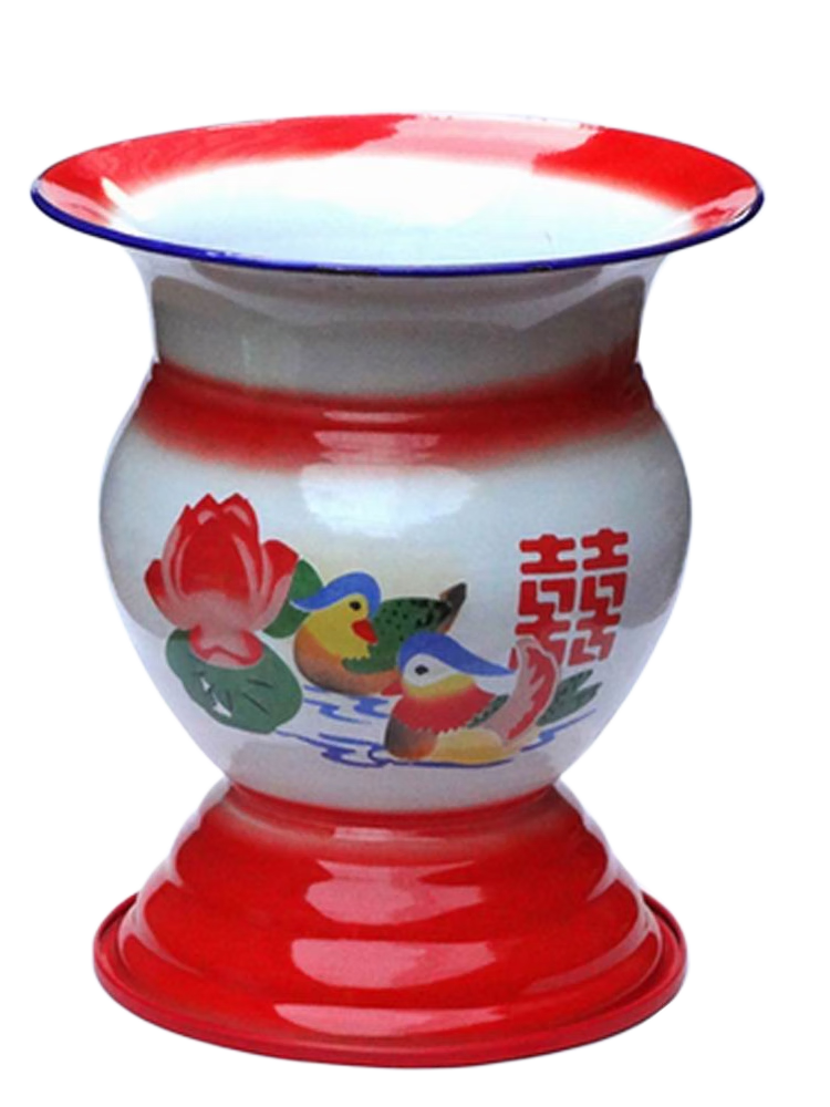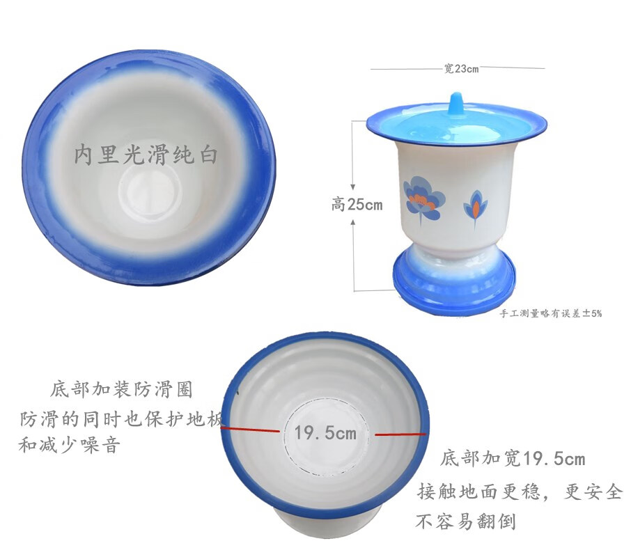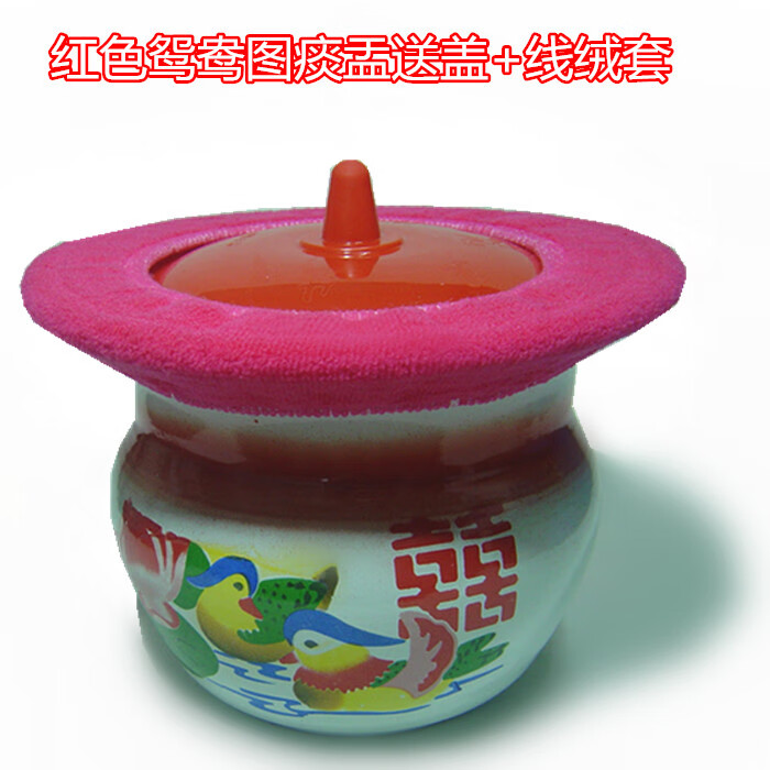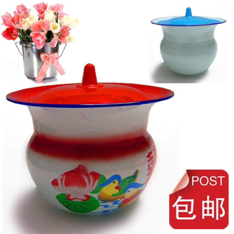 He Jiagong's anti-slip old-fashioned enamel high-footed spittoon for the elderly, pregnant women, children's potty, children's bucket, 24cm thickened red spittoon with cover (Tang Porcelain)