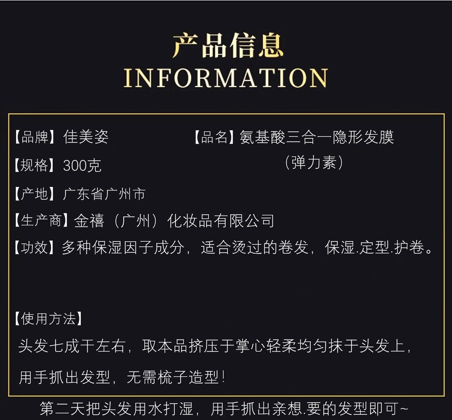 TI official direct sales Jiameizi plant source amino acid three-in-one invisible hair mask elastin moisturizing and styling one bottle of plant source elastin