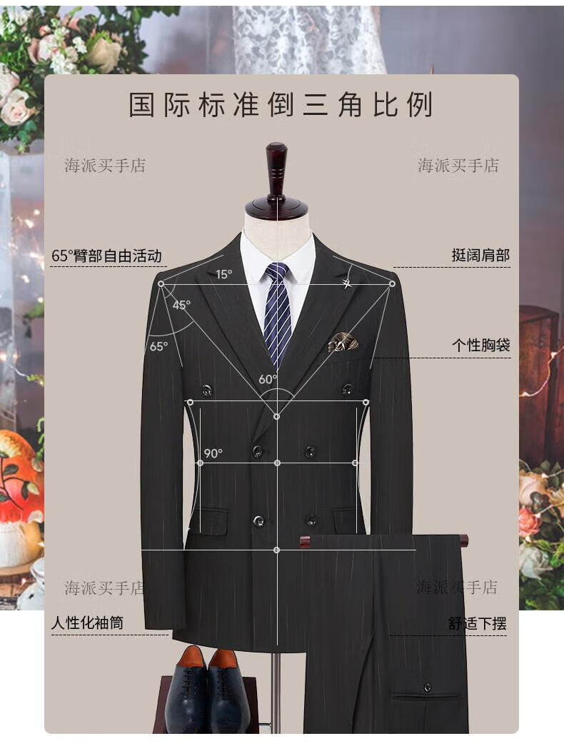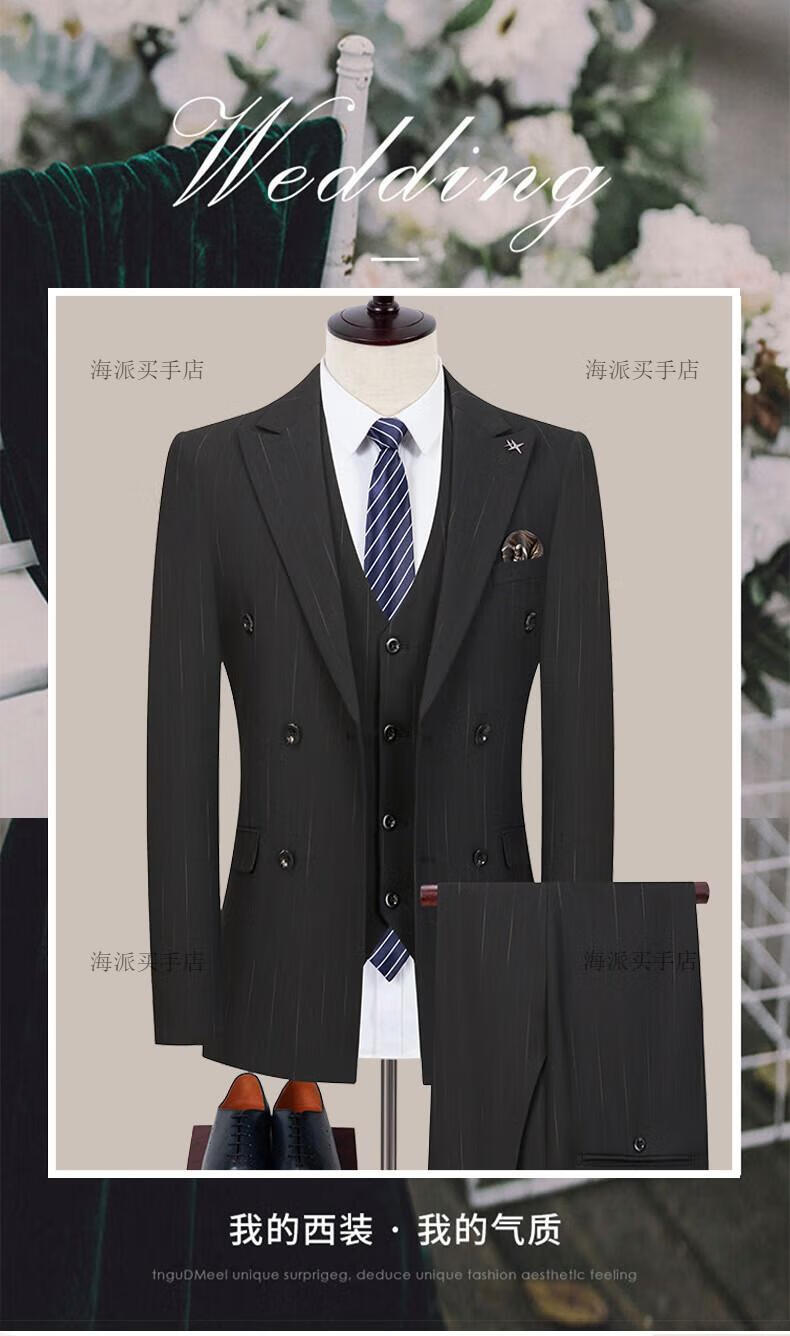 SUSTYLE high-end luxury brand high-end men's suit 2025 new professional versatile striped suit three-piece black three-piece suit gift box M recommended 115-130 Jin Jin equals 0.5 kg