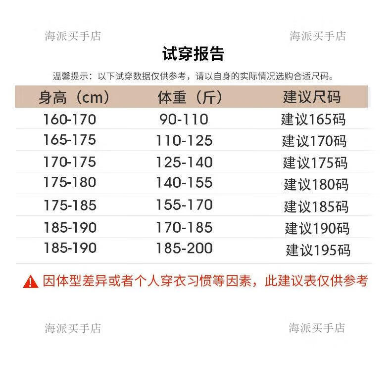 China (cm) 165 / 88-90 170 / 96-98 175 / 108-110 180 / 118-122 185 / 126-130