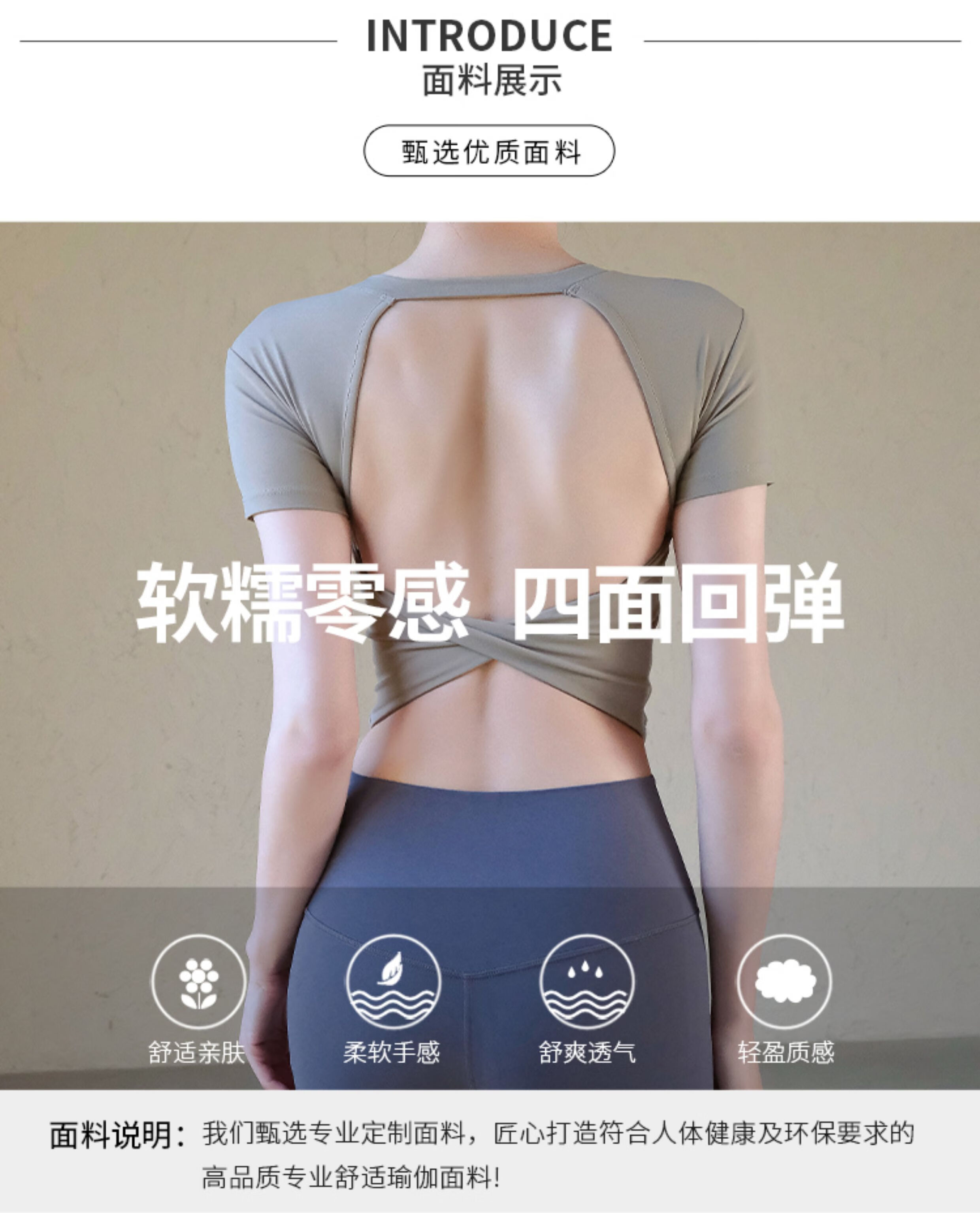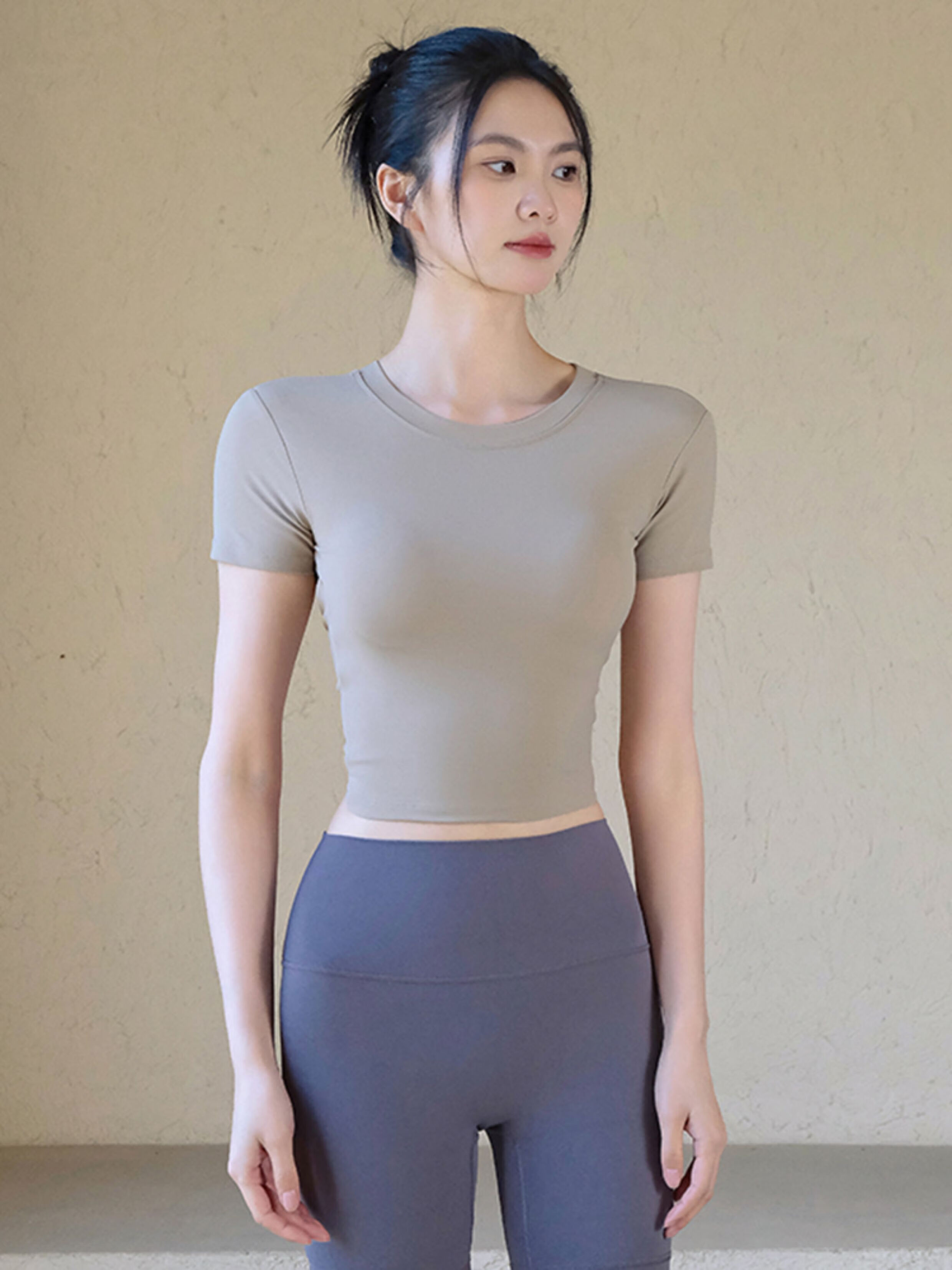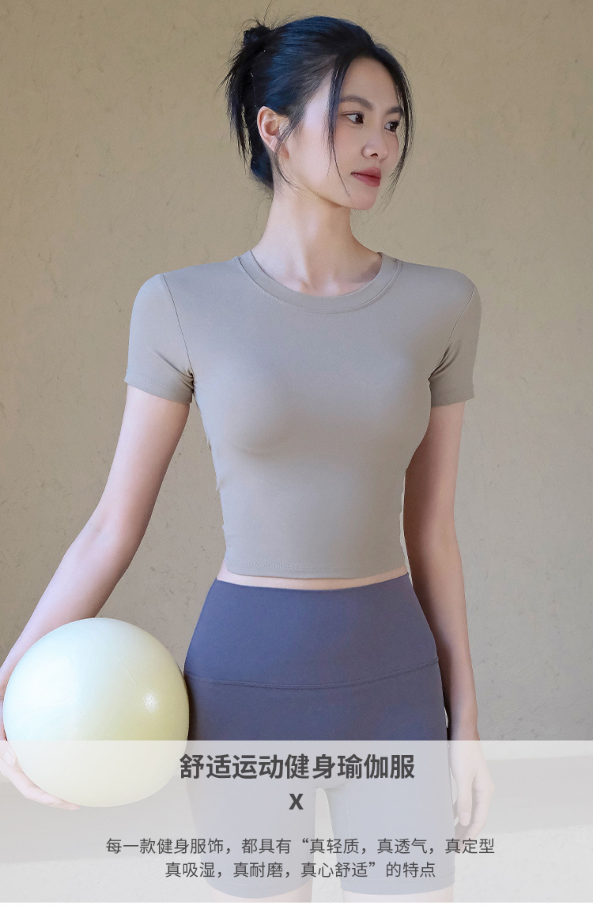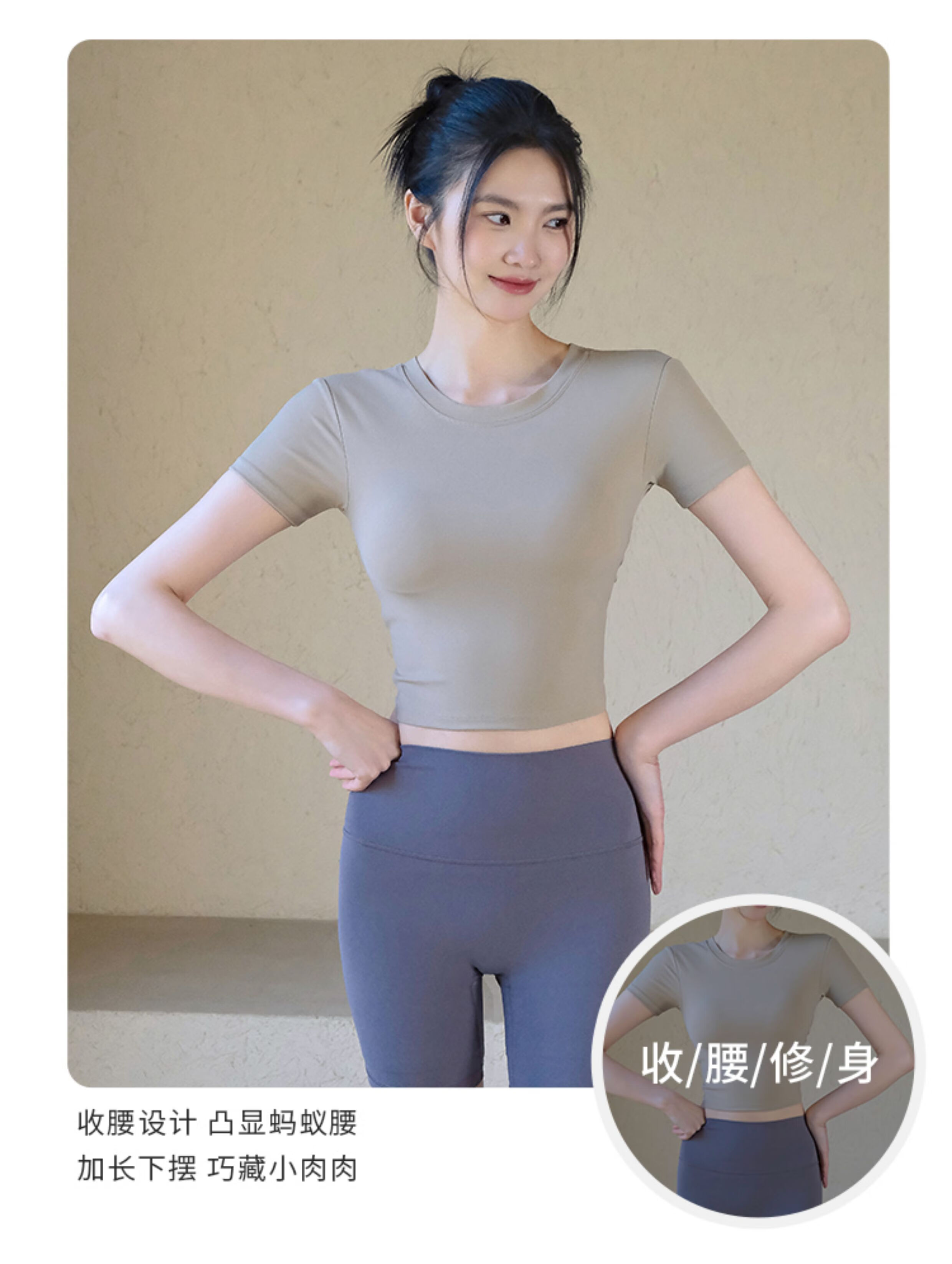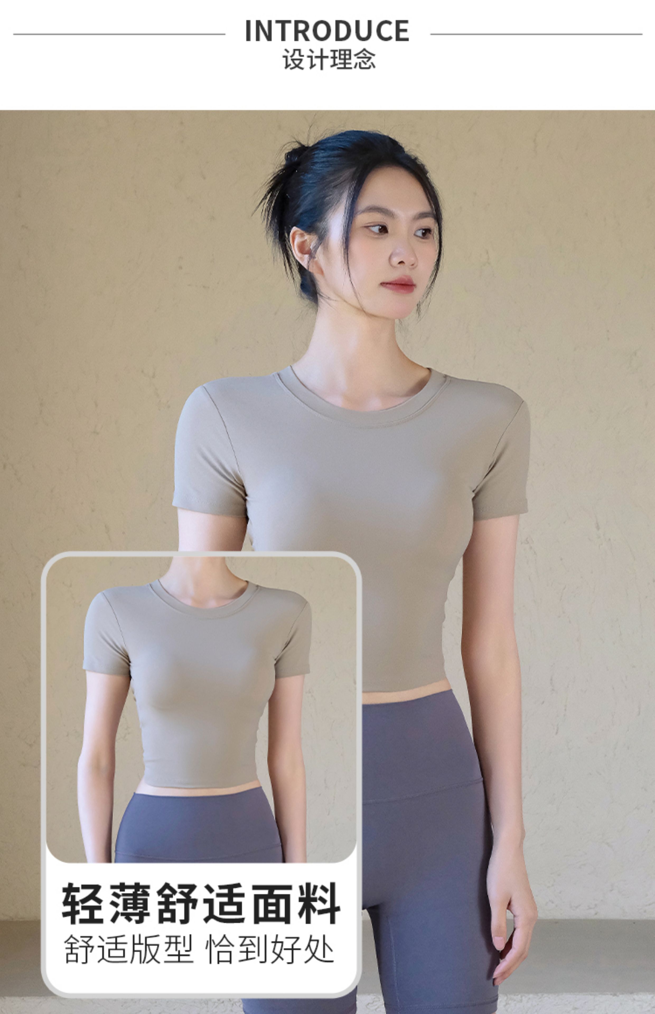 LULUUVTTOH spring and summer yoga clothes with chest pads, feminine back sports tops, short-sleeved T-shirts, Pilates training fitness clothes, khaki fixed cup L (recommended 110-130 Jin Jin equals 0.5 kg)