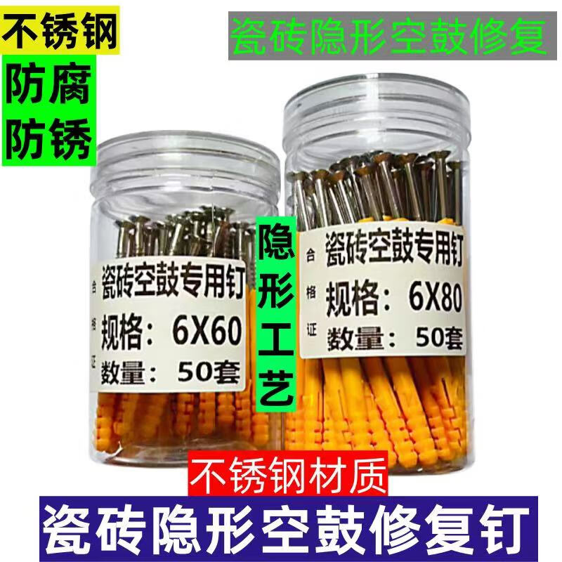 Oeny invisible installation of stainless steel tile hollow drum special nail tile hollow drum anti-falling positioning tile nail stainless steel invisible ceramic tile hollow drum repair nail (6X60)