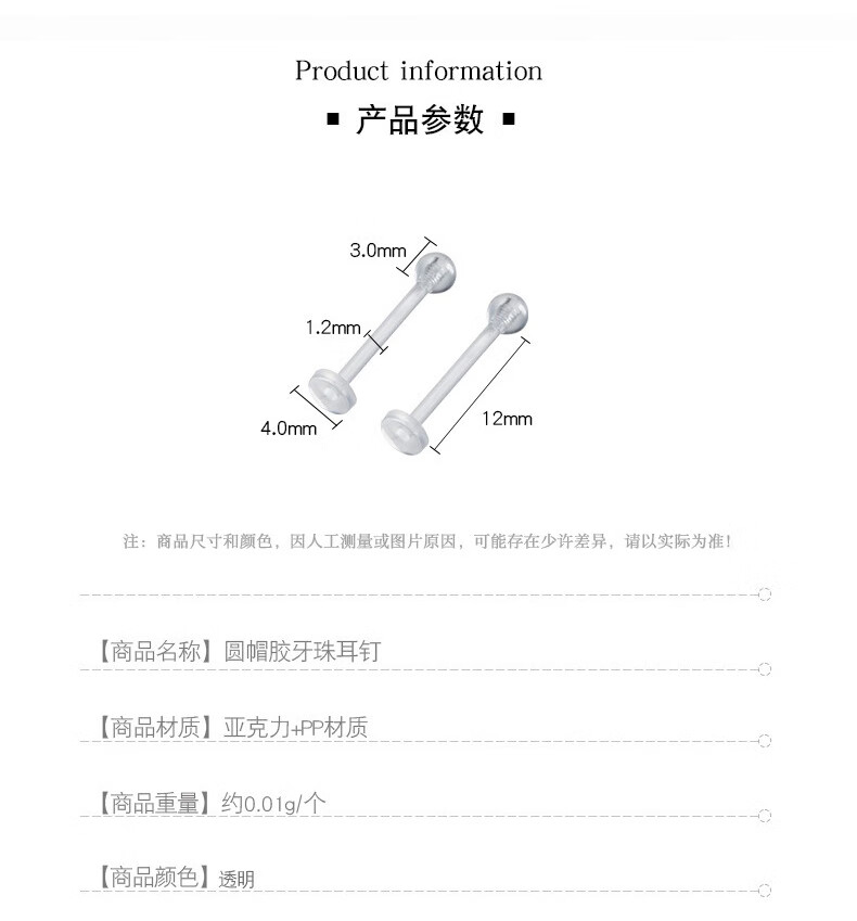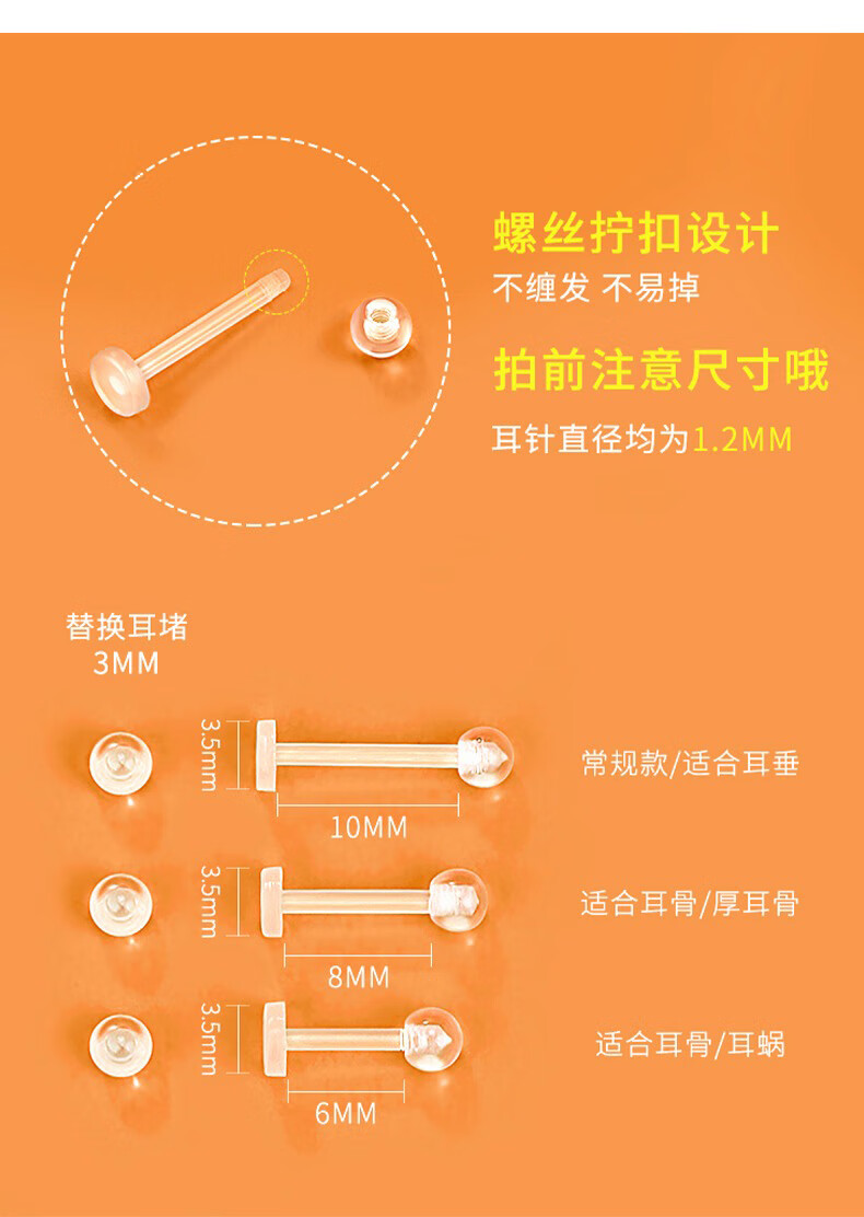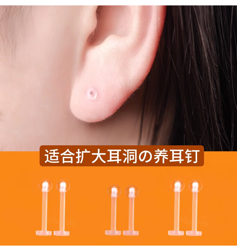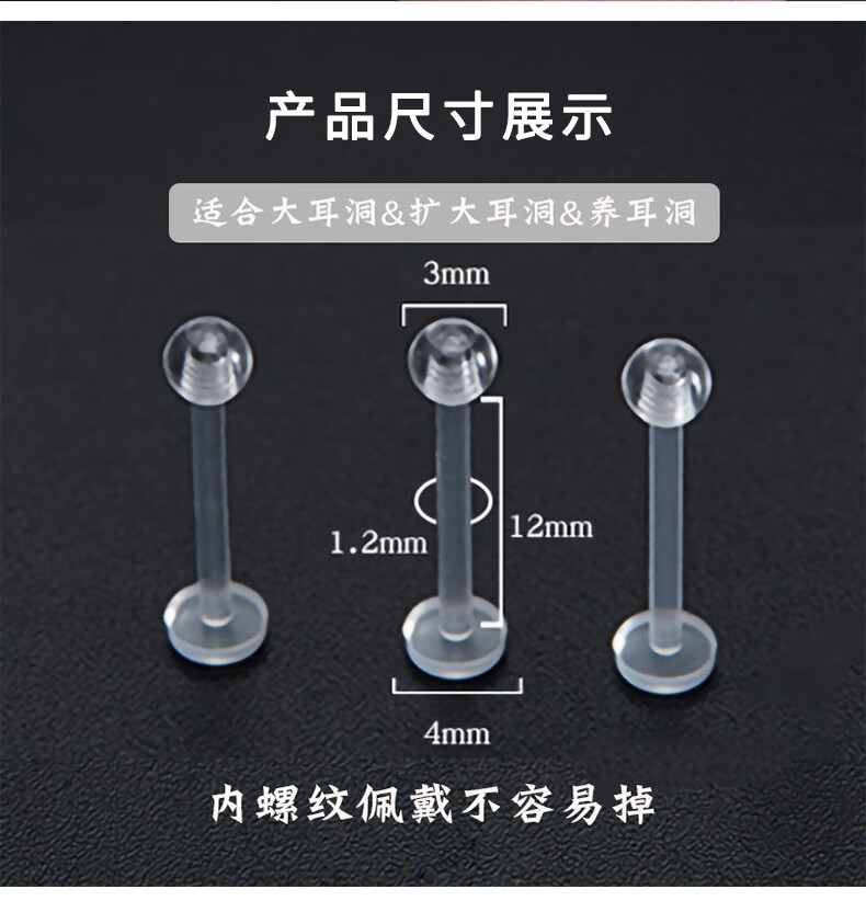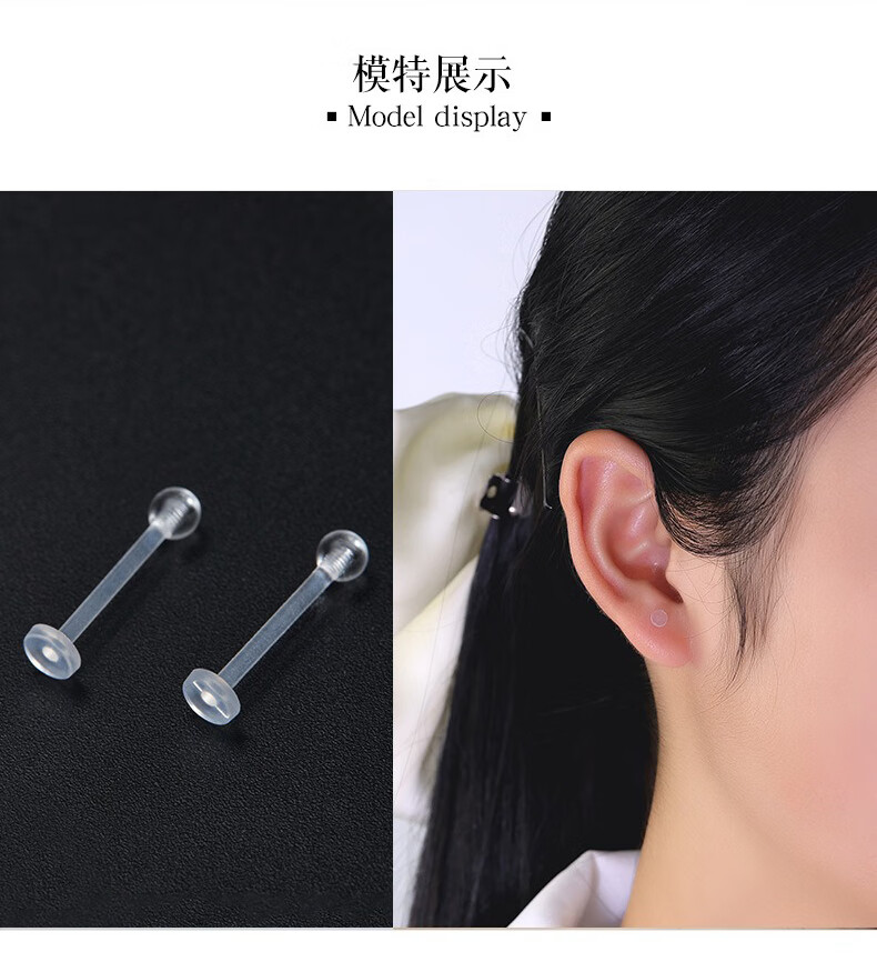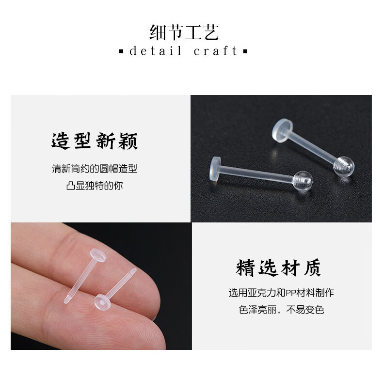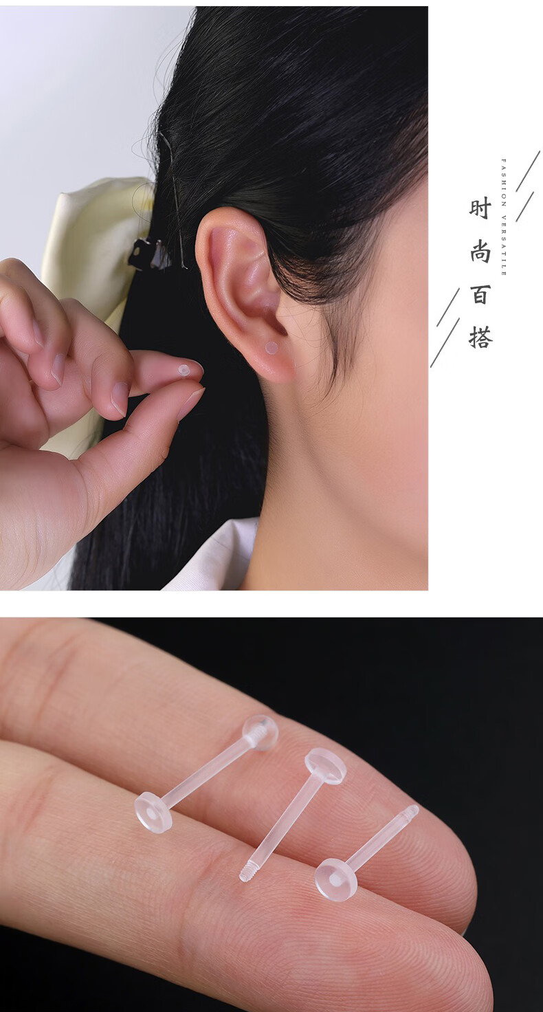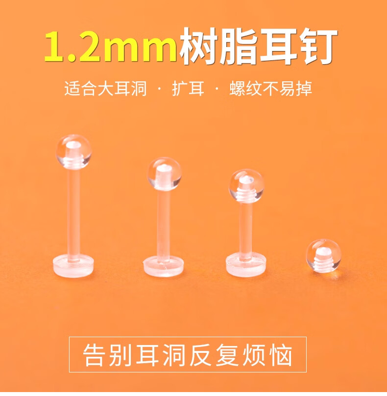 Fanny Rabbit diameter 1.2MM thick resin earrings for ear piercing invisible transparent anti-clogging needles for ear expansion without removing student ear bone nails 2 pairs of 8mm resin earrings (suitable for ear bones)