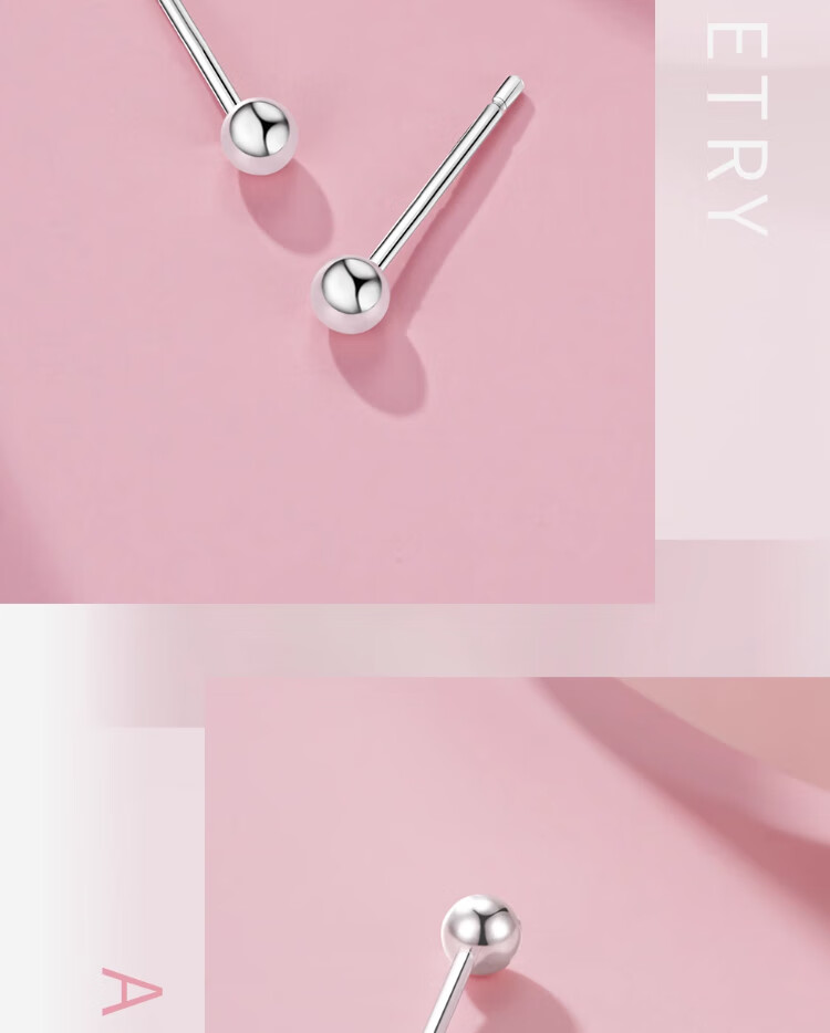 QMXD S999 sterling silver earrings for women, no need to pick when sleeping, ear piercing, anti-blocking, white ear sticks, not easy to cause allergies, simple earrings, pure silver 999 earrings, 3mm 1 pair