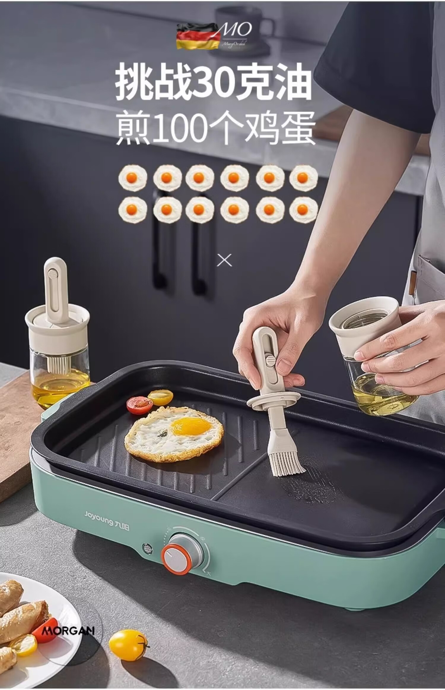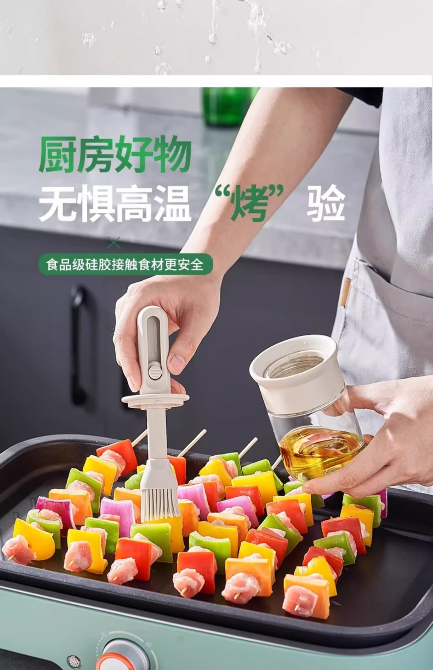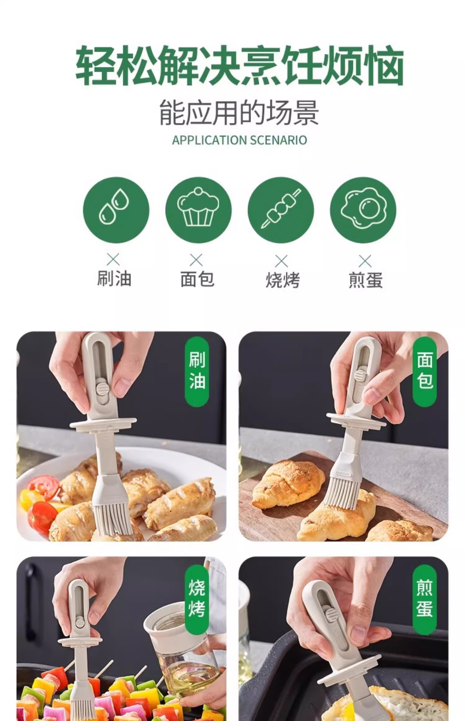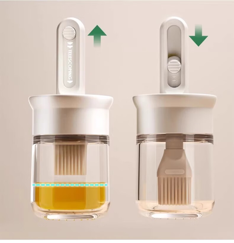 Oil brush and oil bottle integrated glass silicone brush food grade barbecue brush pancake baking household high temperature resistant brush oil pot telescopic oil brush丨high temperature resistant white 150ml