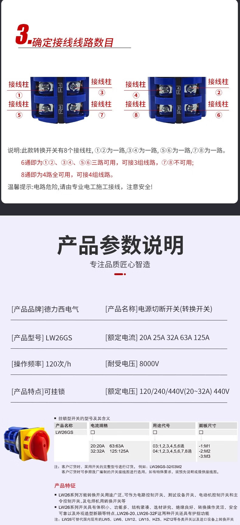 Delixi Electric Delixi universal transfer switch LW26GS-20/04M2 power cut-off switch 32A transfer switch 20A LW26GS-20/03M1