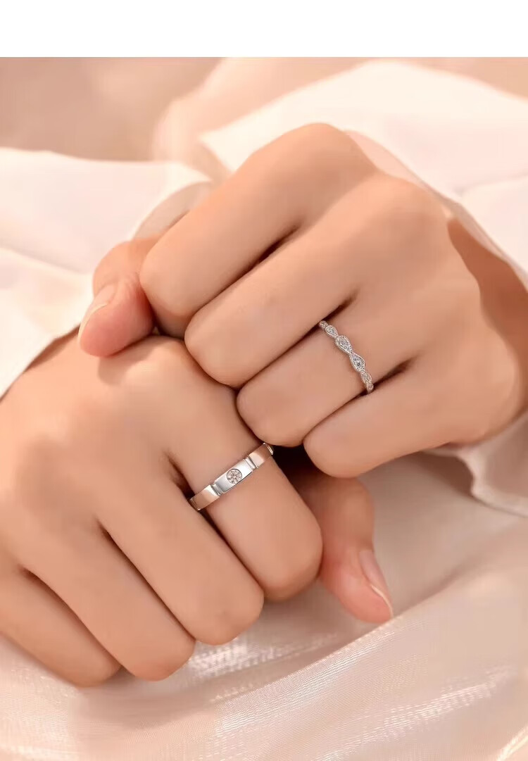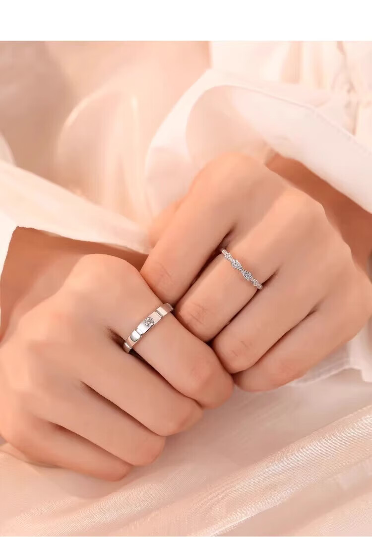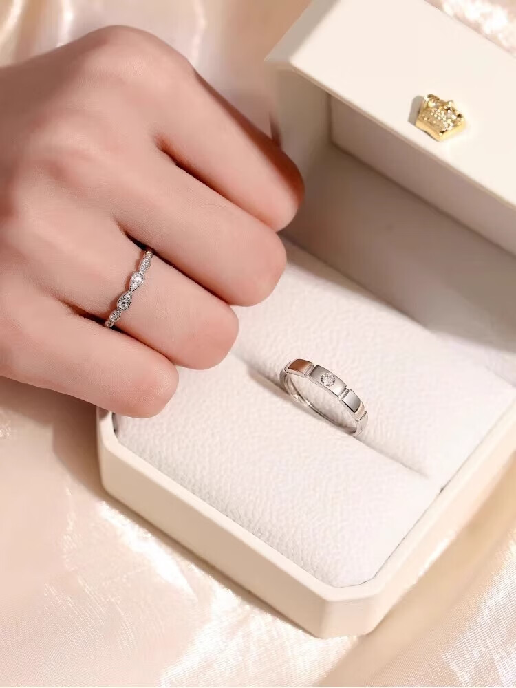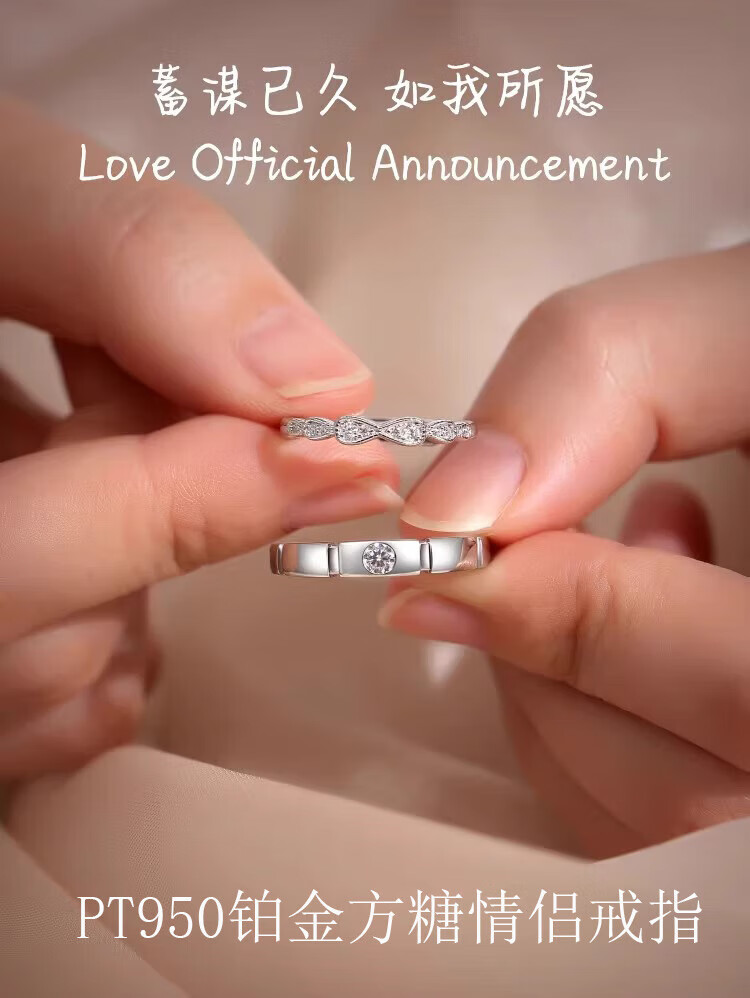 RHM Platinum Couple Ring PT950 Small Sugar Cube Moissanite Ring for Men and Women Birthday and Valentine's Day Gift for Girlfriend Platinum Cube Couple Ring Pair + Certificate + Gift Box