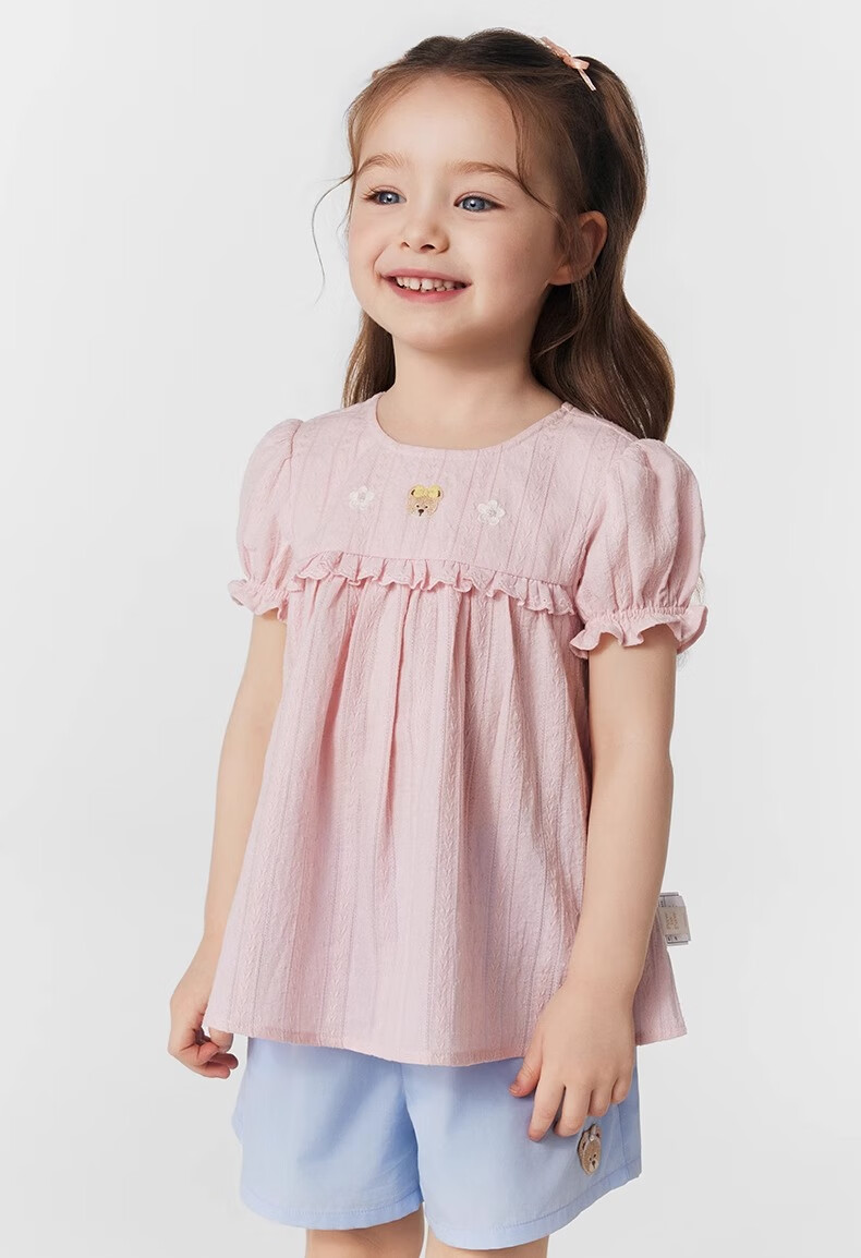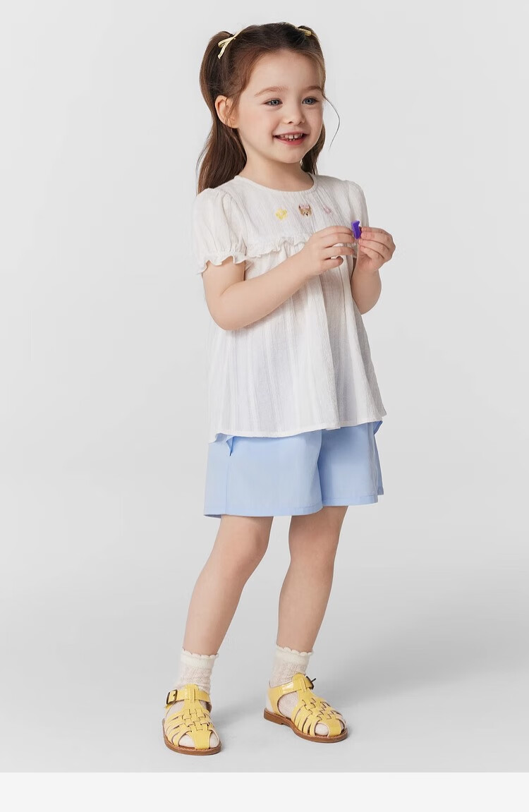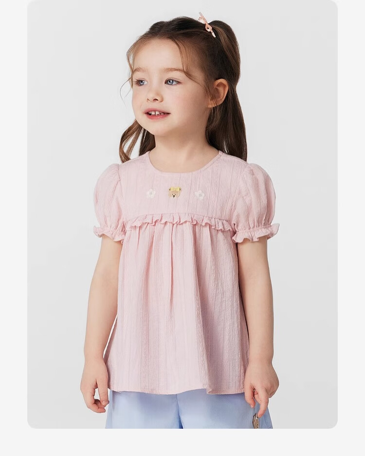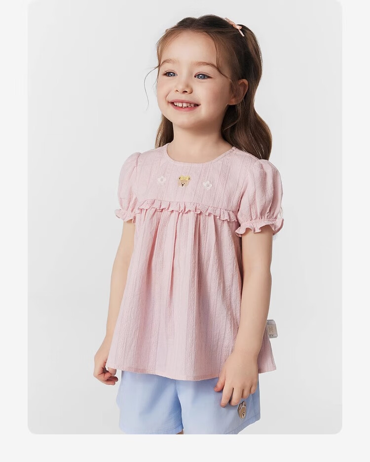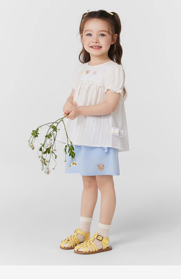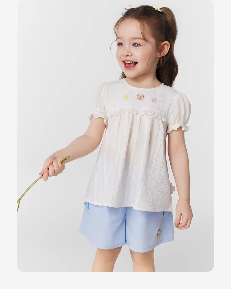 PawinPaw cartoon bear children's clothing 25 spring and summer new baby girl cute puff sleeve A-line shirt Ivory ivory/39 120