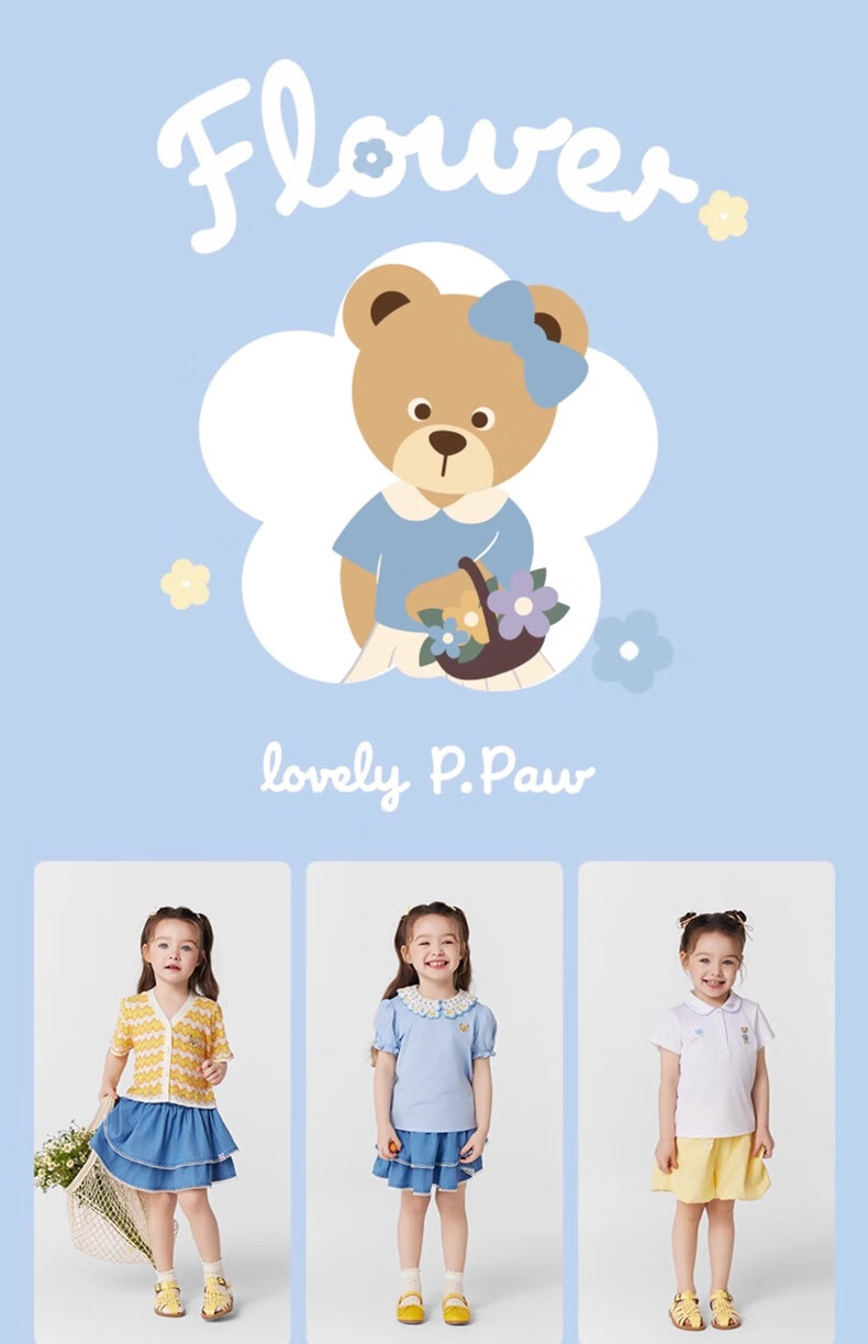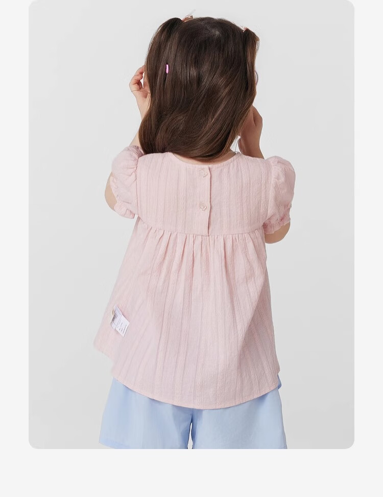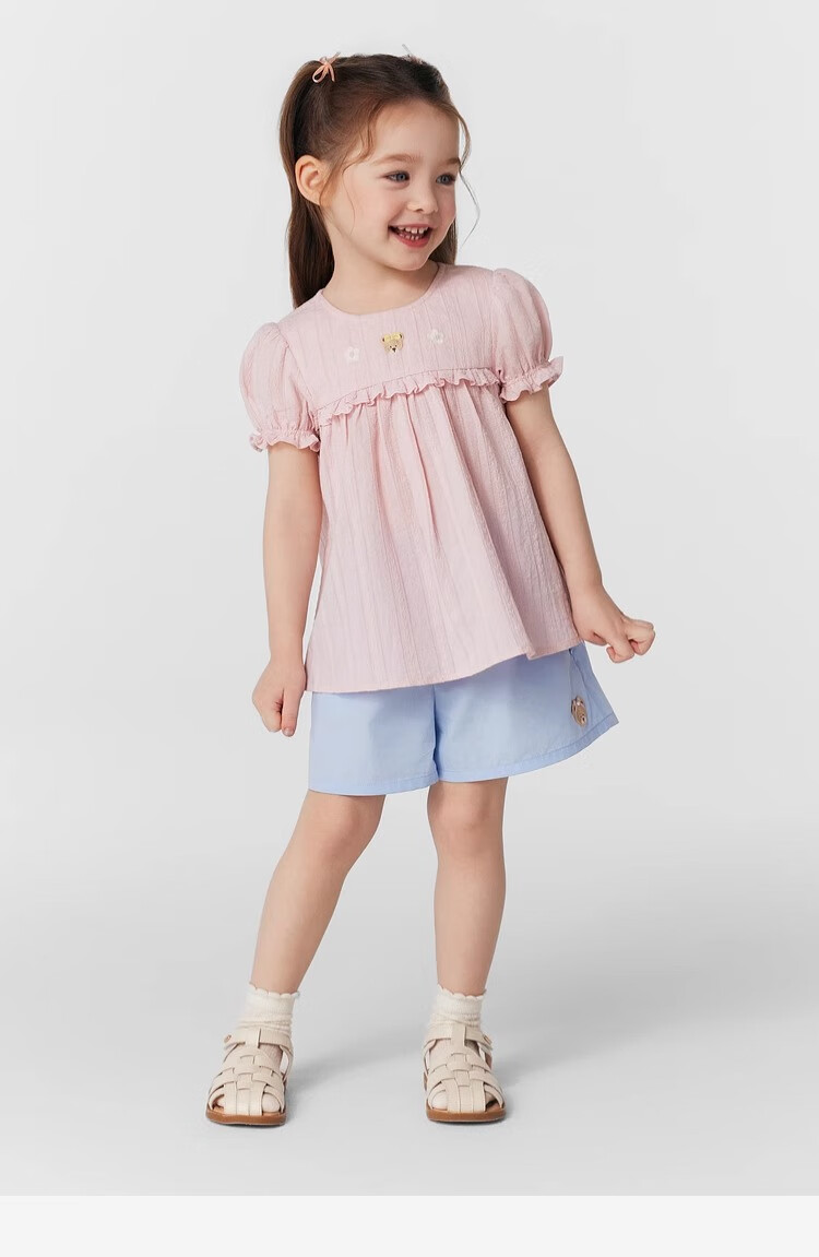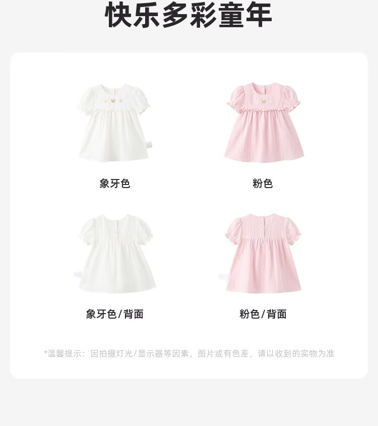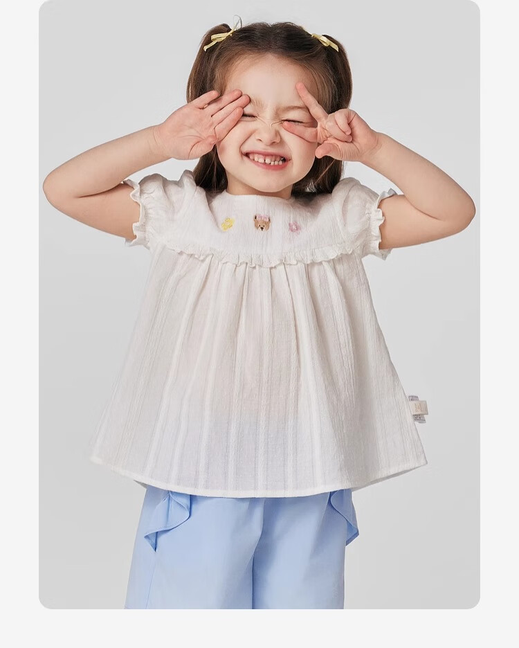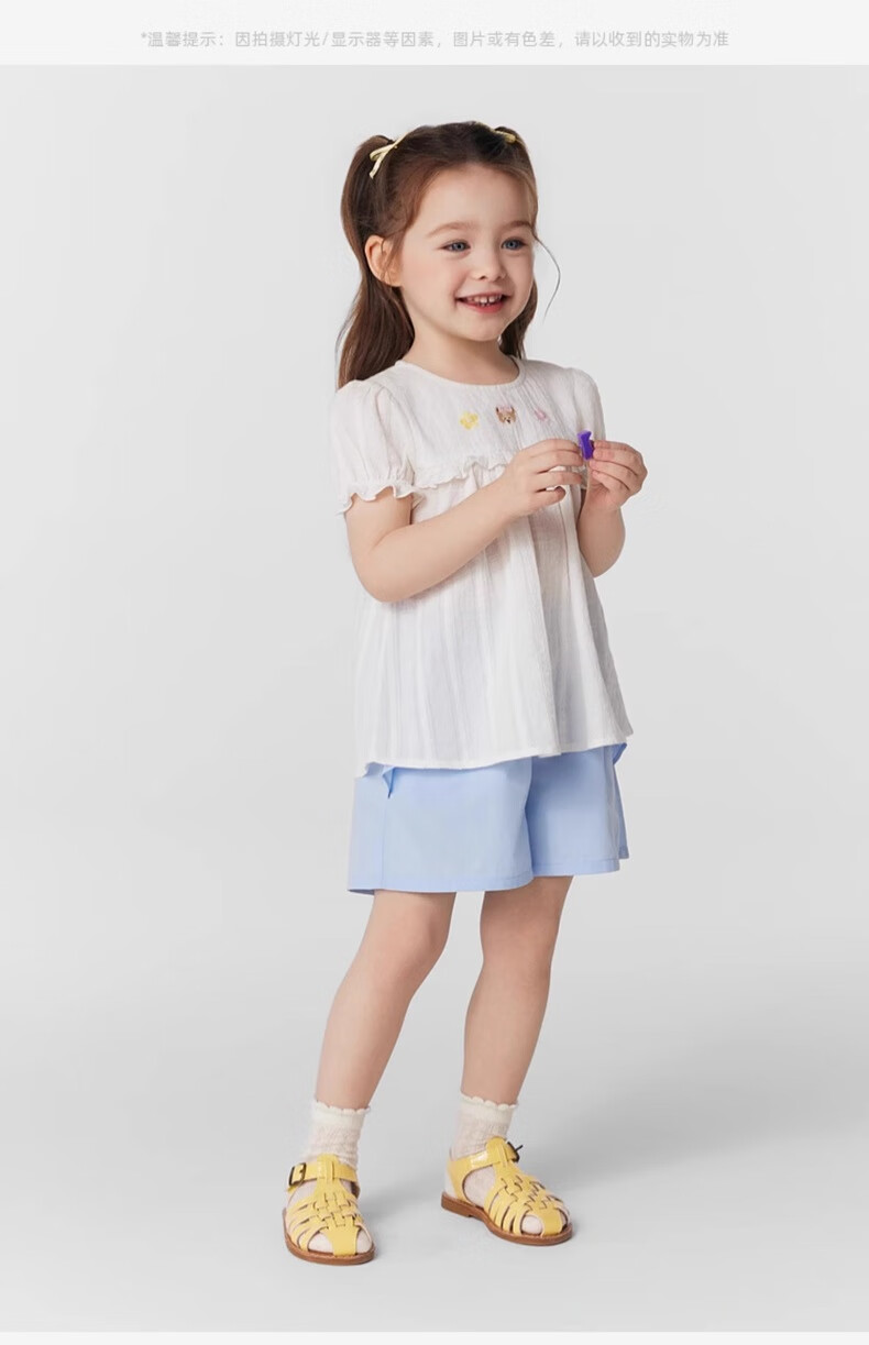 PawinPaw cartoon bear children's clothing 25 spring and summer new baby girl cute puff sleeve A-line shirt Ivory ivory/39 120