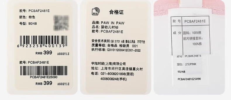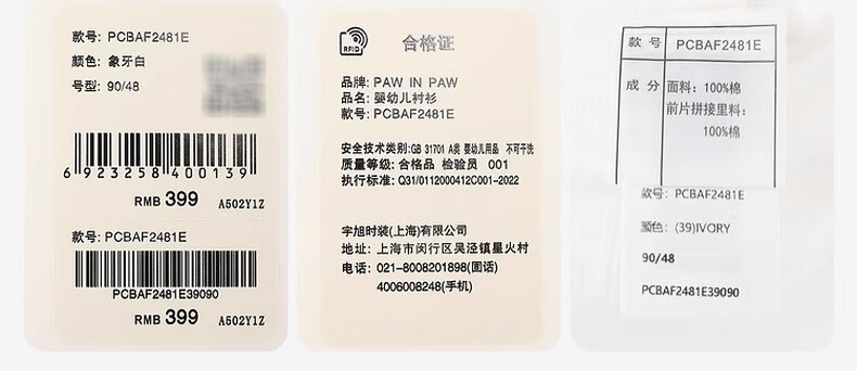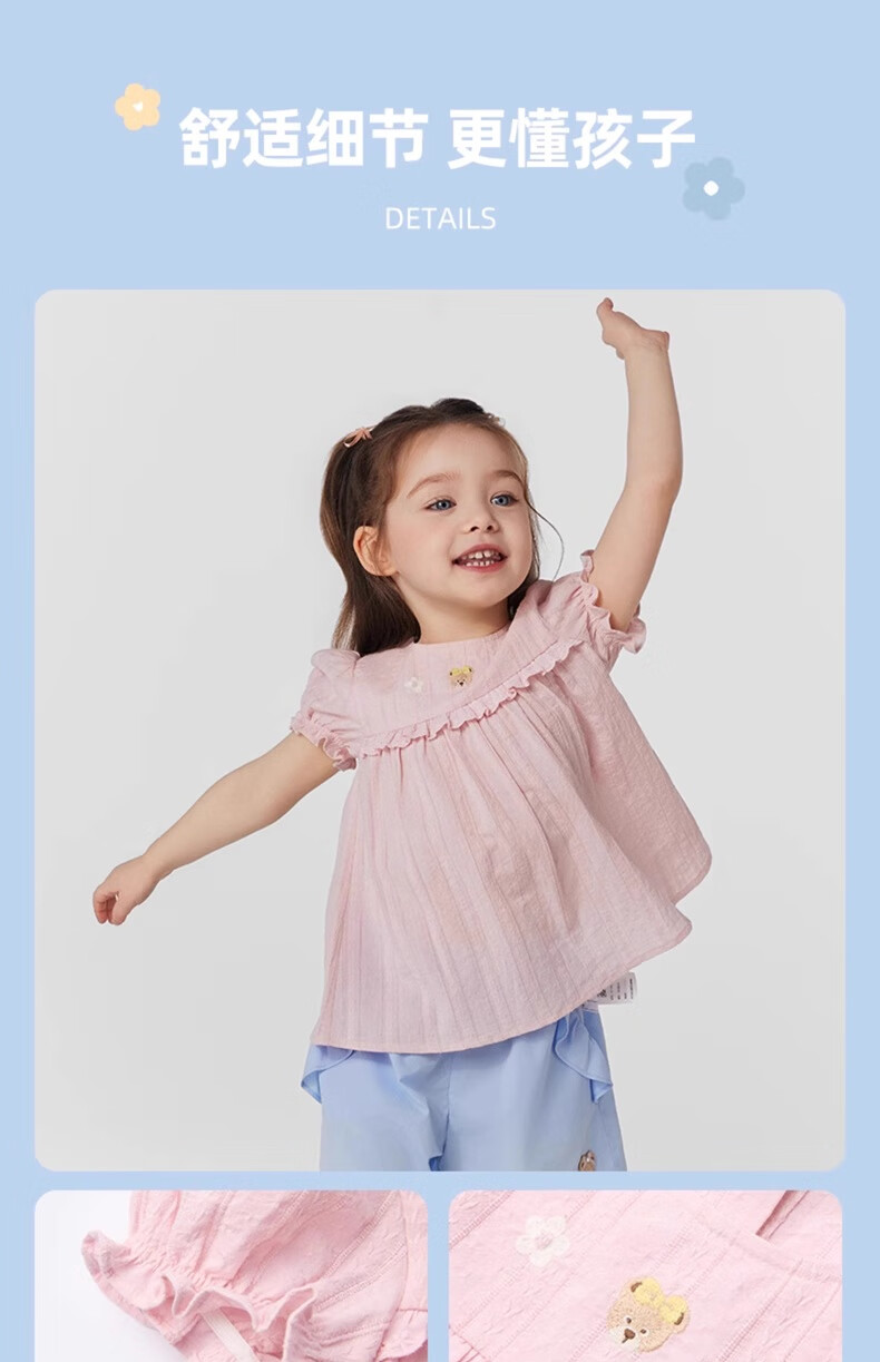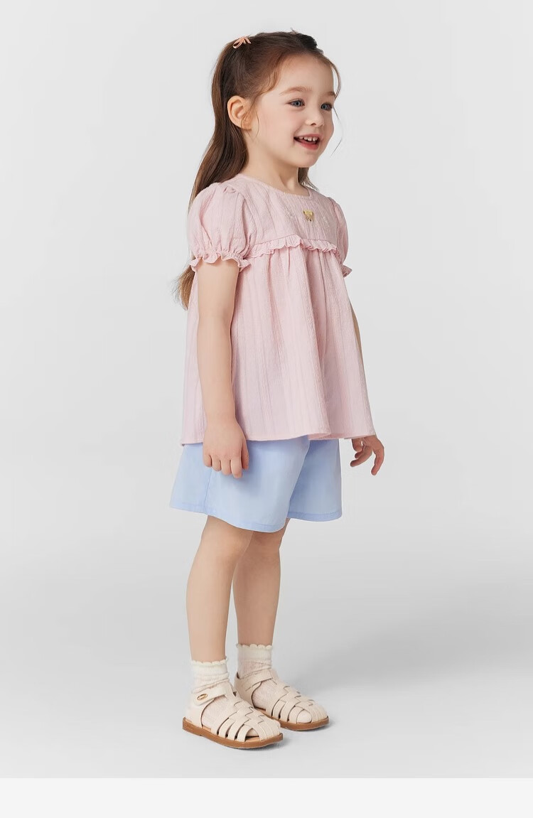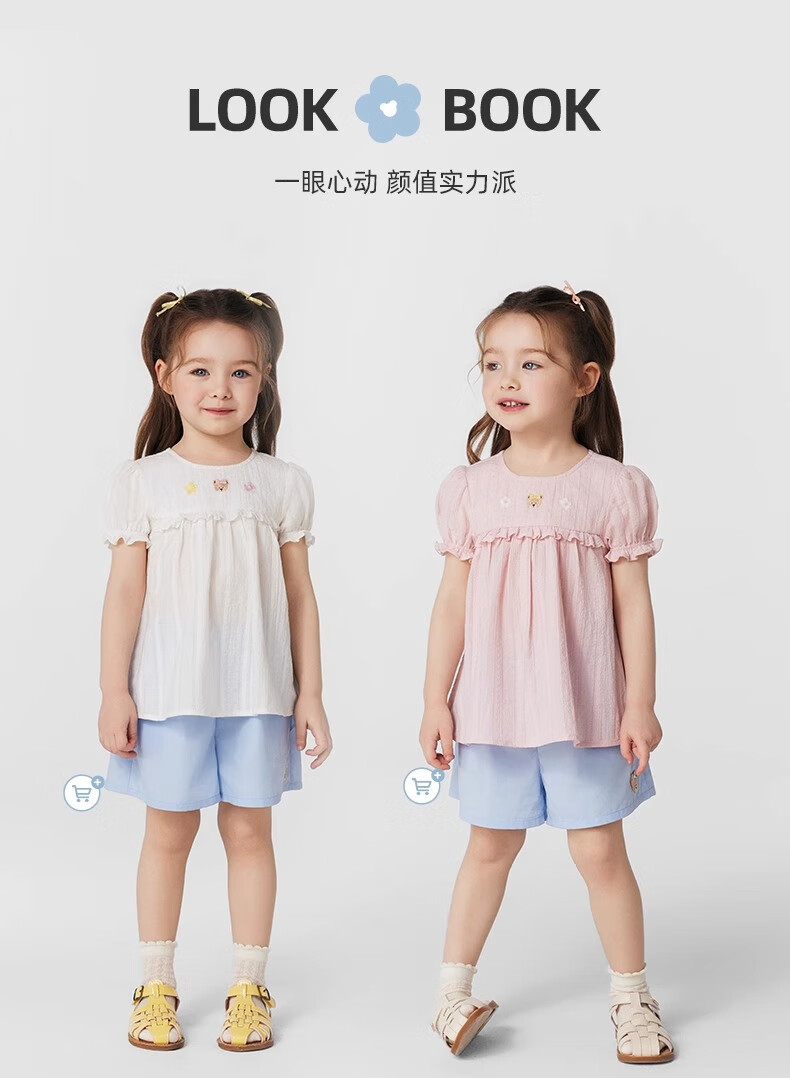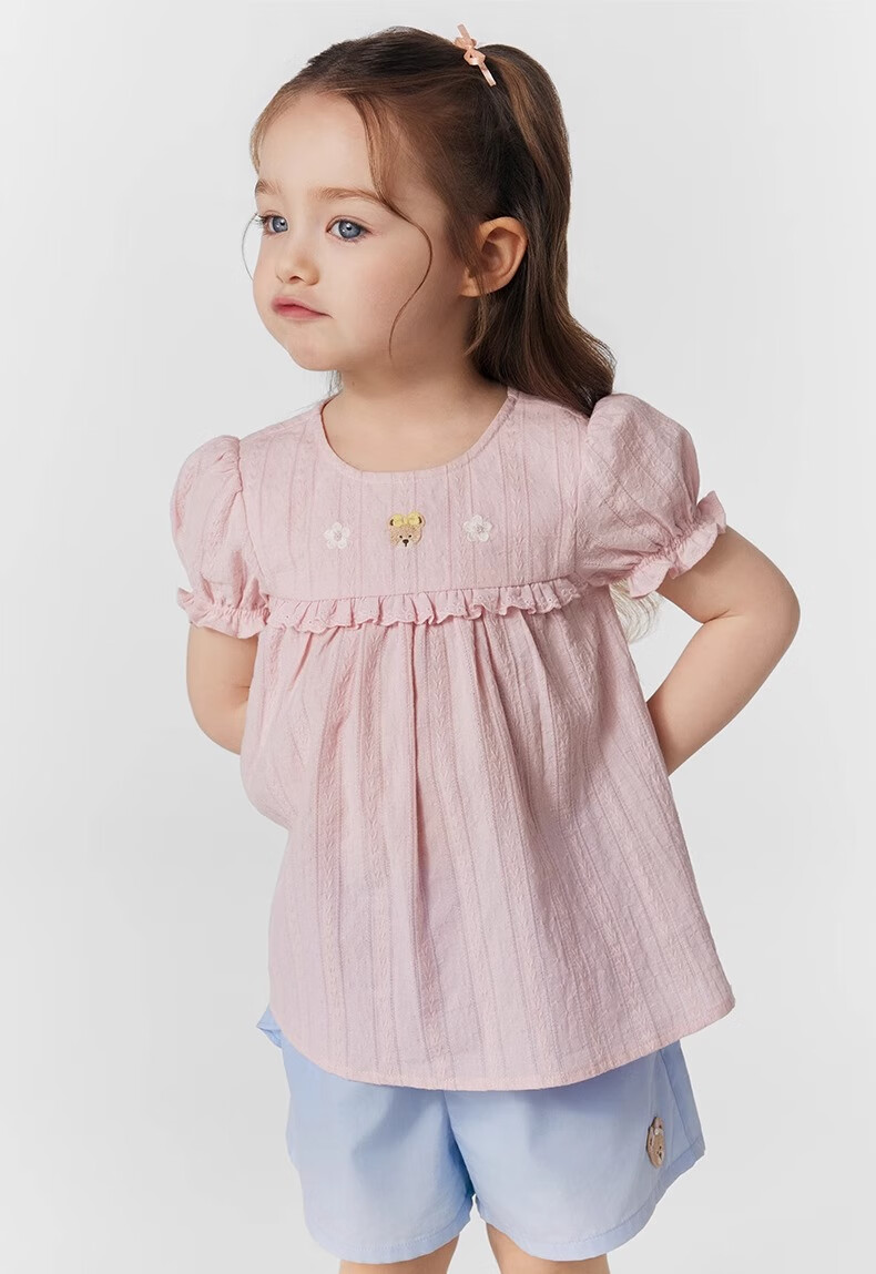 PawinPaw cartoon bear children's clothing 25 spring and summer new baby girl cute puff sleeve A-line shirt Ivory ivory/39 120