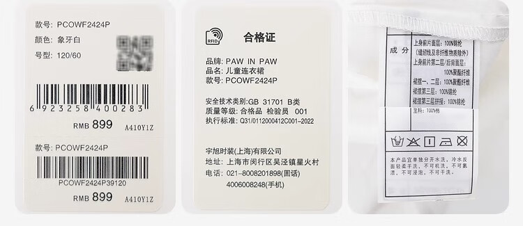PawinPaw shopping mall same style cartoon bear children's clothing 25 spring and summer new girls festival dress dress Ivory ivory/39 110