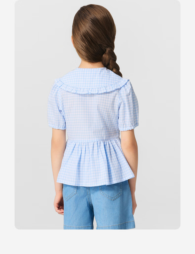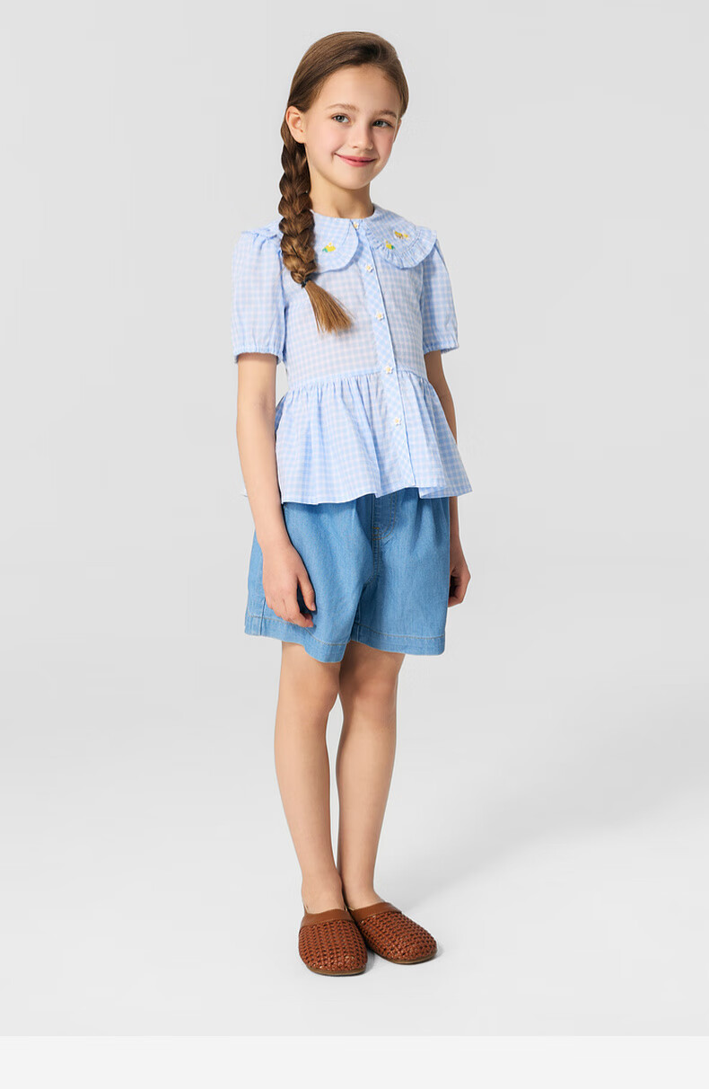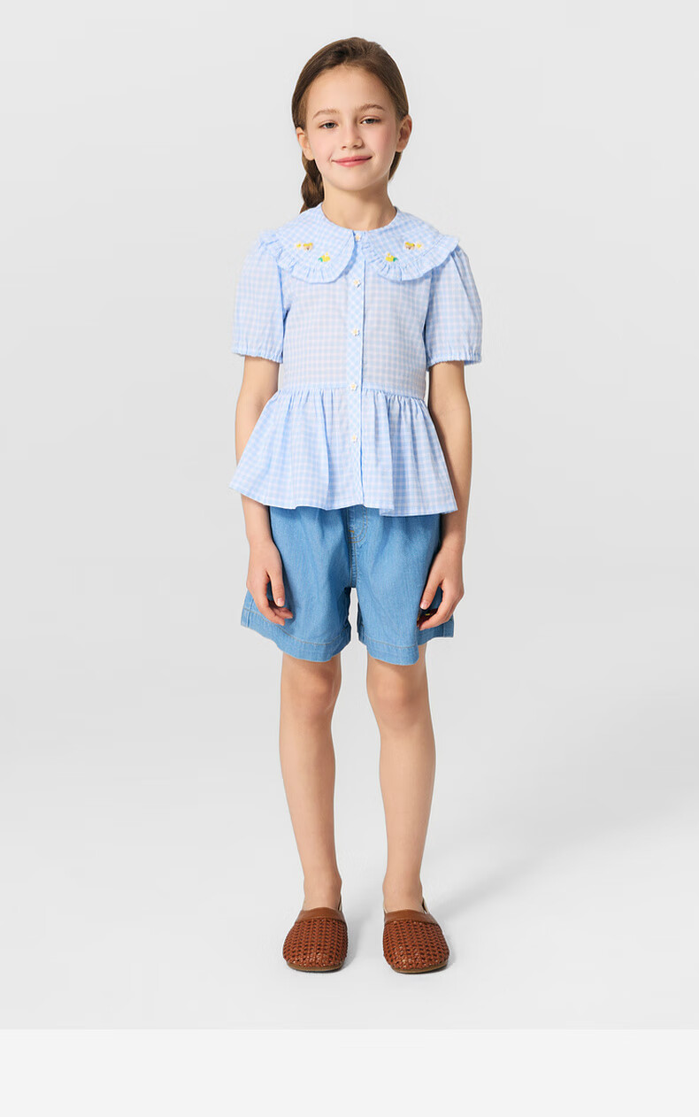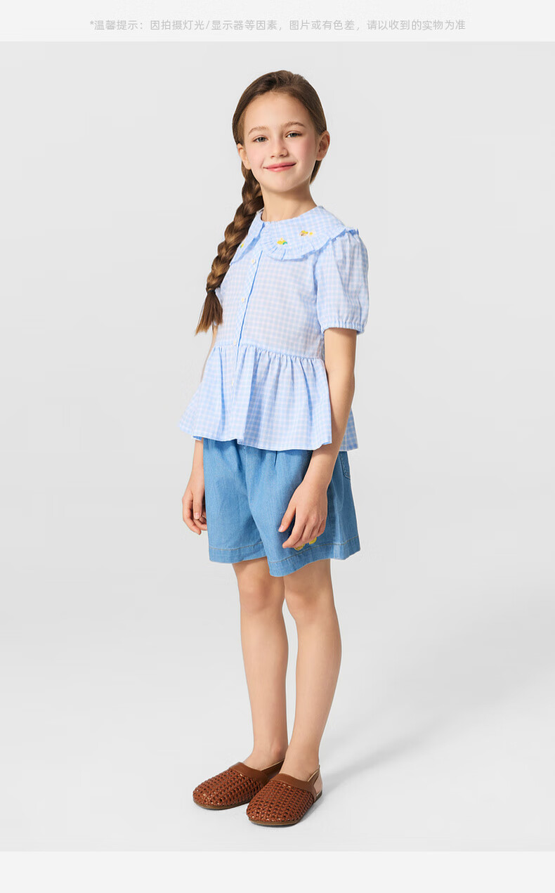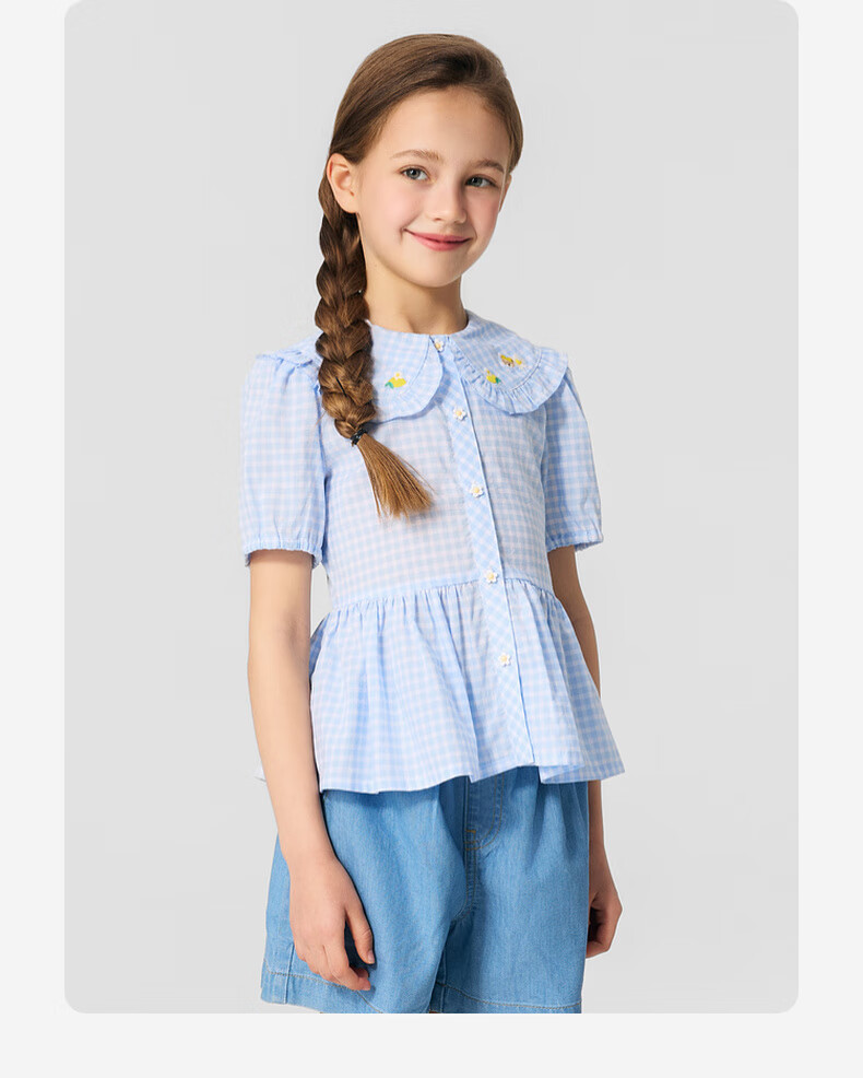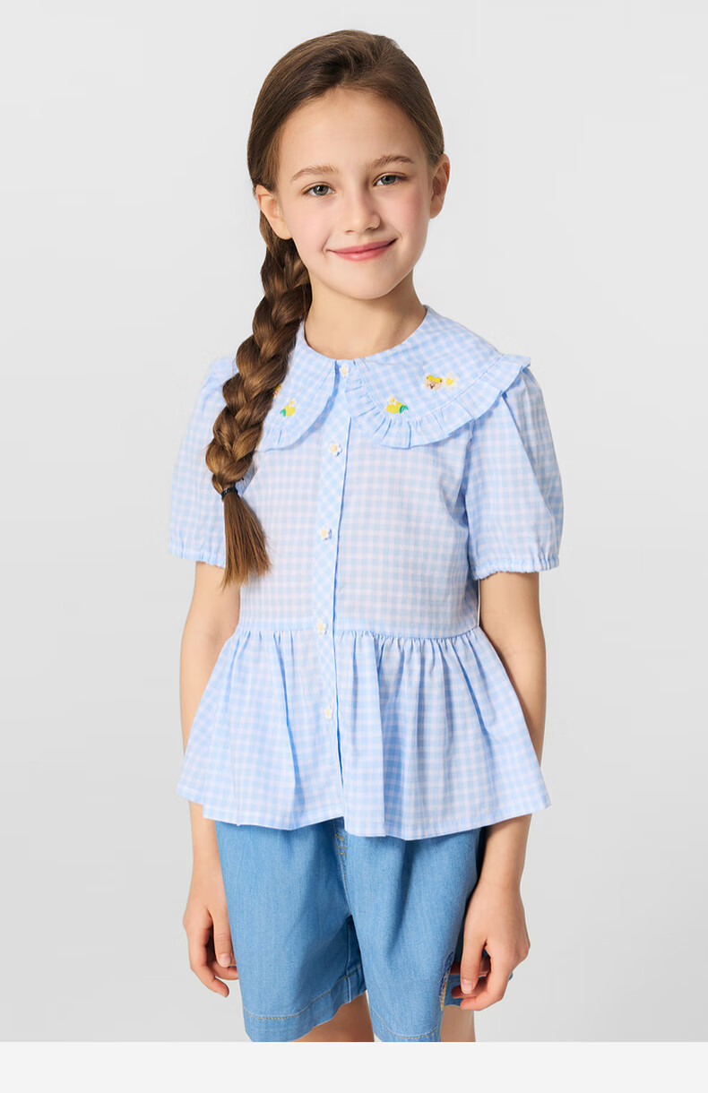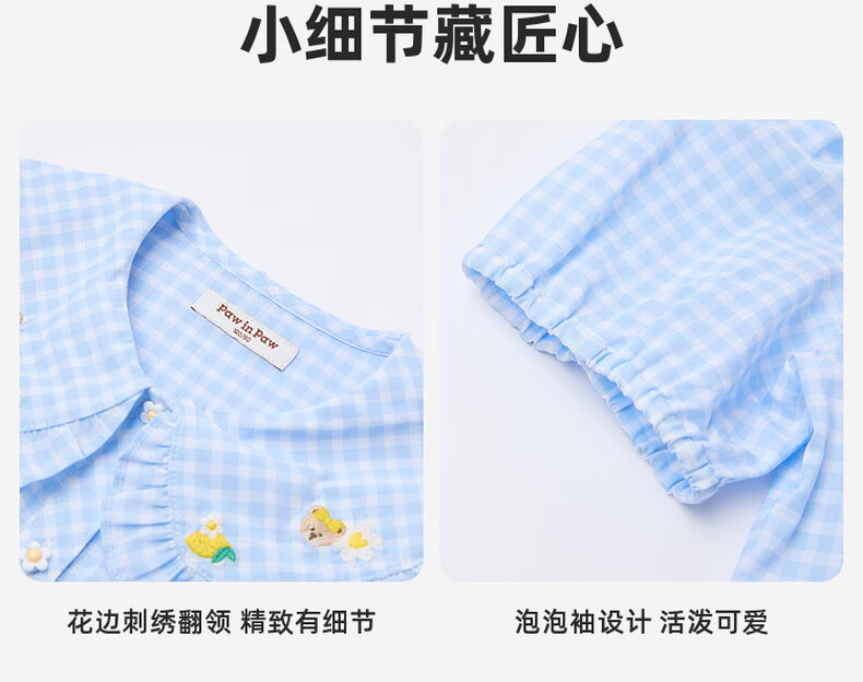 PawinPaw shopping mall same style cartoon bear children's clothing 25 spring and summer new girls lapel short-sleeved shirt Blue blue/50 120
