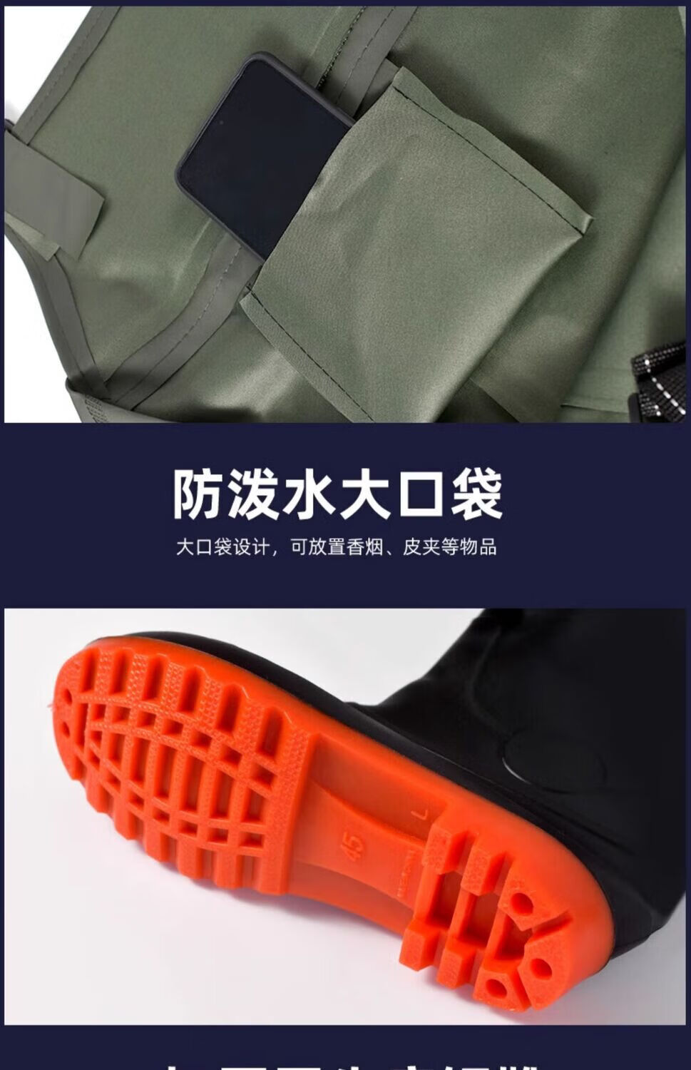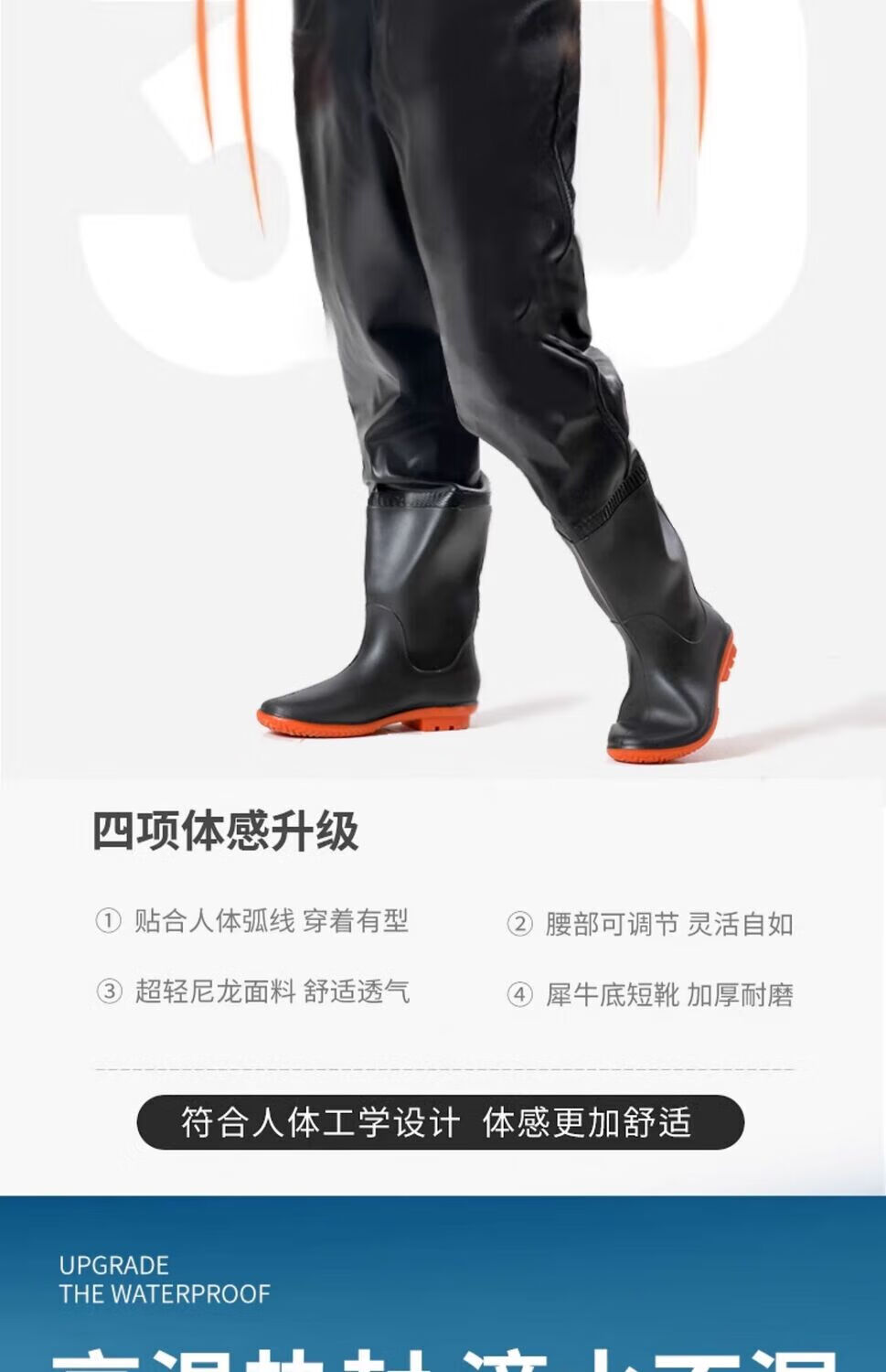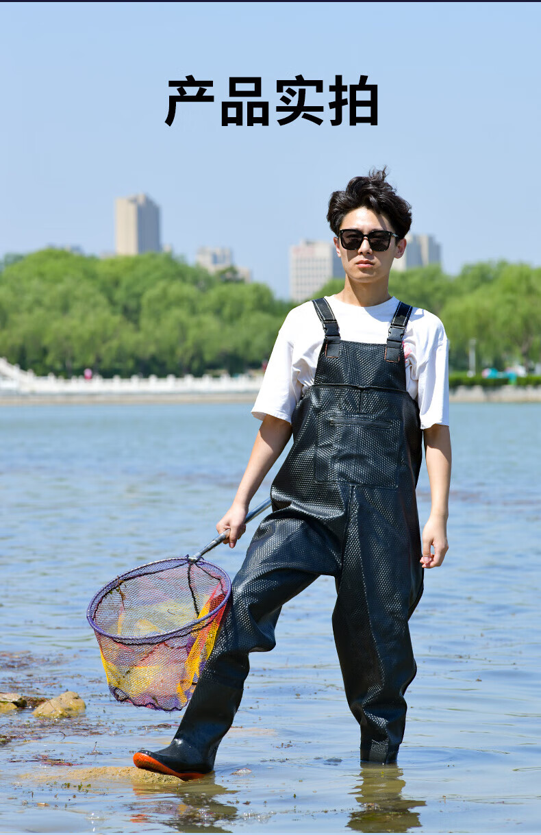Mengda men's waders one-piece rain pants rain boots waterproof clothes water shoes half-length men's leather fork catching fish full-body wading pants classic style 80 silk blue inner knitted fabric 37 shoe size