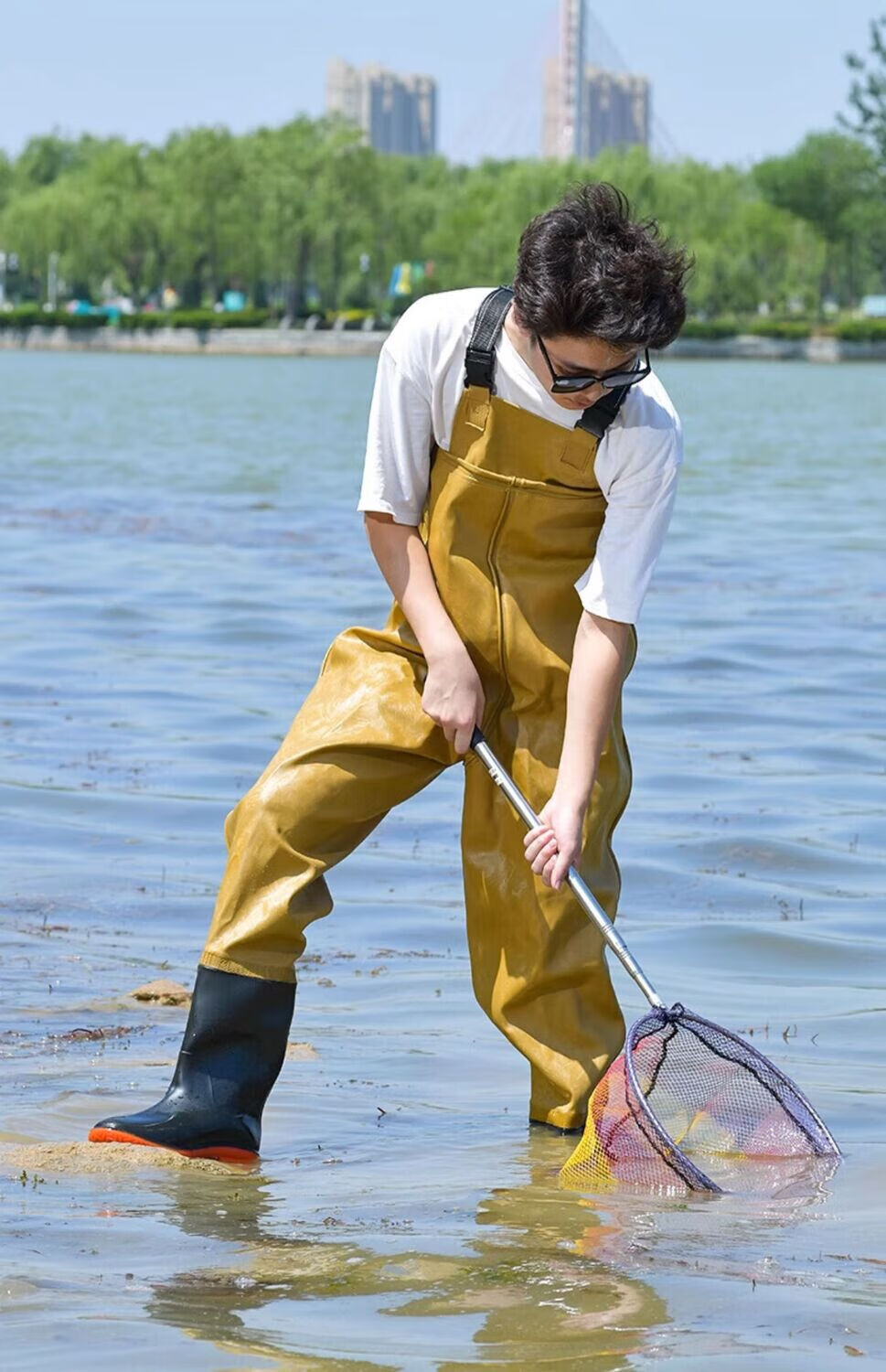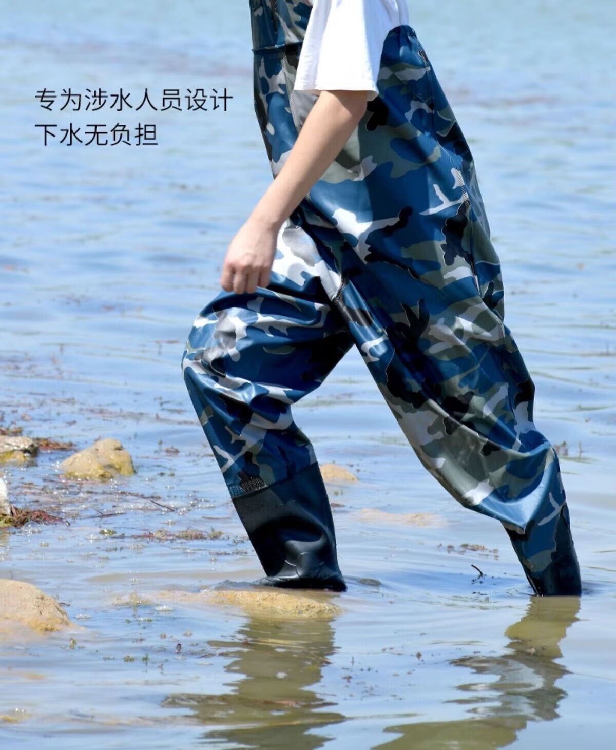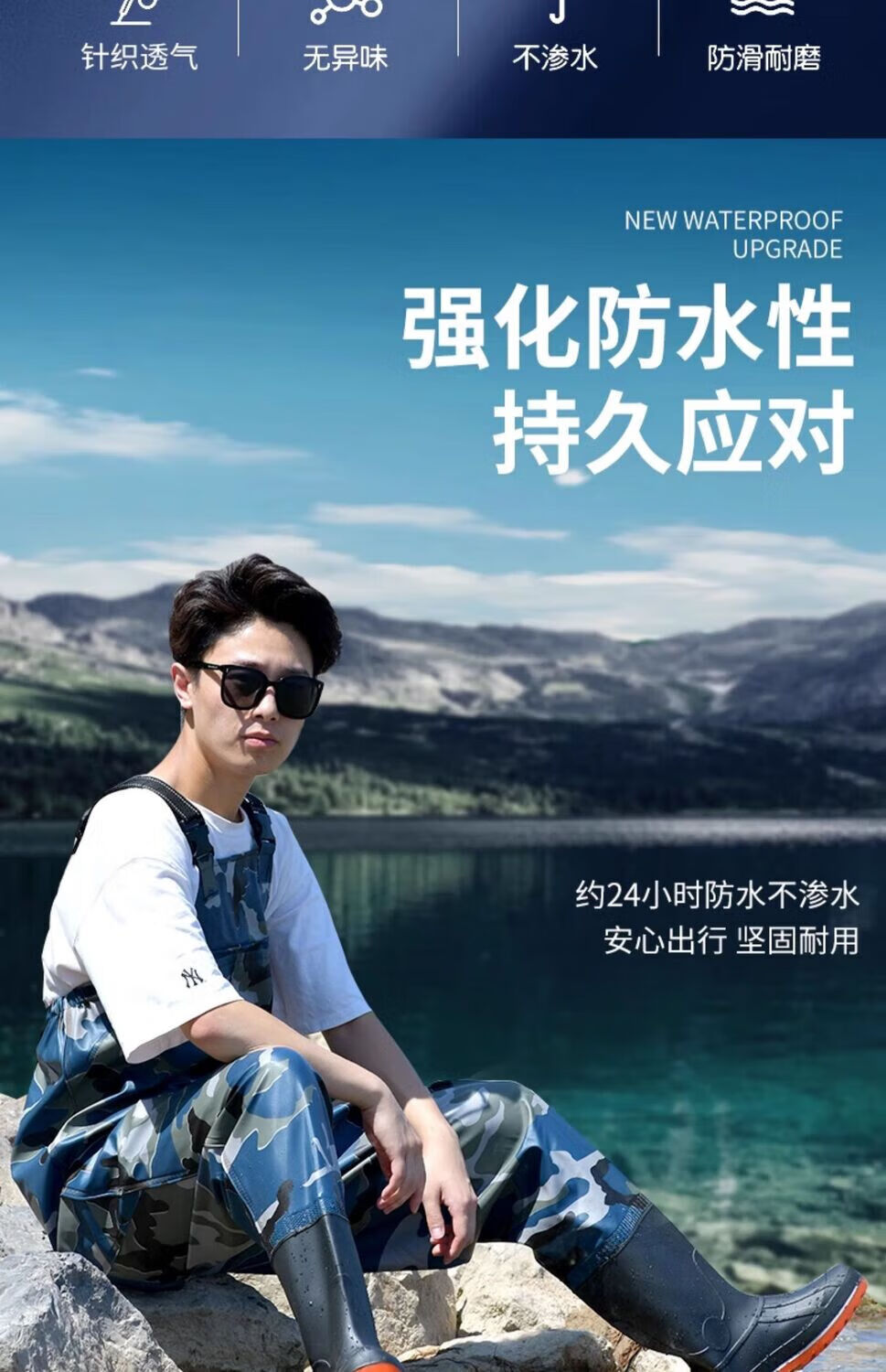 Mengda men's waders one-piece rain pants rain boots waterproof clothes water shoes half-length men's leather fork catching fish full-body wading pants classic style 80 silk blue inner knitted fabric 37 shoe size