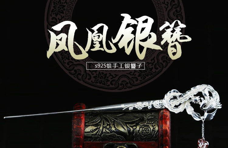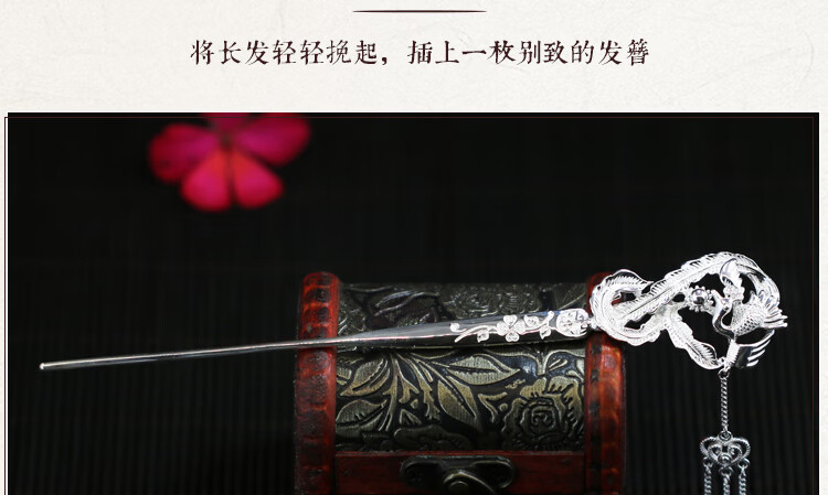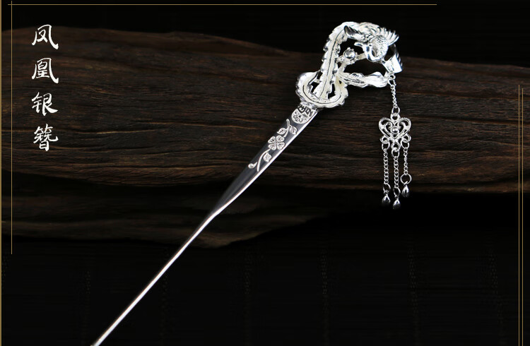 Qiansheng Yuan Phoenix Silver Hairpin S925 Silver Ancient Style Step Shake Tassel Handmade Hairpin Hair Accessory Women's Day Goddess Gift
