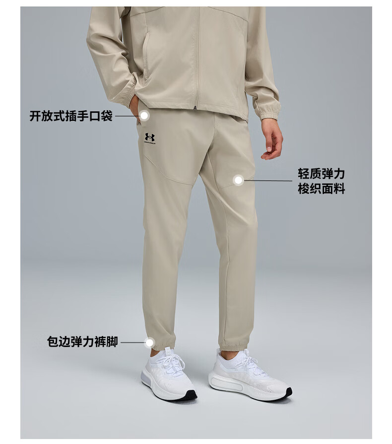Under Armor UA Vibe men's woven sports and casual trousers 1386557 Khaki Gray 289 L