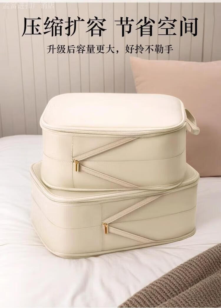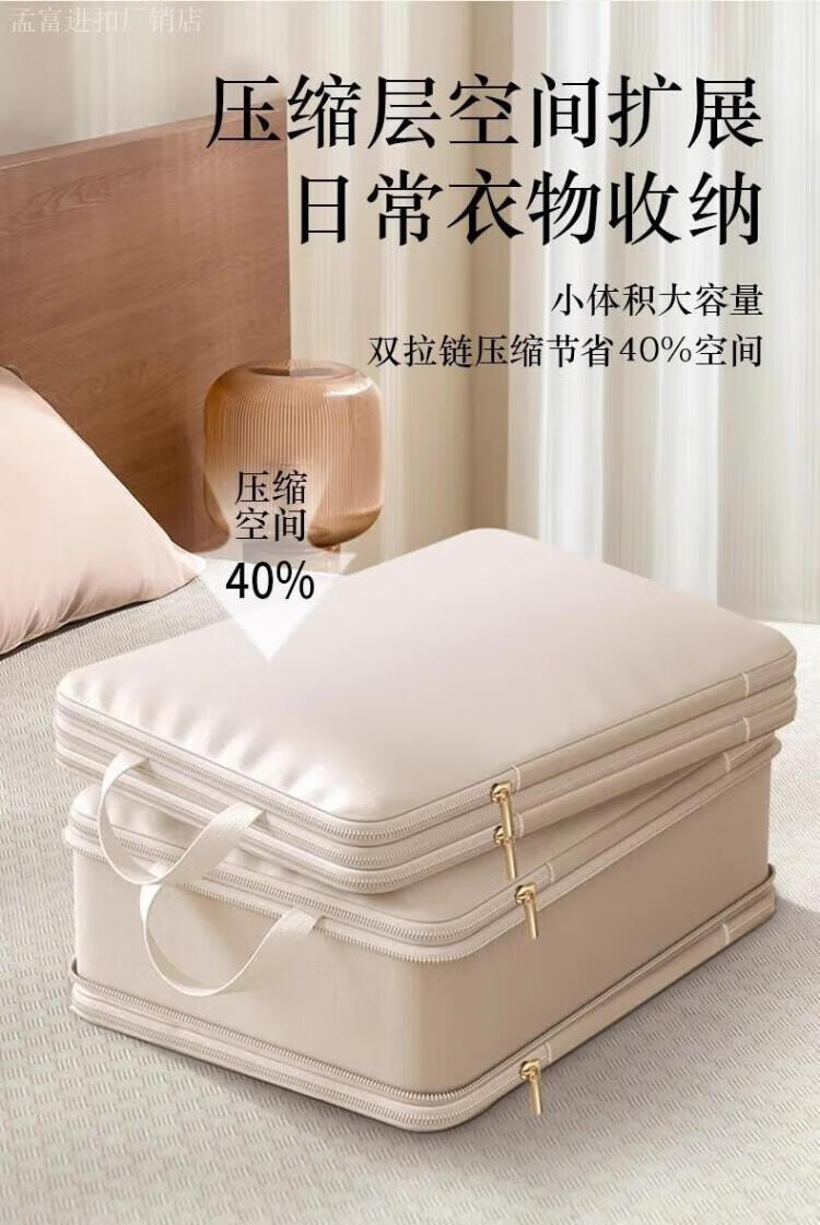 JCZS Japanese down jacket storage bag double-layer zipper compression clothes cotton quilt fabric bag wardrobe home storage bag large dark gray (45*35*22CM) 145*70CM