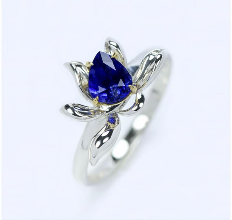 COASZE sapphire droplet G18K ring 1 carat diamond lotus female Maldives blue tail ring 18K gold blue 1.3 carat sapphire (No. 14)