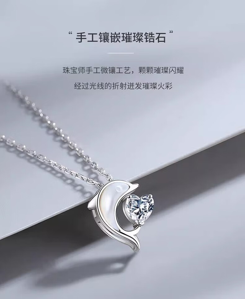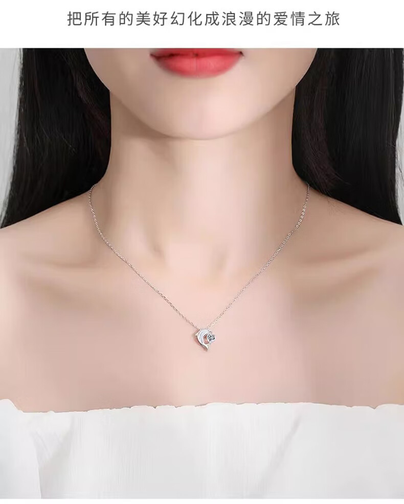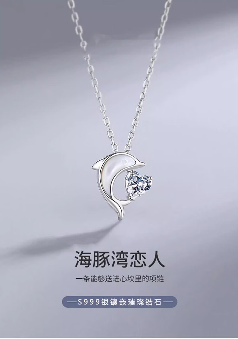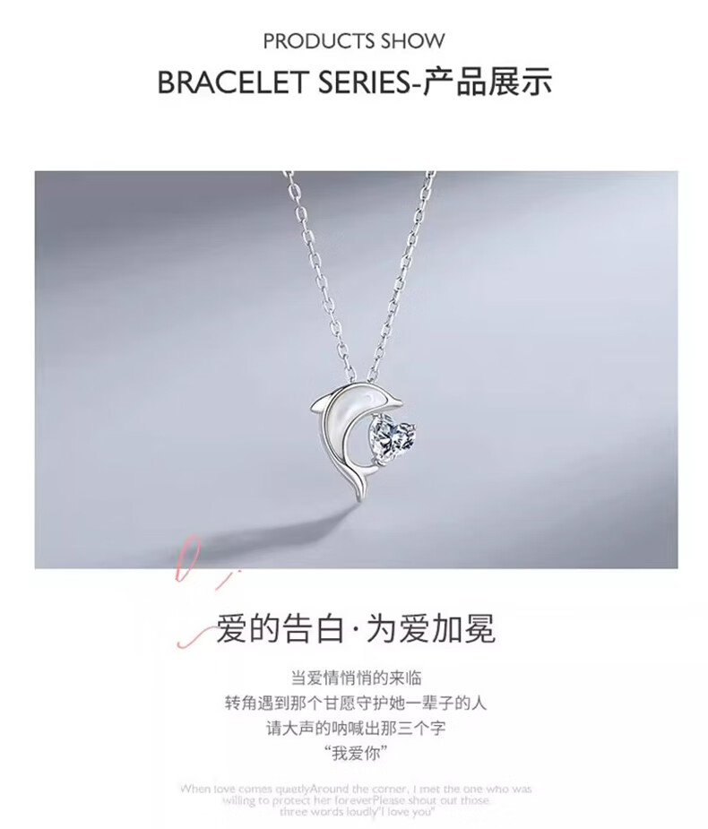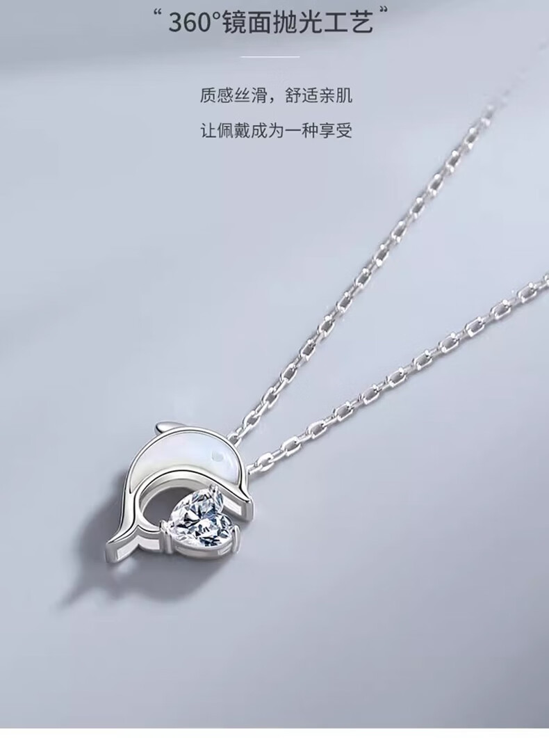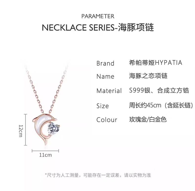 HYPATIA Dolphin Love S999 Sterling Silver Dolphin Necklace Women's Light Luxury Niche Clavicle Chain Pendant Gift for Girlfriend 999 Silver Dolphin Love Necklace-Platinum
