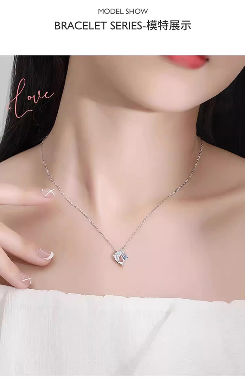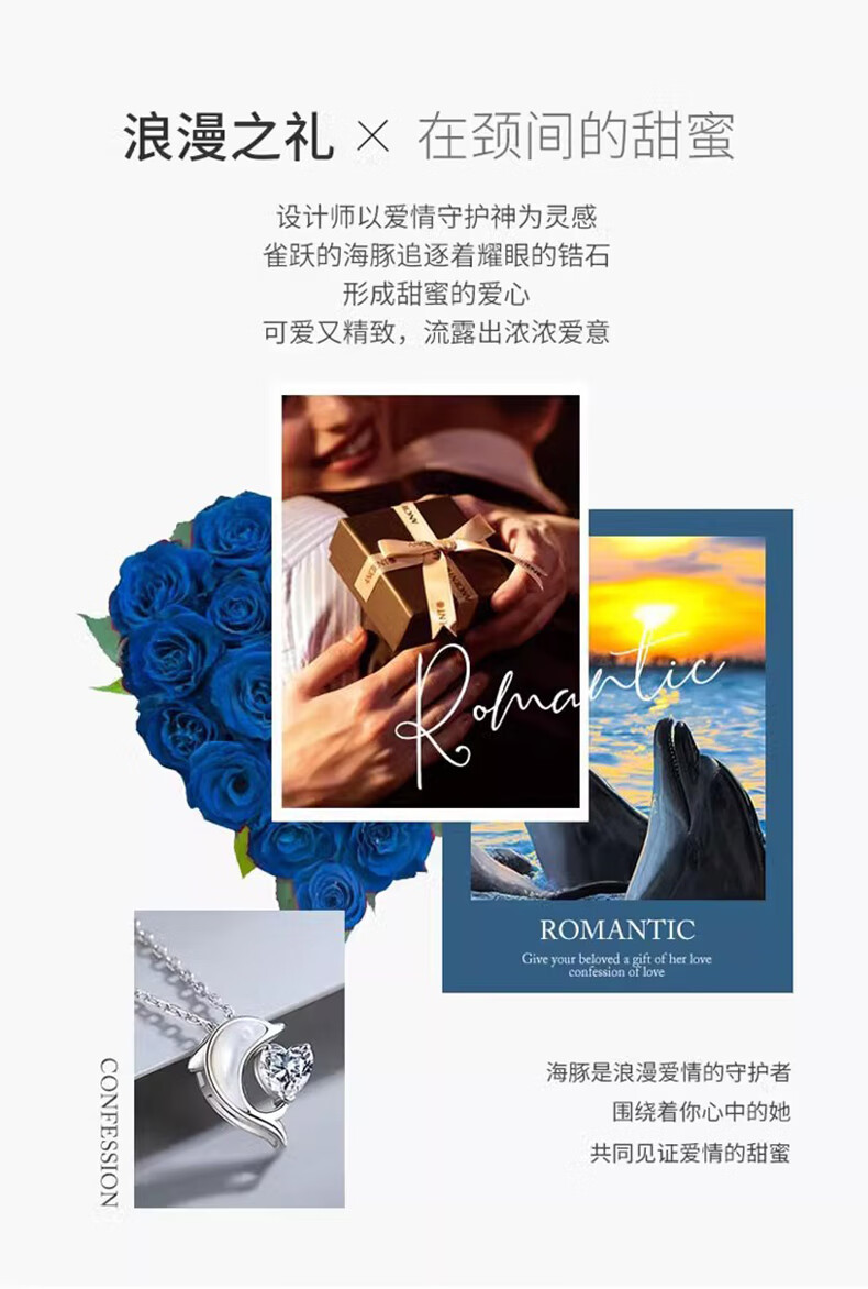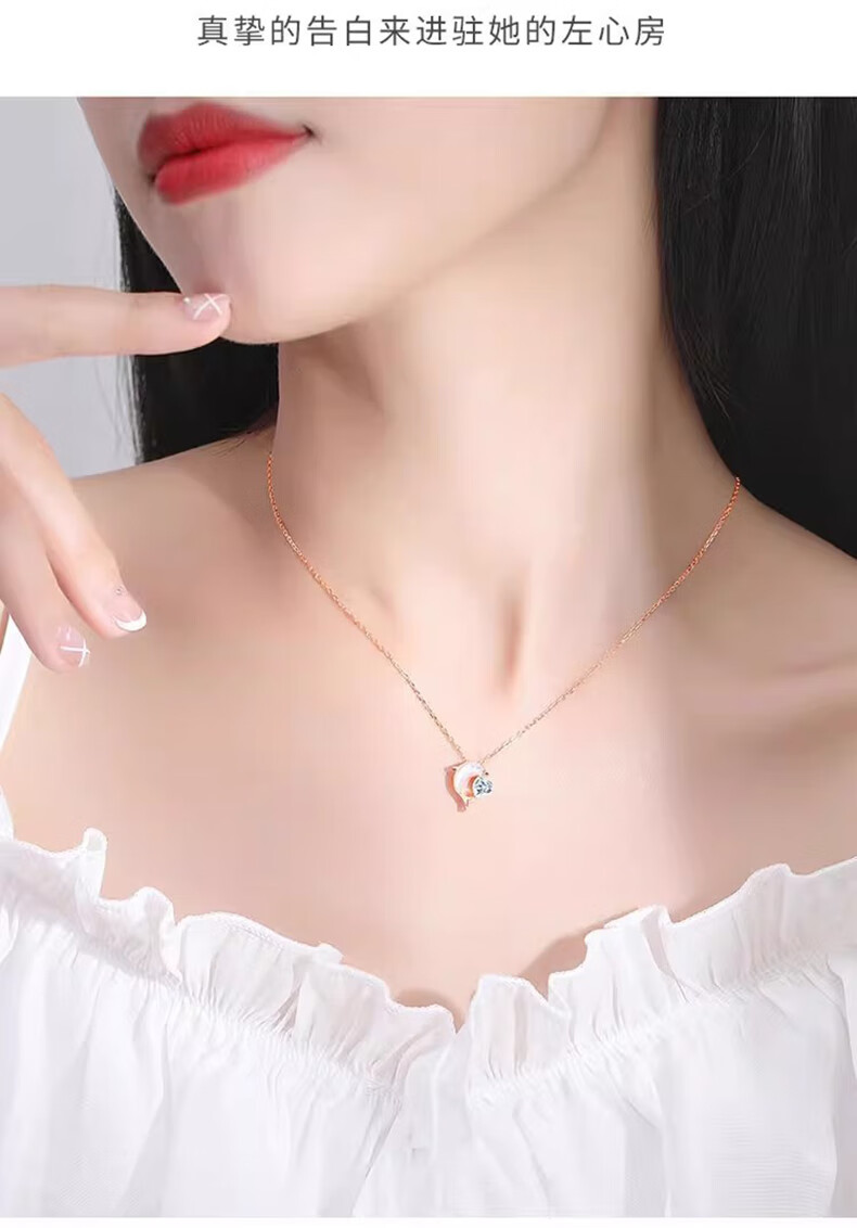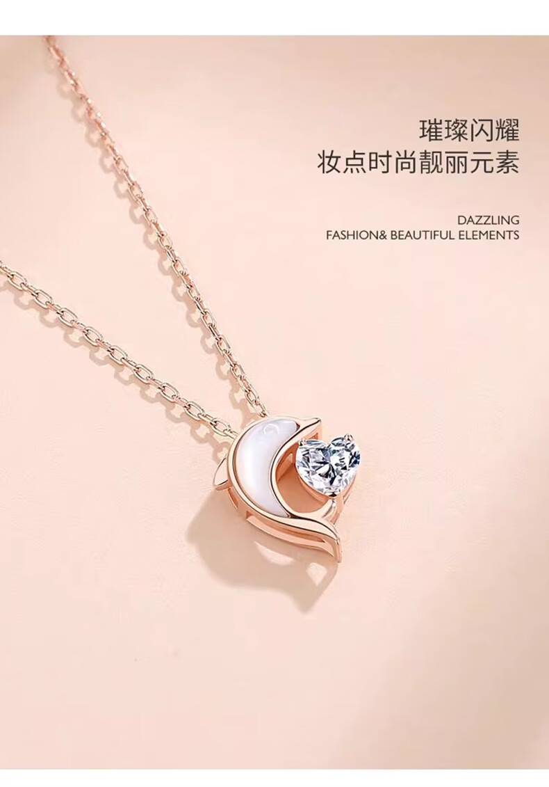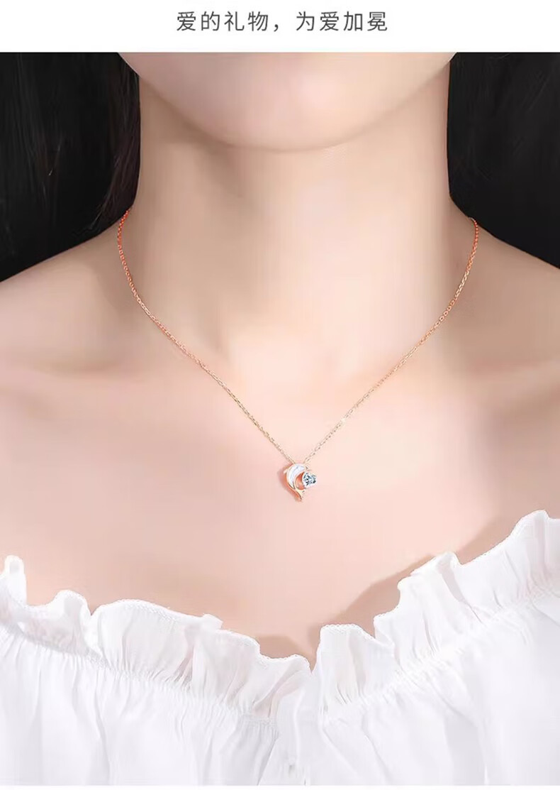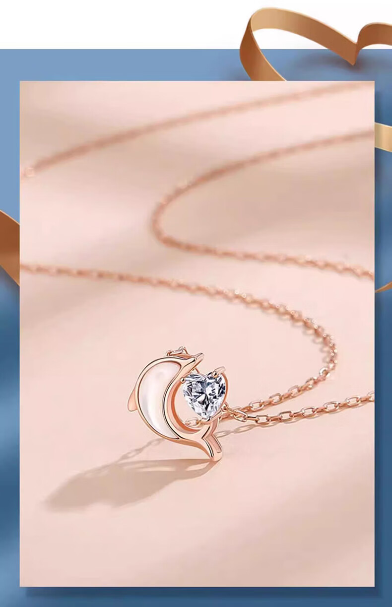 HYPATIA Dolphin Love S999 Sterling Silver Dolphin Necklace Women's Light Luxury Niche Clavicle Chain Pendant Gift for Girlfriend 999 Silver Dolphin Love Necklace-Platinum