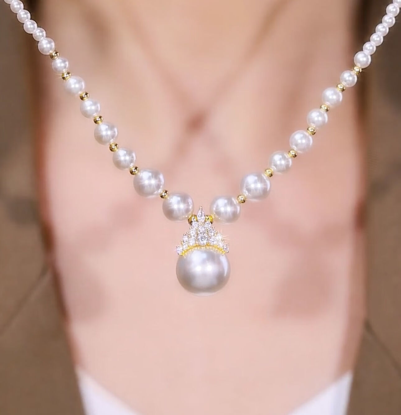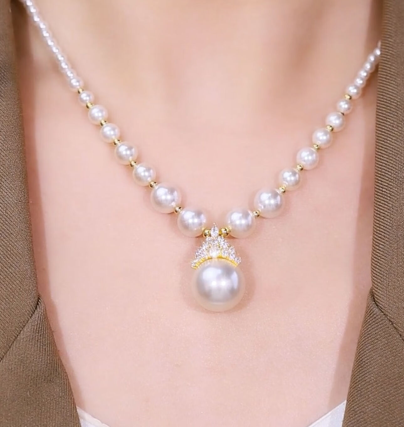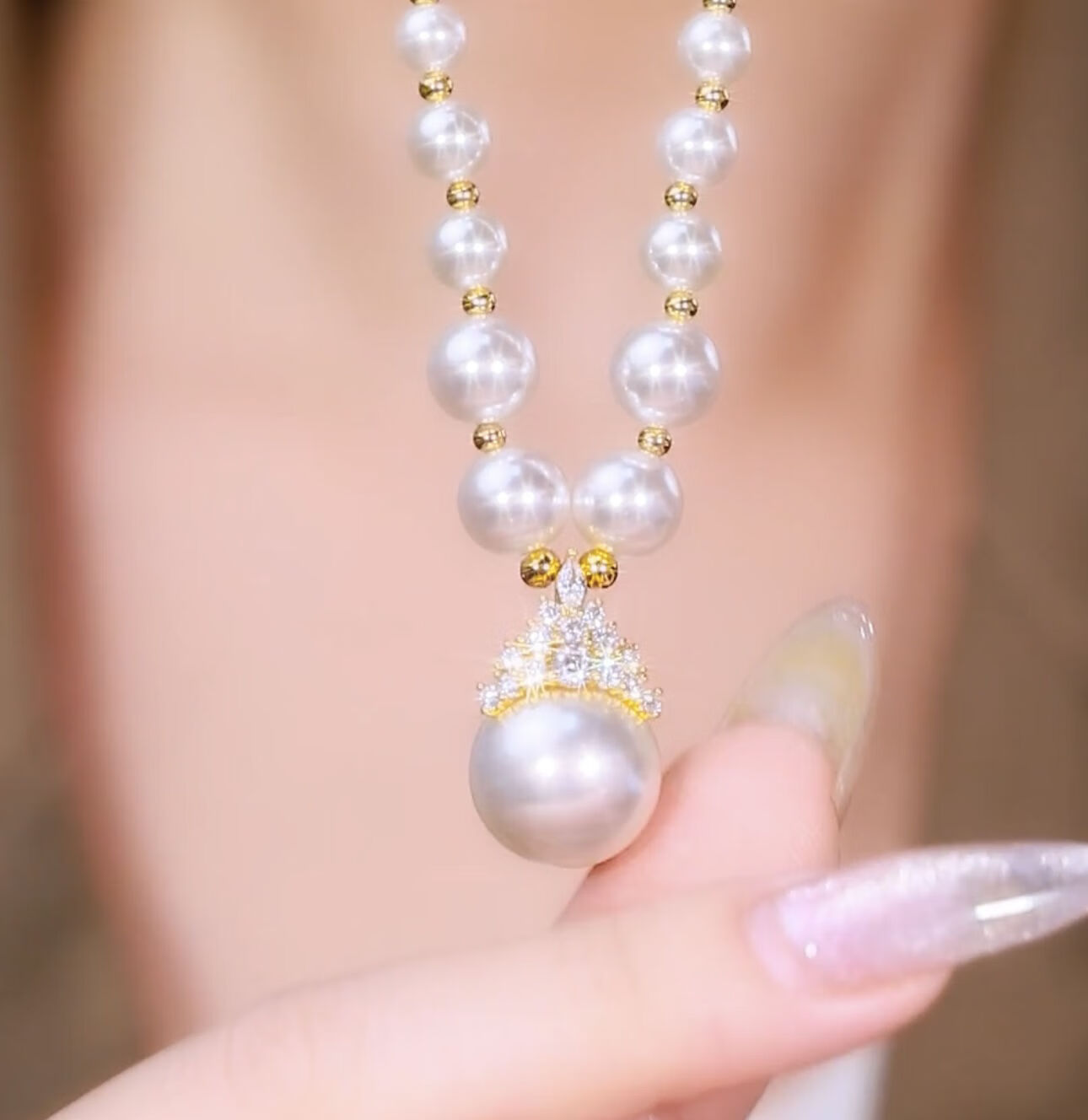 Excellent Pearl Necklace Women's Light Luxury Niche High-Class Clavicle Chain 2025 New Necklace Accessories Pendant Sweater Chain Pearl Color Necklace