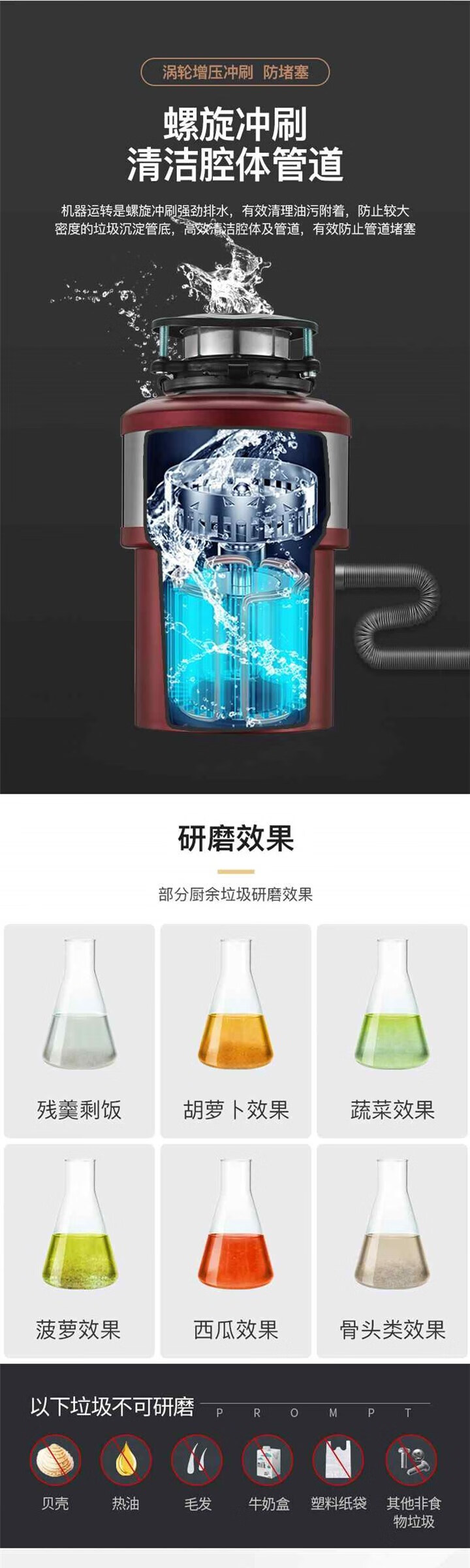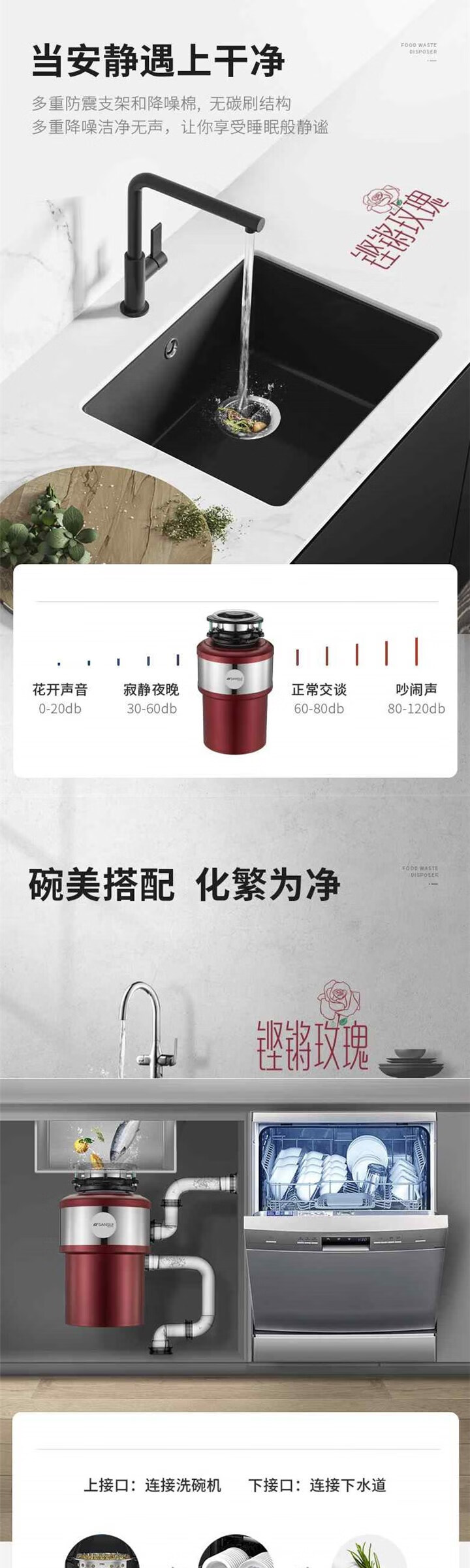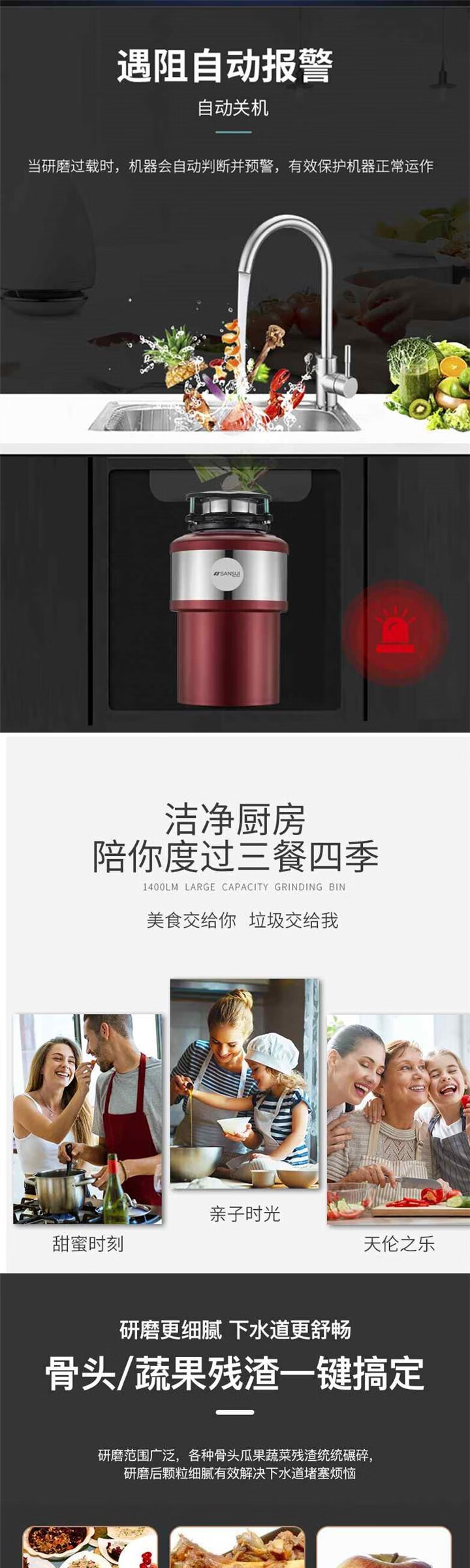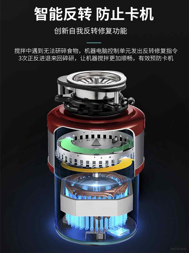 YWZR Garbage Disposer Soundproof w Noise Reduction Fully Automatic Kitchen Waste Food Shredder Red