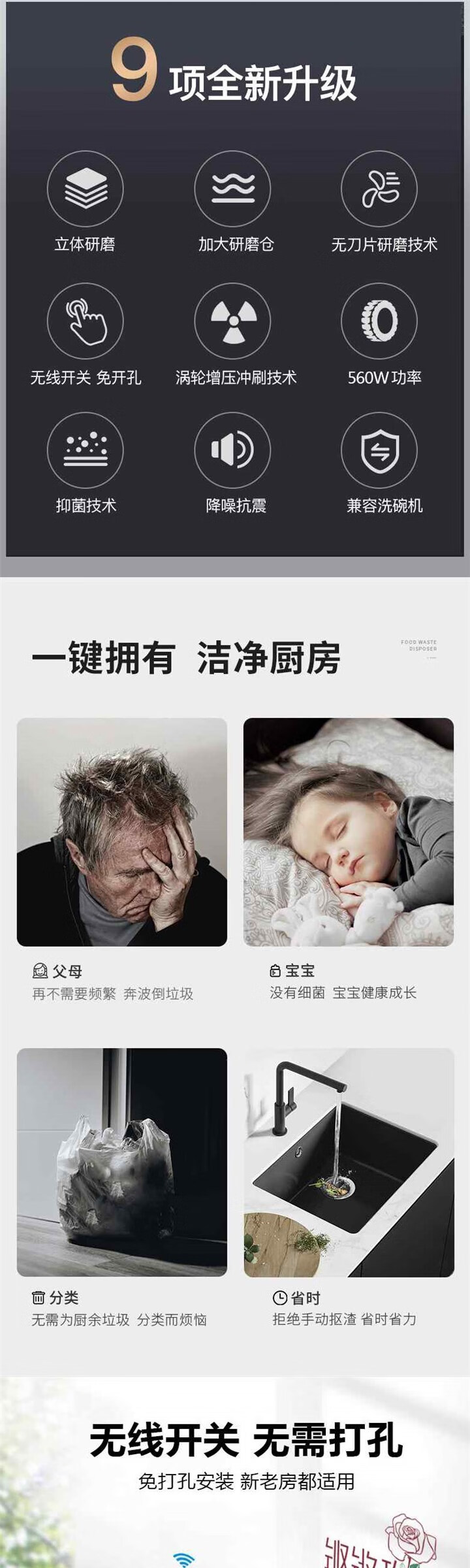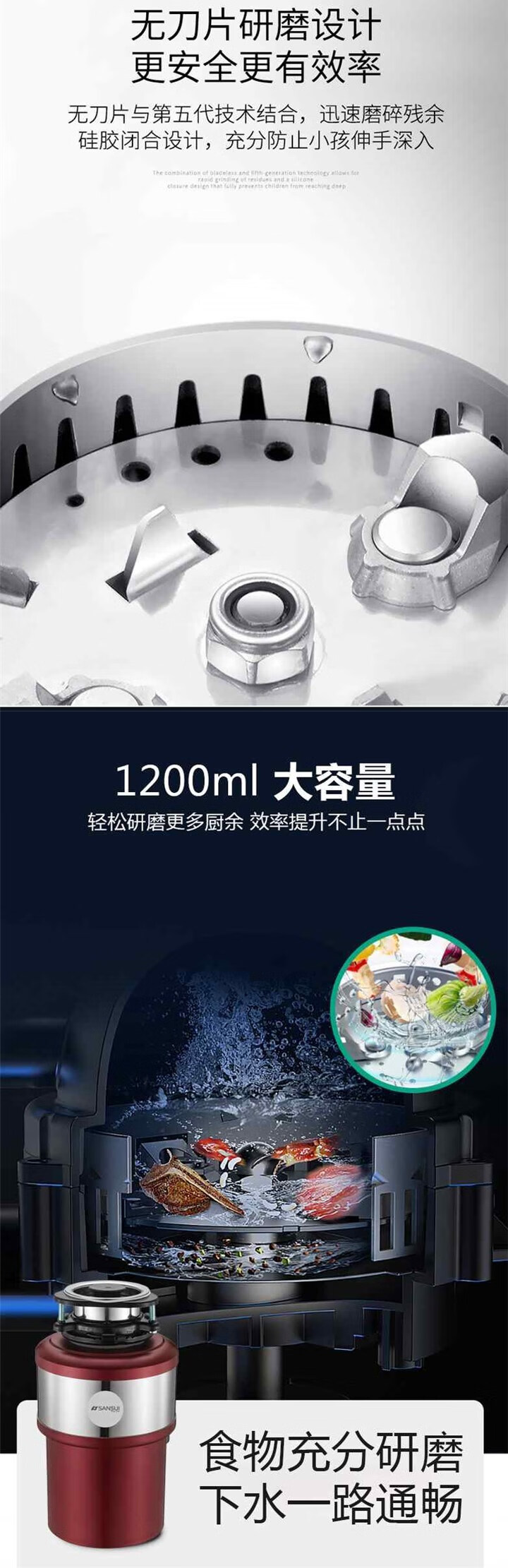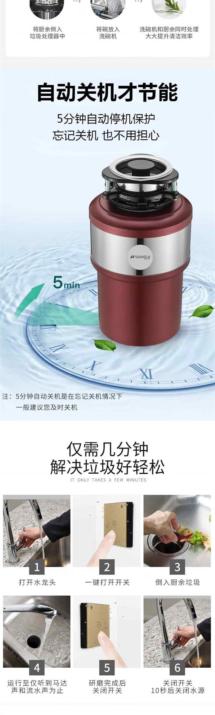 YWZR Garbage Disposer Soundproof w Noise Reduction Fully Automatic Kitchen Waste Food Shredder Red