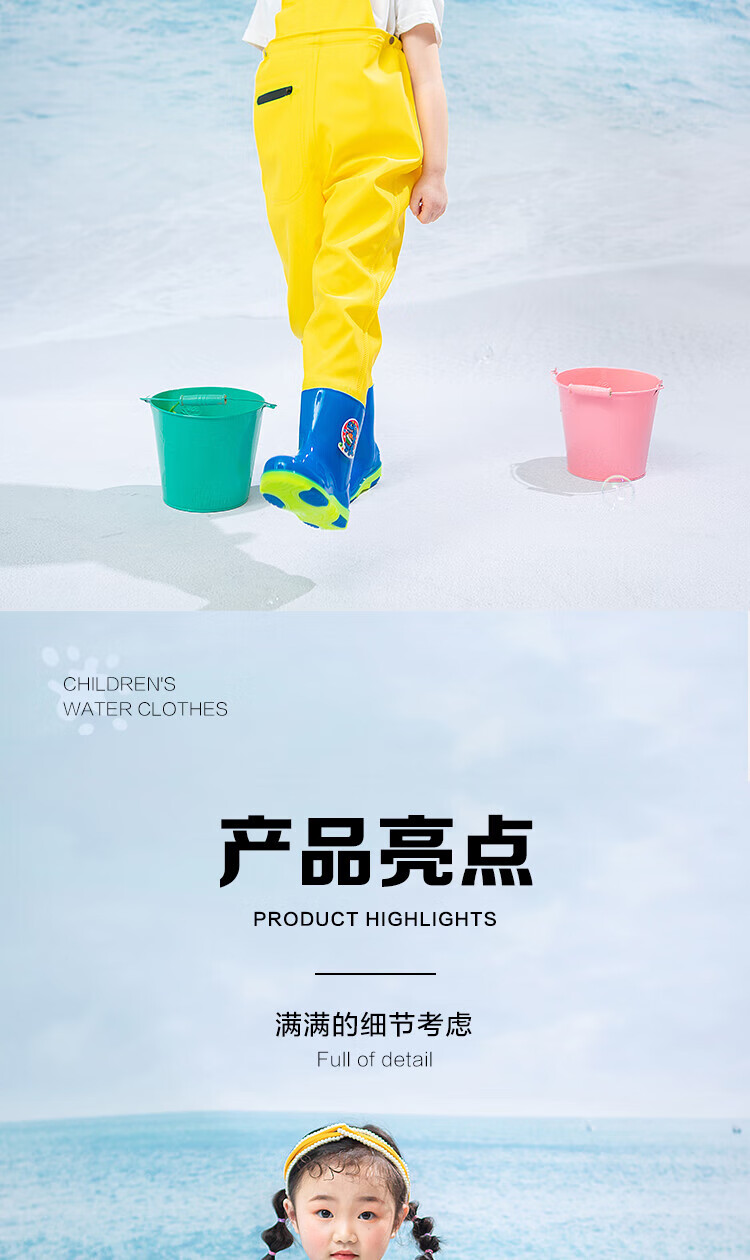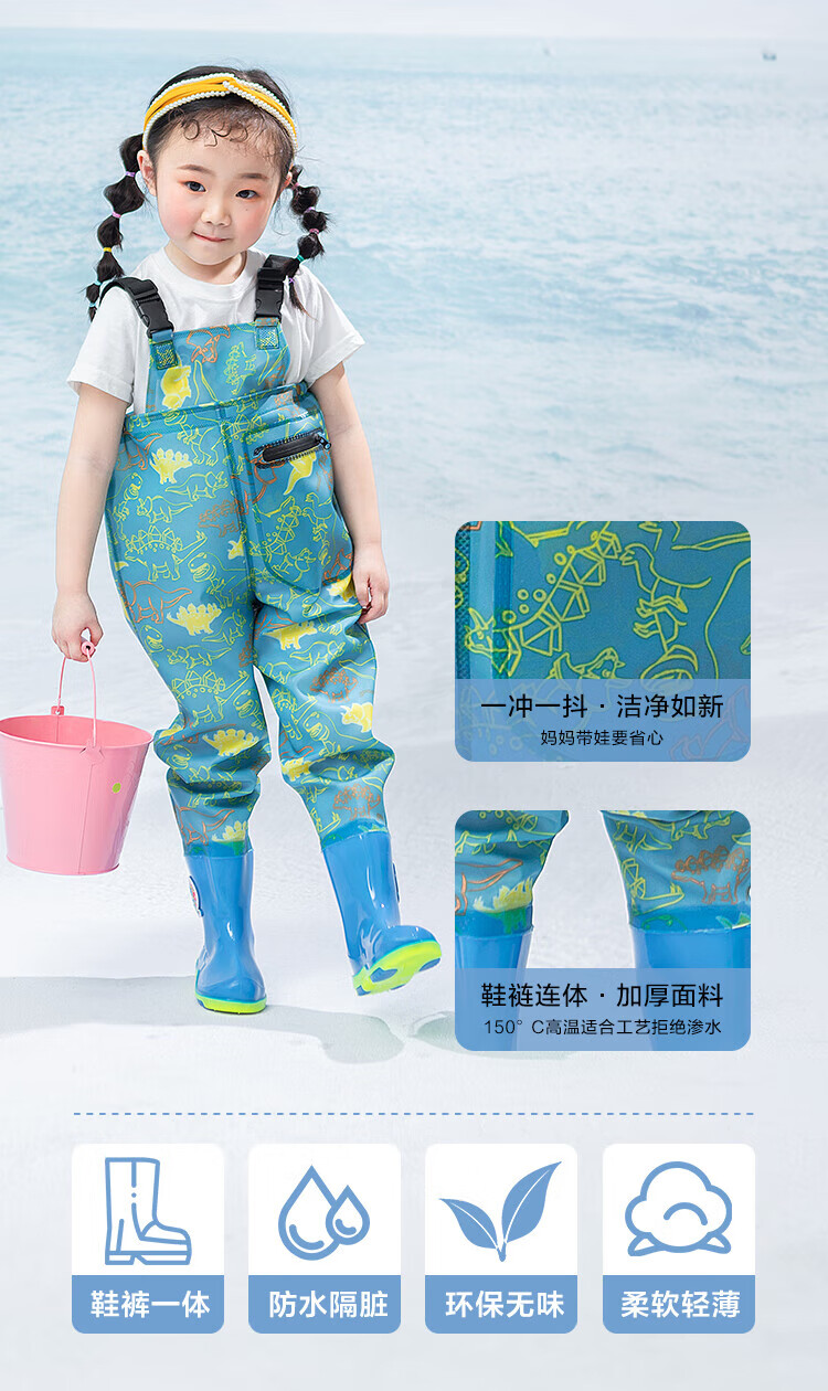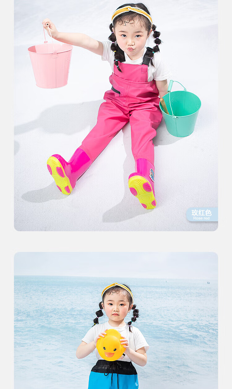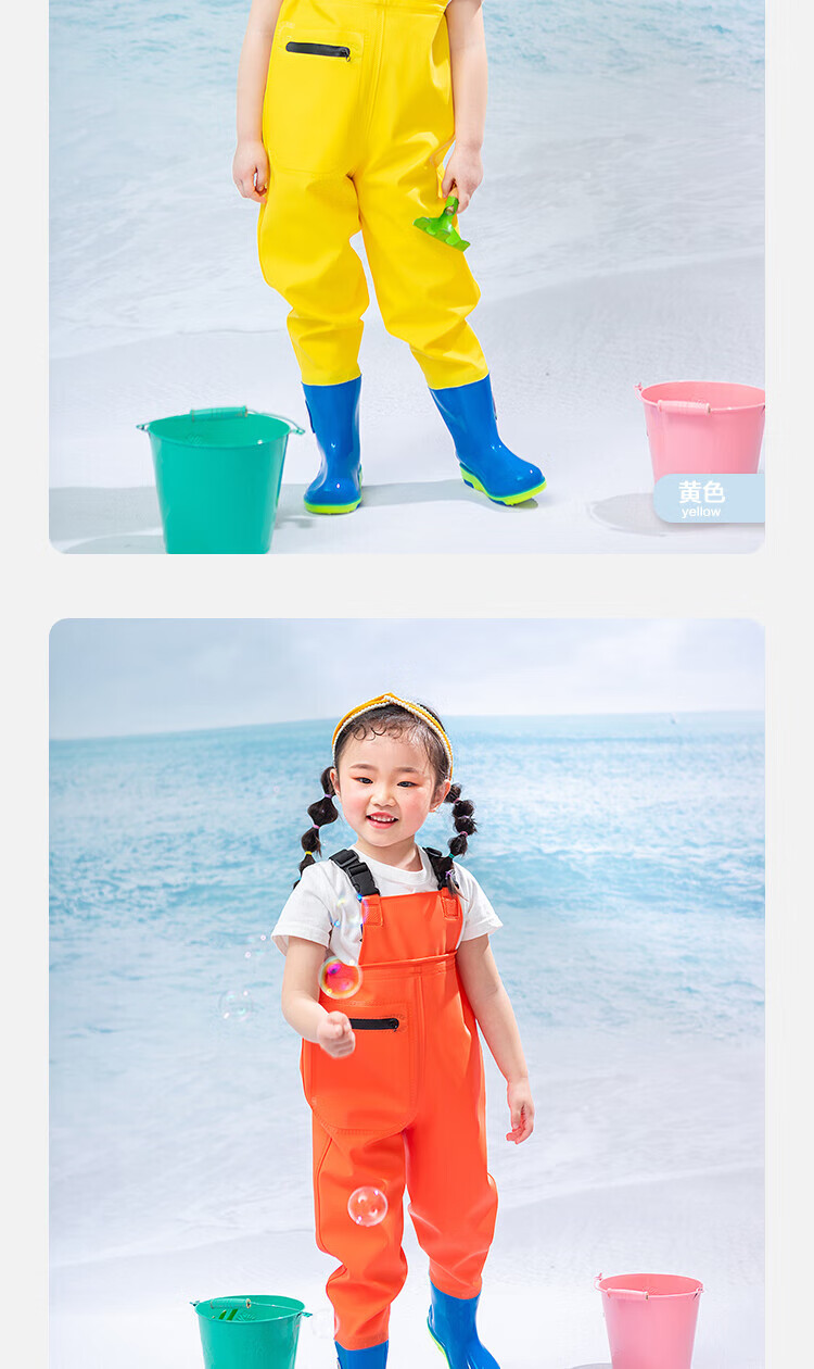 Pauline Pesery Children's water play one-piece waders Kindergarten waterproof clothes for catching the sea, rain boots for boys and girls, catching fish and rain pants, children's yellow overalls with pockets, size 21/27 (shoe inner length 14b)