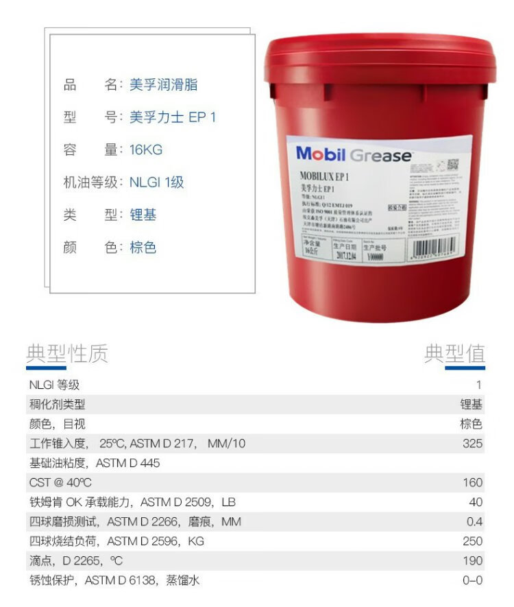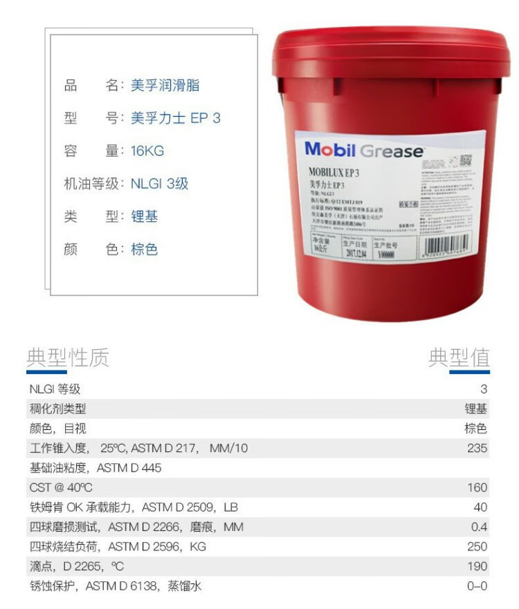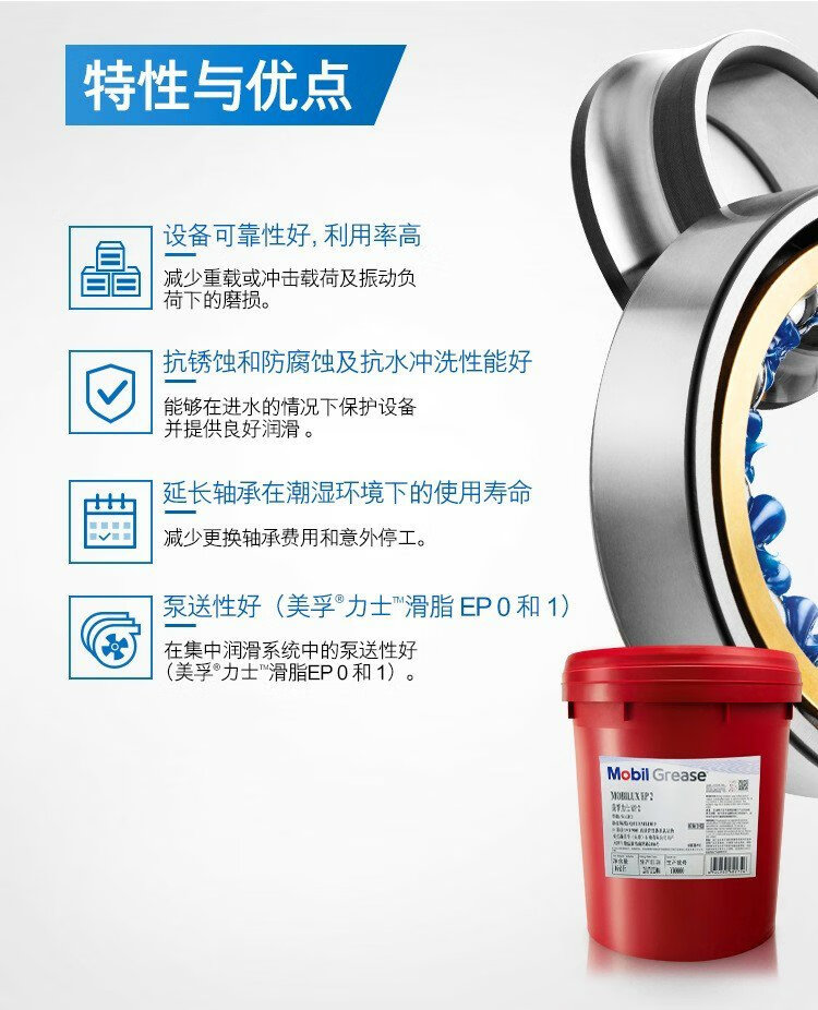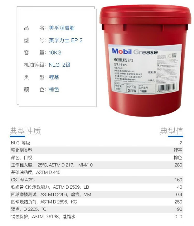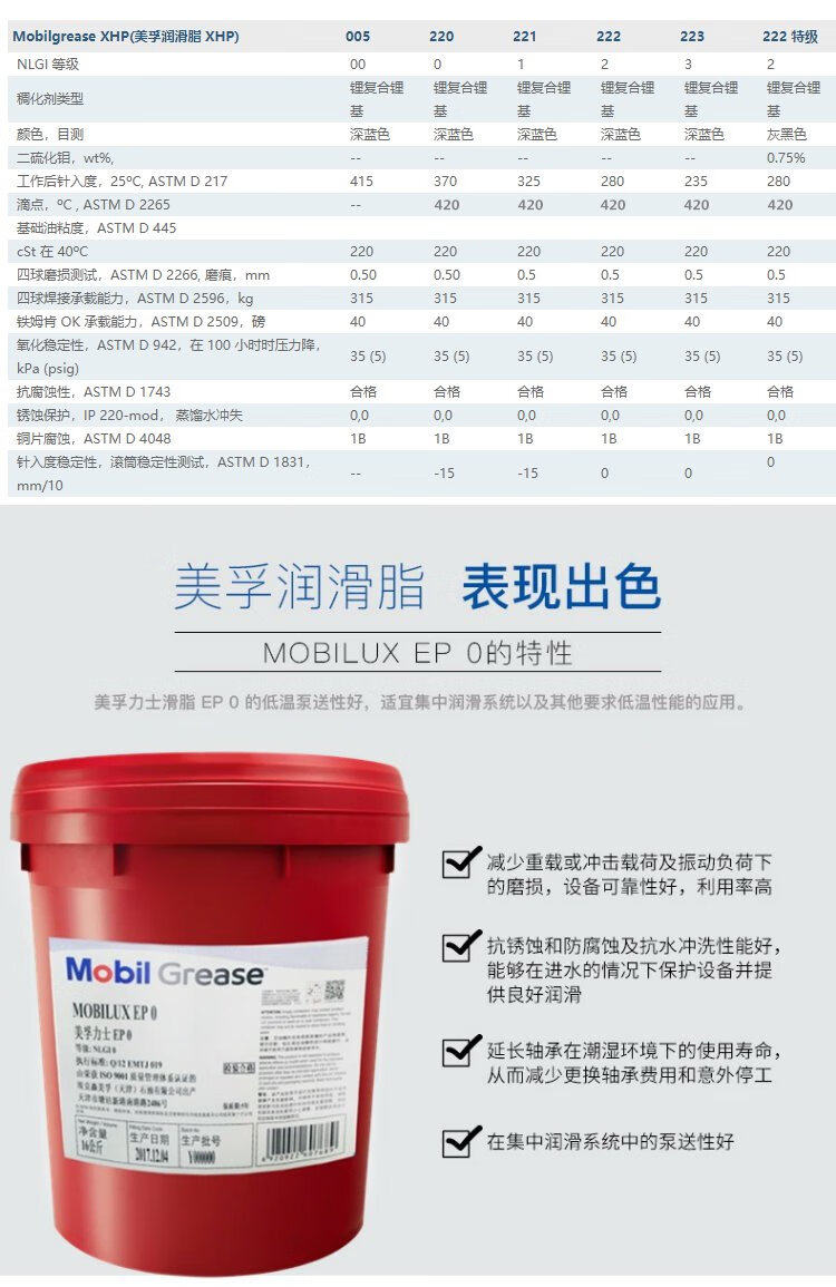 Butter grease EP0123 No. XHP222 Lux lubricant Mobil 16 kg bearing universal lithium grease high temperature wear-resistant Mobil high temperature grease XHP222 (180KG) blue