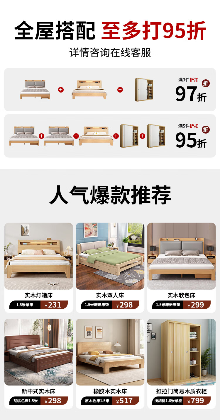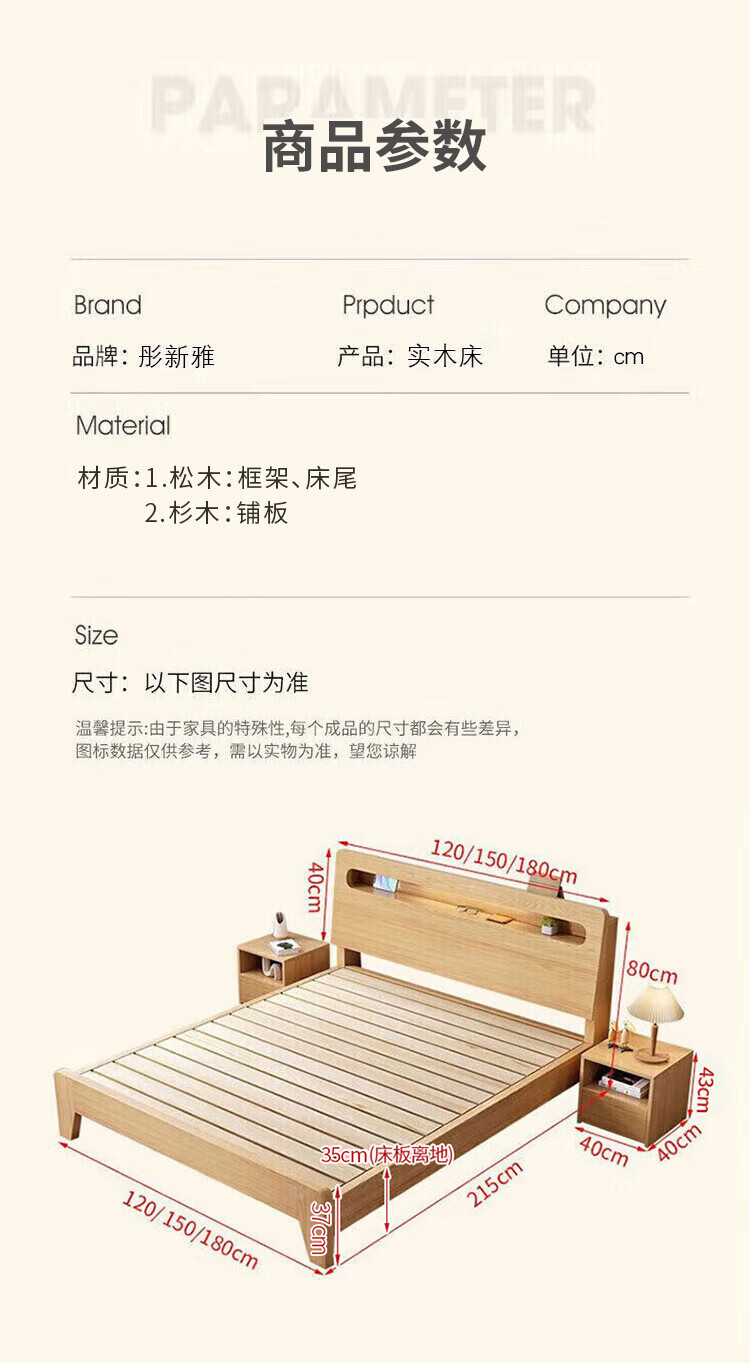 Tongxinya solid wood bed double bed master bedroom king bed pure solid wood 1.5 meters 1.8 meters single bed rental house bed wedding bed single bed (recommended by the store manager) 1.5*2 meters