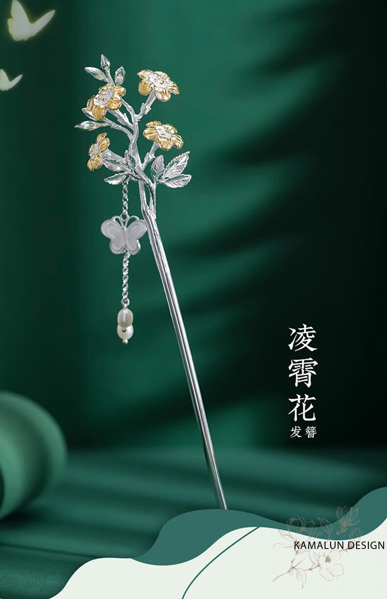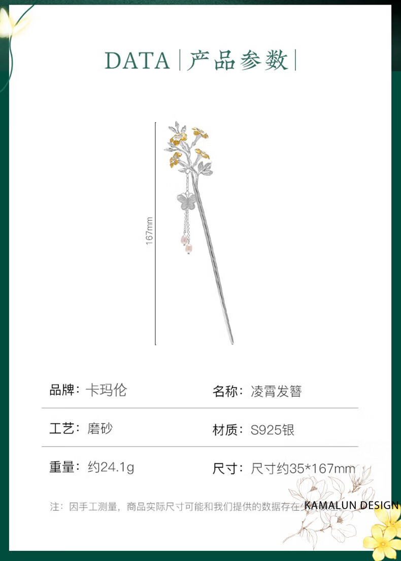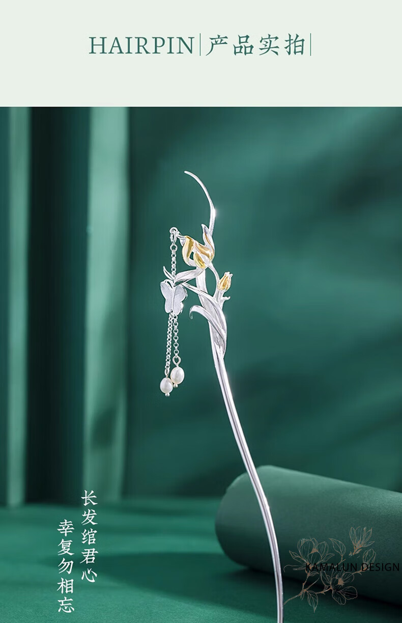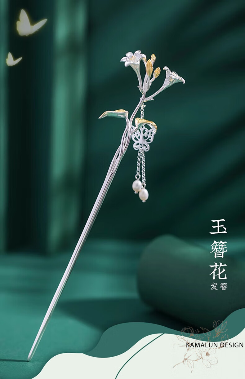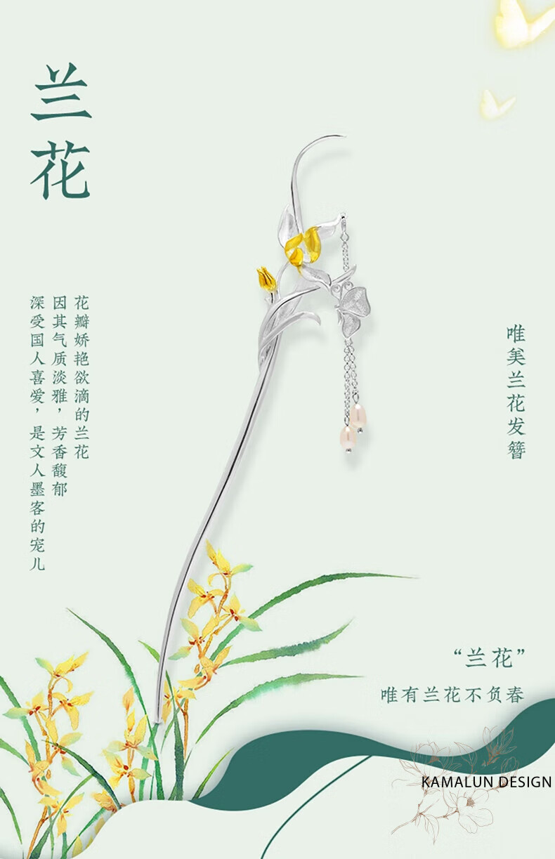 Kamalun (KAMALUN) hairpin, ancient style hairpin, new Chinese style Hanfu headdress, high-end silver hairpin, horse face skirt hair accessories for girlfriend, orchid hairpin, orchid heart + gift box