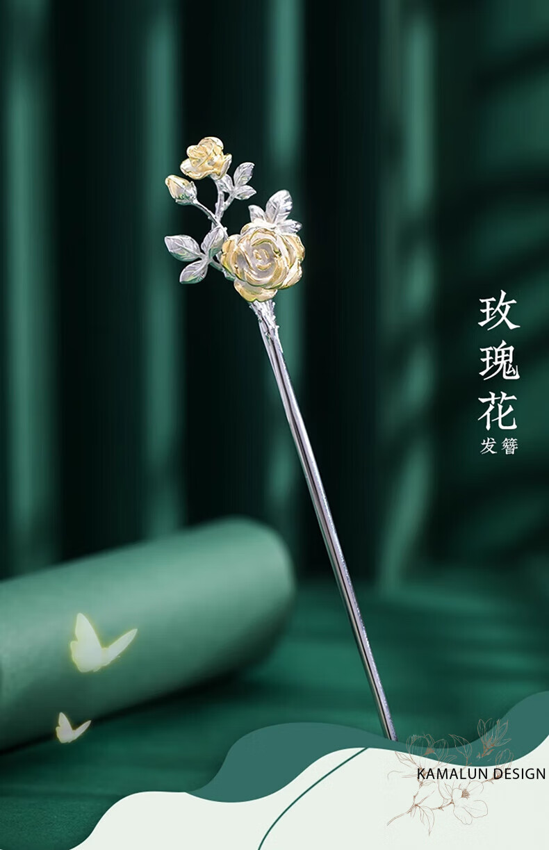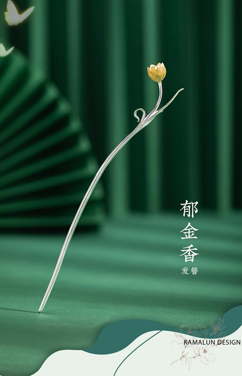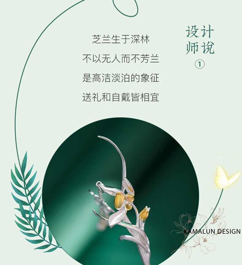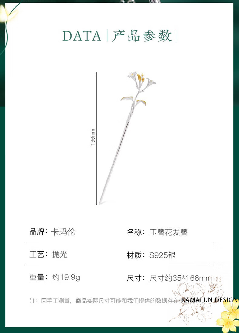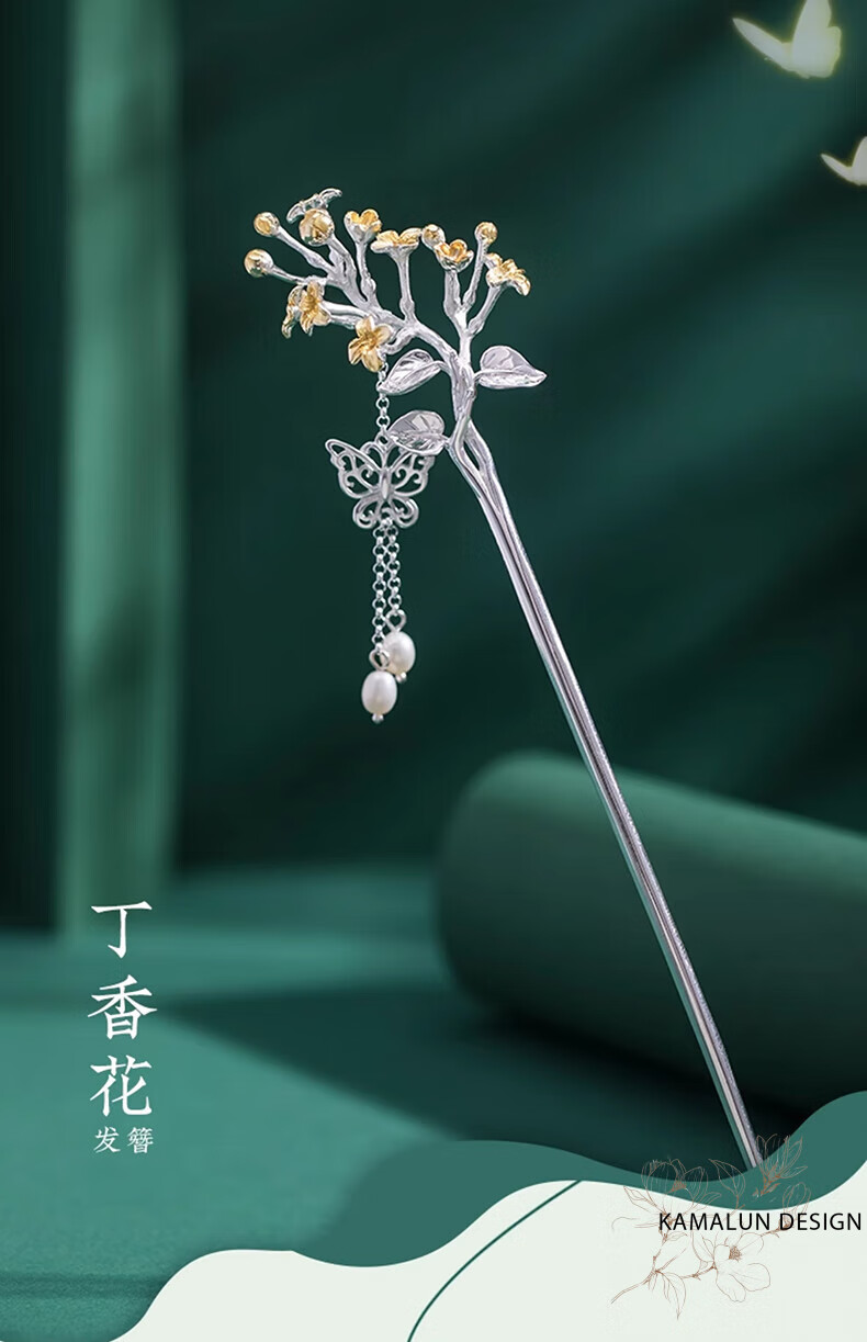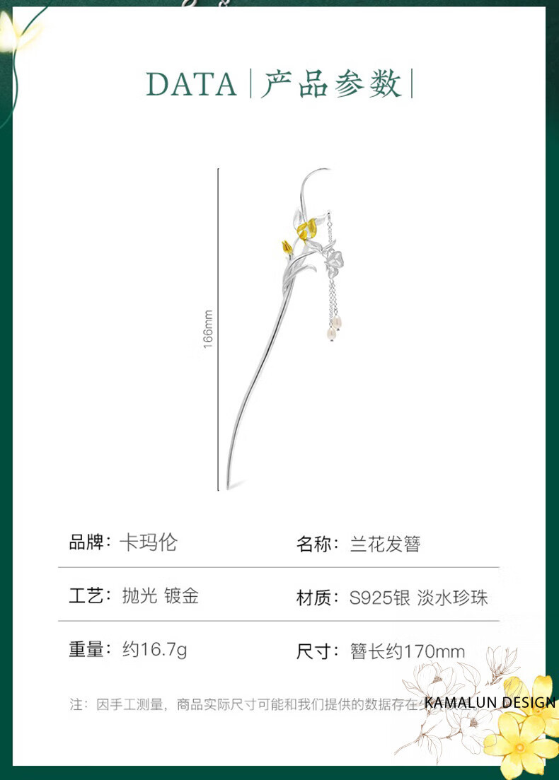 Kamalun (KAMALUN) hairpin, ancient style hairpin, new Chinese style Hanfu headdress, high-end silver hairpin, horse face skirt hair accessories for girlfriend, orchid hairpin, orchid heart + gift box
