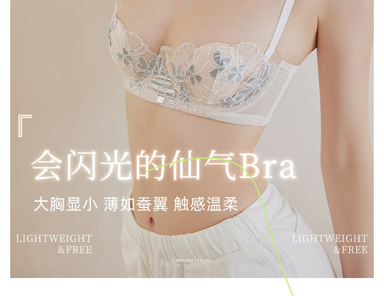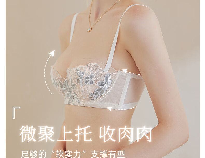 Modal half cup bra for big breasts, sexy bra for half cup women's French lace thin pure lust suit white suit 75B 34