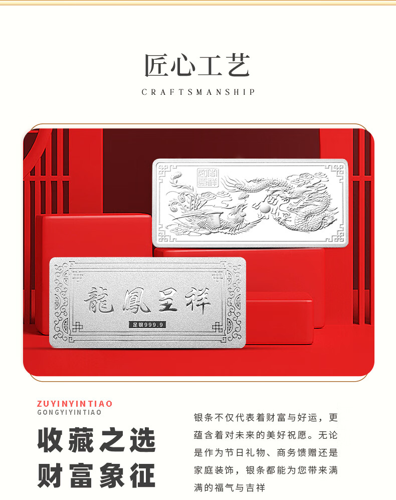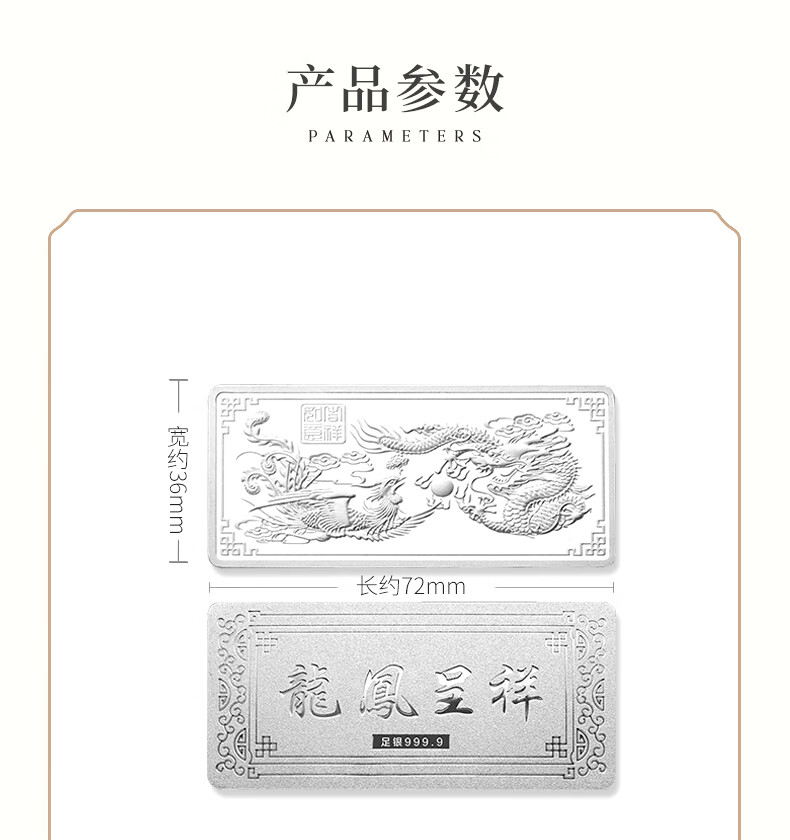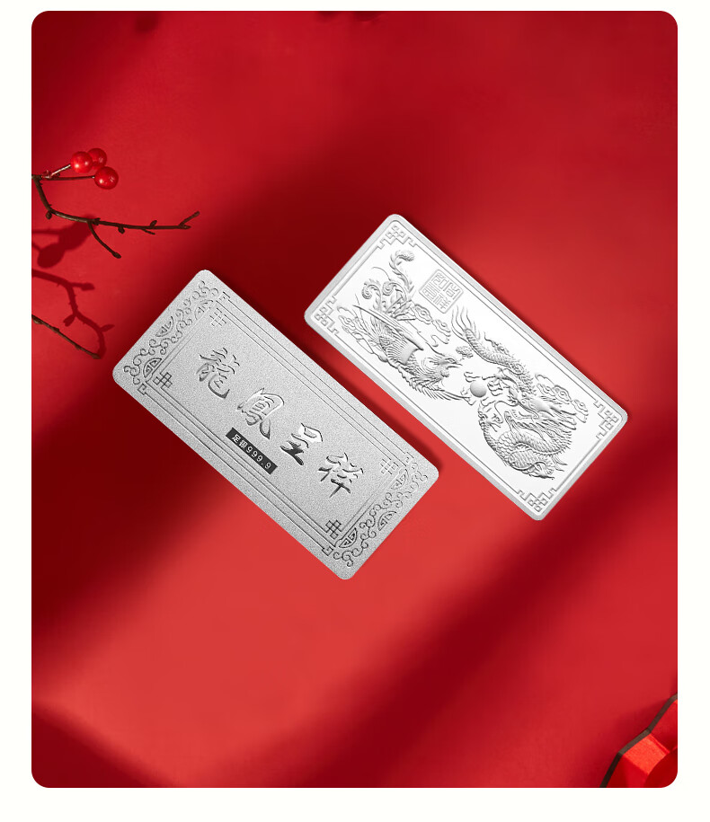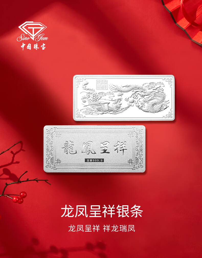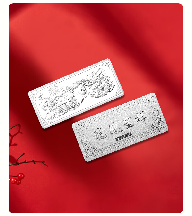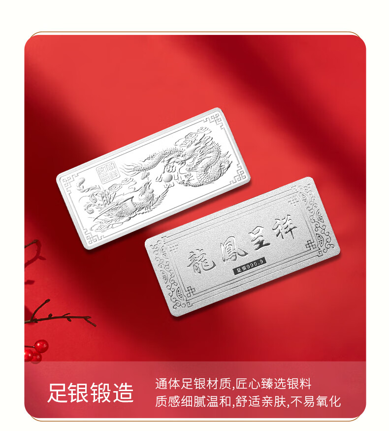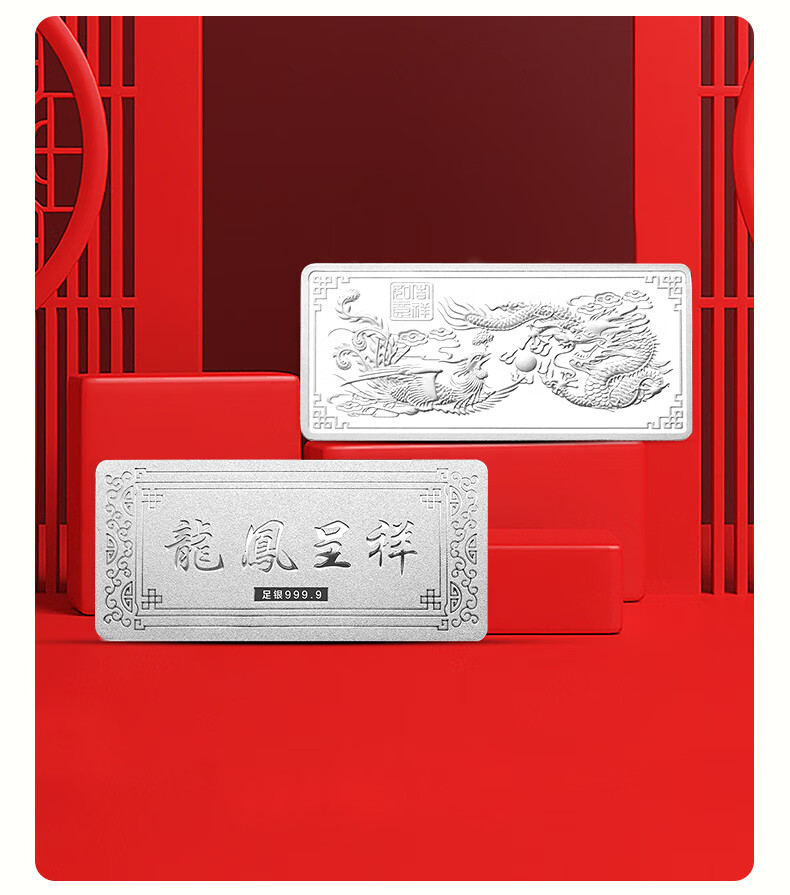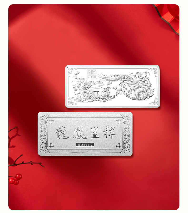 China jewelry pure silver 9999 pure silver investment silver bar silver brick silver ingot silver nugget broken silver collection stored value for birthday gift pure silver dragon and phoenix Chengxiang silver bar 50g with certificate + brand gift box + support for re-inspection
