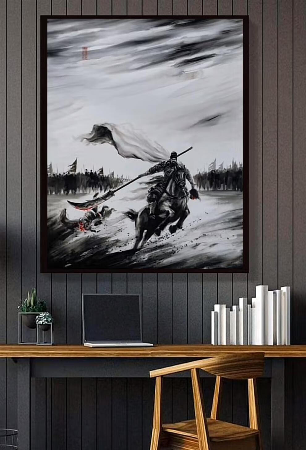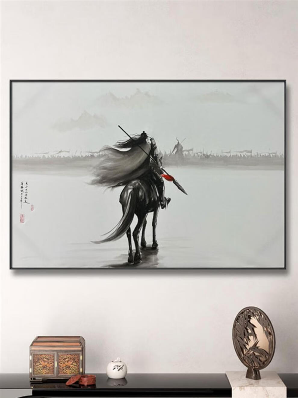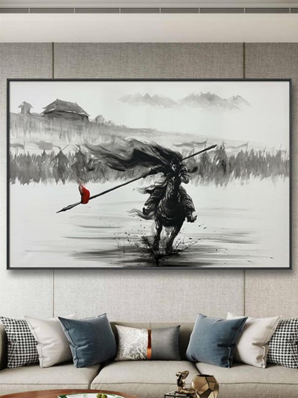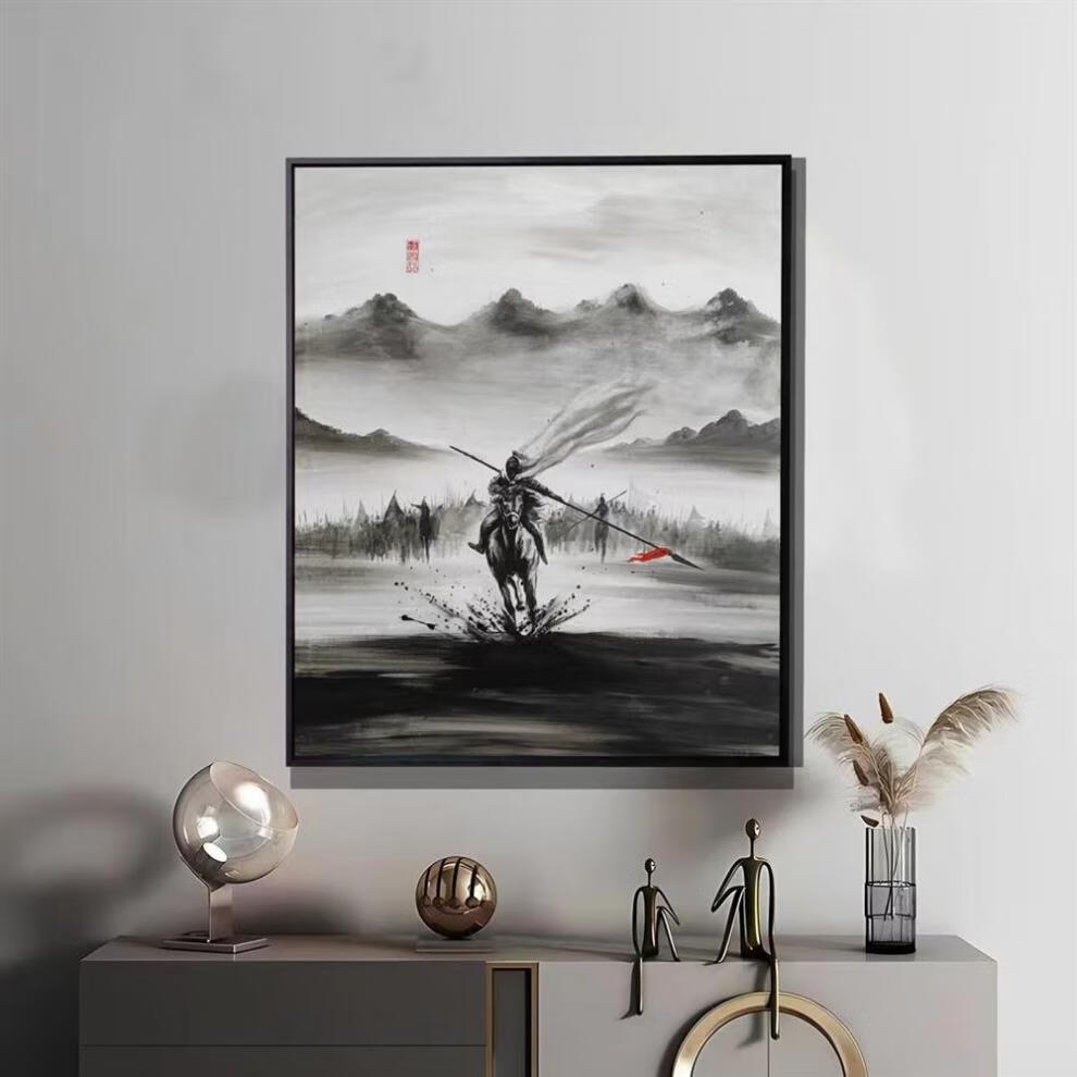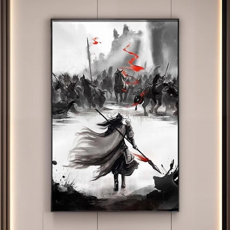 Pintura en tinta Zhao Zilong Cinco Tigre General Guan Yu pintura en tinta imagen de artes marciales antiguas Zhao Yun mural colgante pintura decorativa estilo C 50 * 70 CM aleación de aluminio cepillado-arte negro moderno