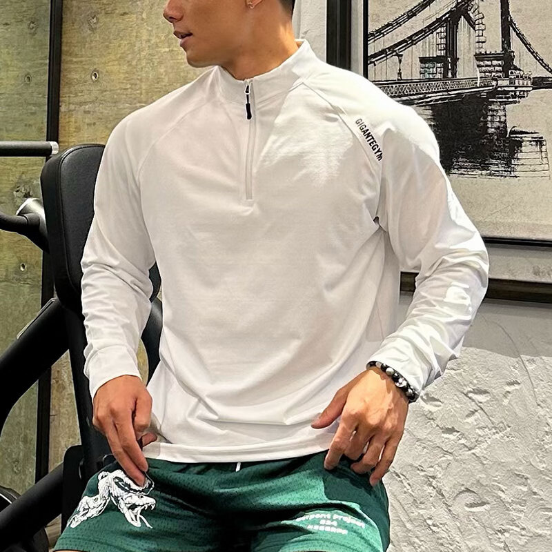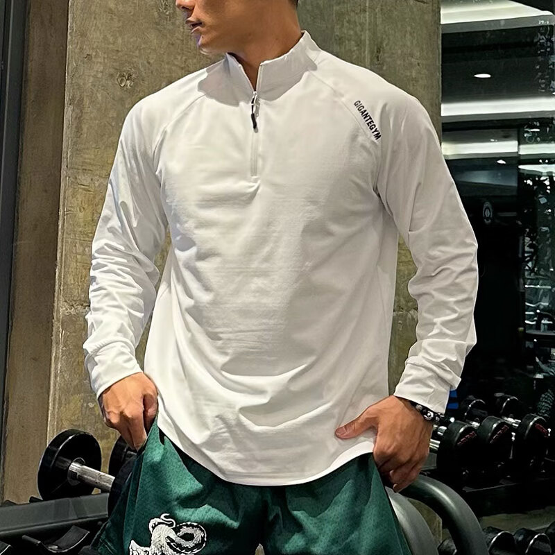 JEEP SPIRIT Jeep fitness long-sleeved men's loose elastic half-zip sports t-shirt running spring and autumn basketball training cycling jersey carbon gray M