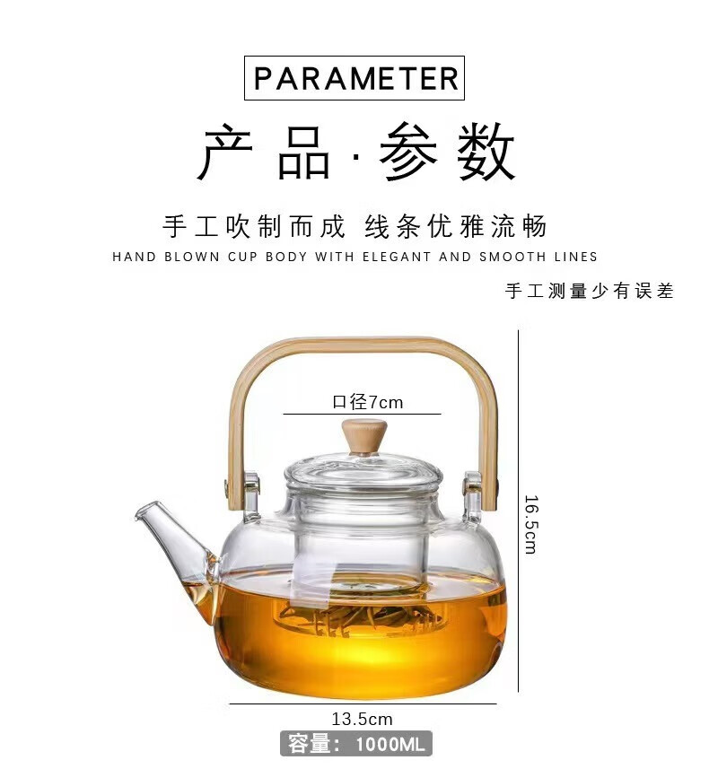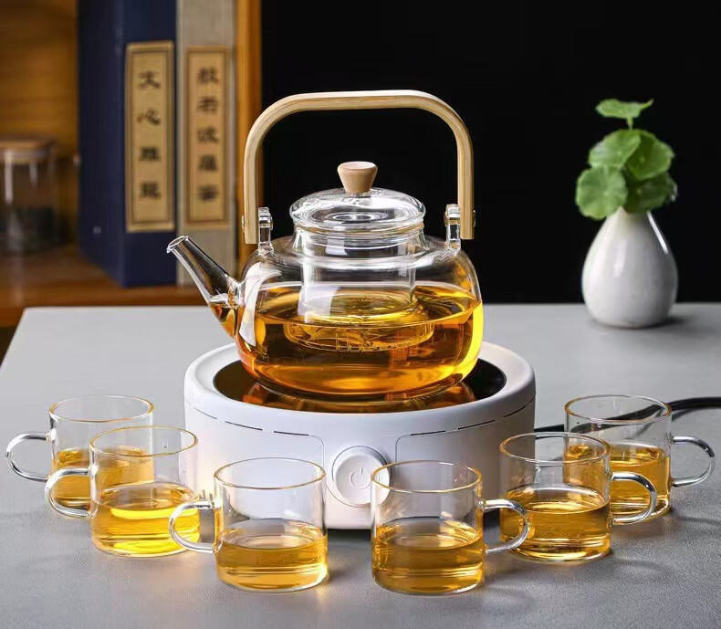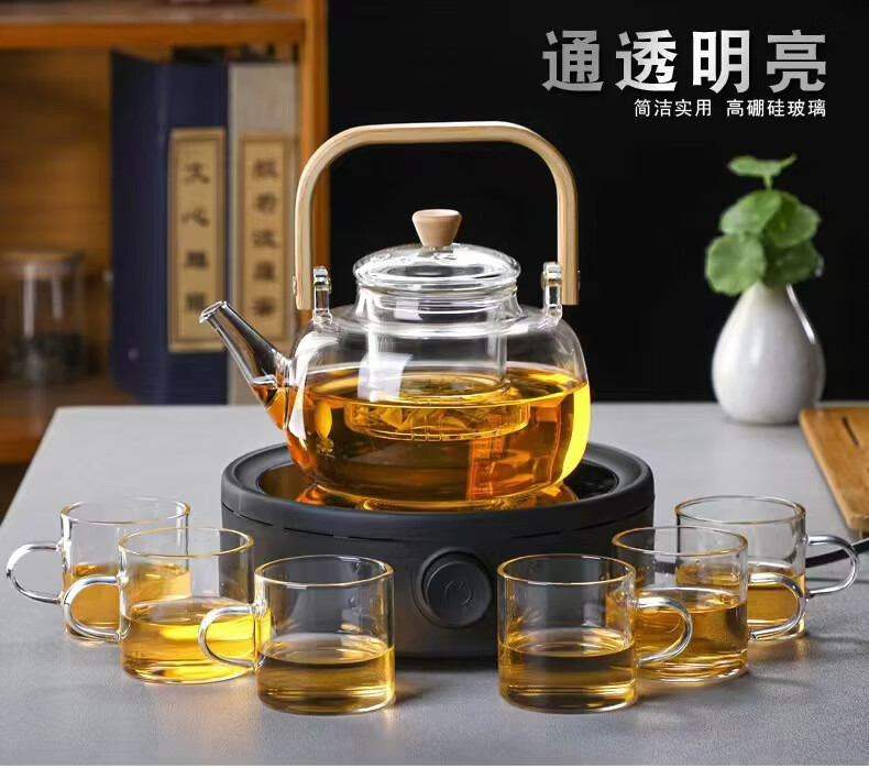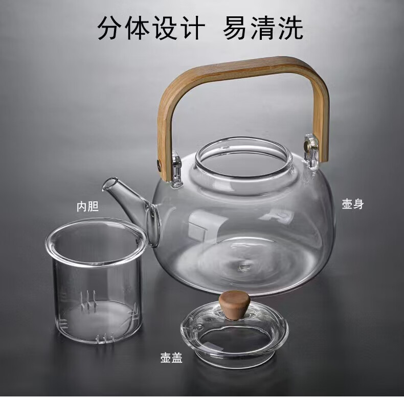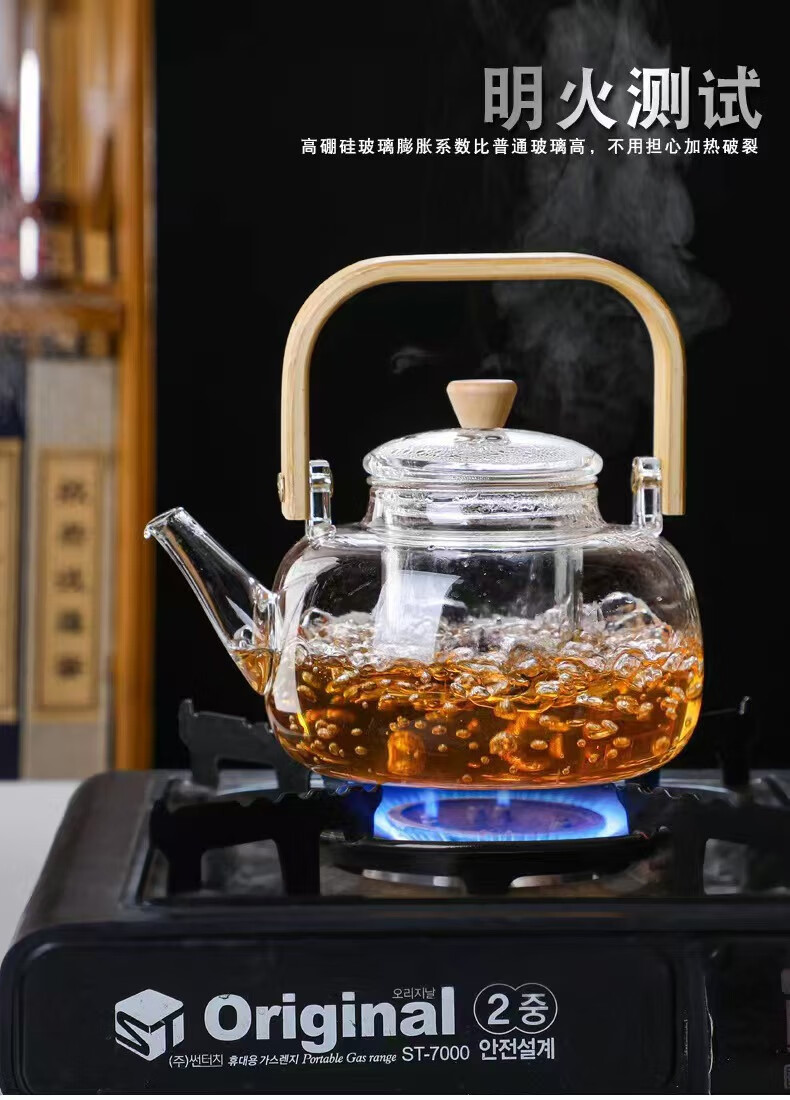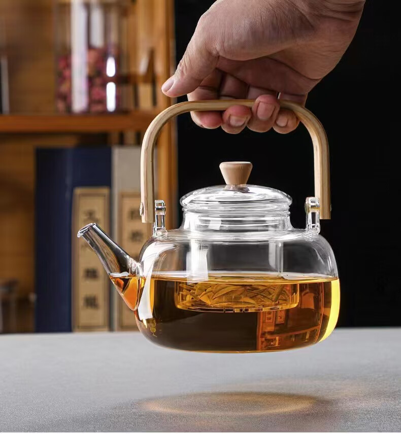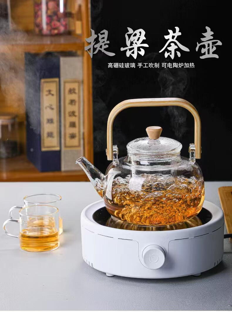 Dingwu glass teapot Chinese-style lifting kettle household high temperature resistant kettle electric ceramic stove steaming tea set stove kettle bamboo handle lifting kettle 1700ML