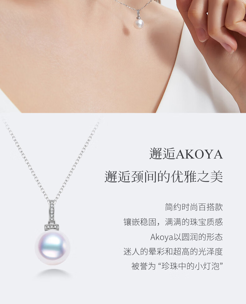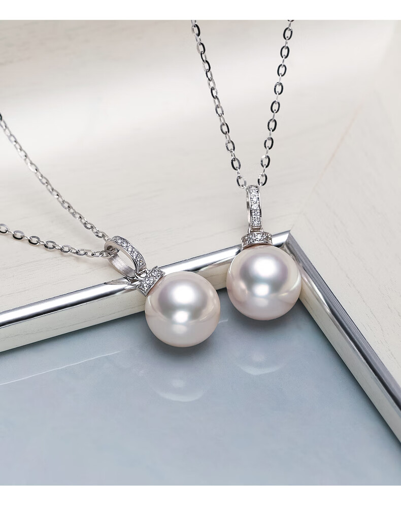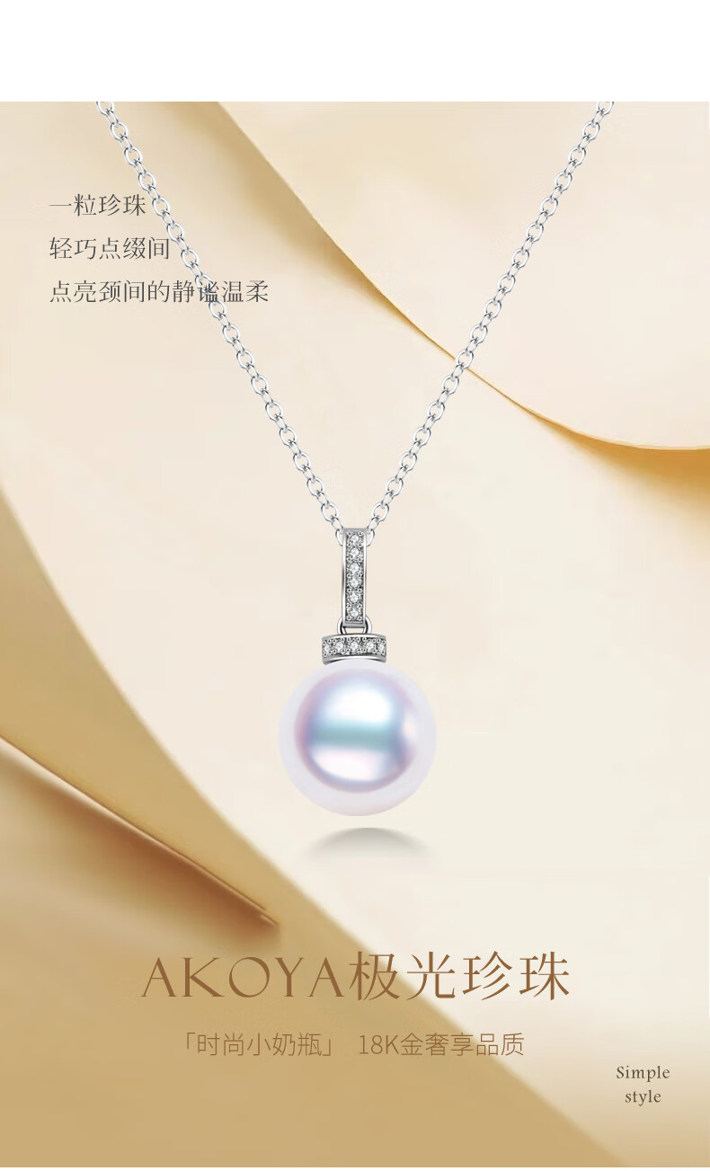 Haitong Internet celebrity milk bottle model 18K gold Aurora seawater Akoya pearl pendant single fashion necklace women's clavicle chain Aurora beads 8-8.5mm