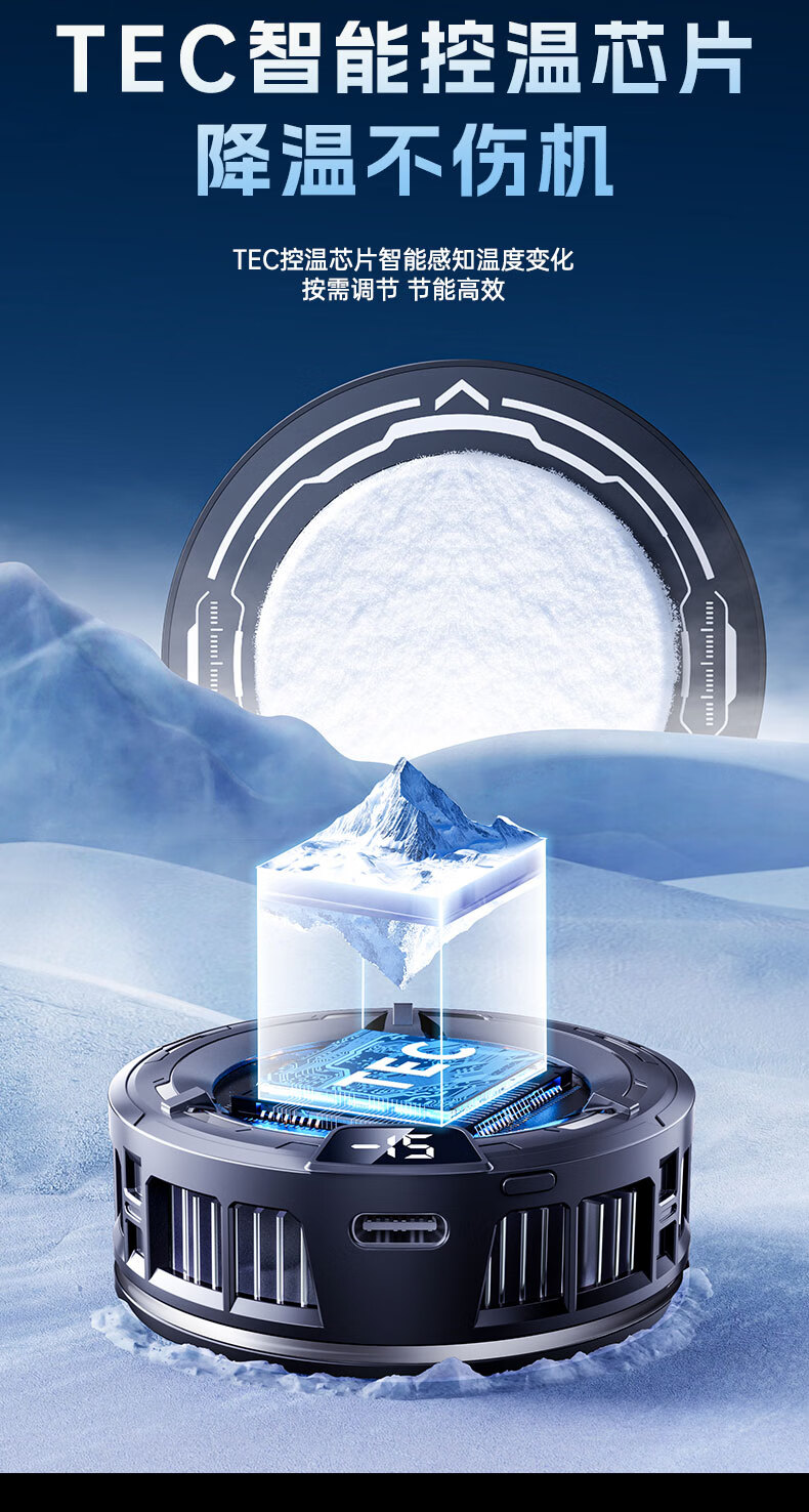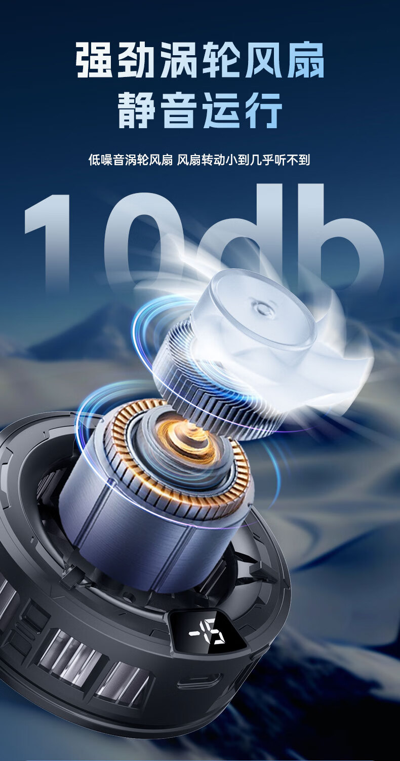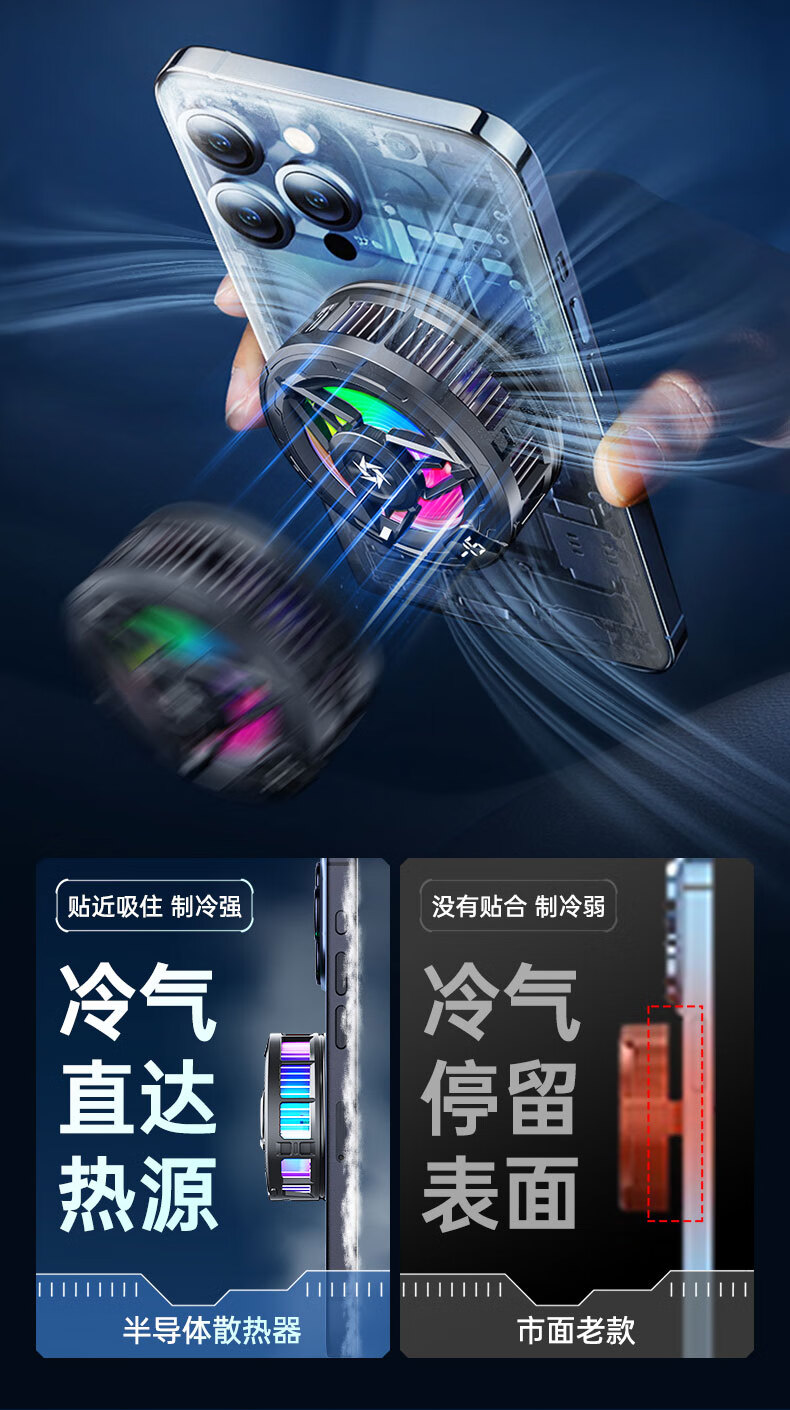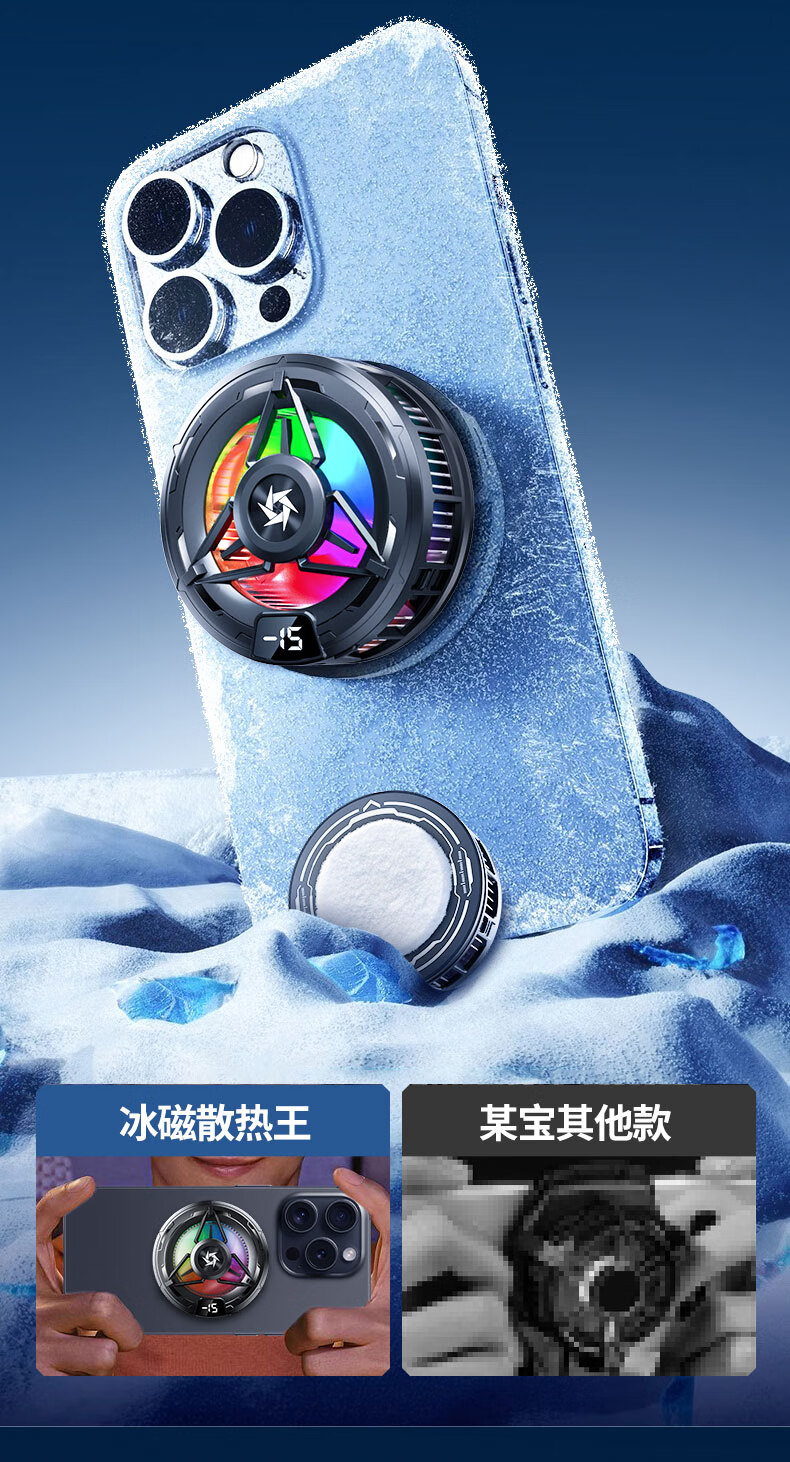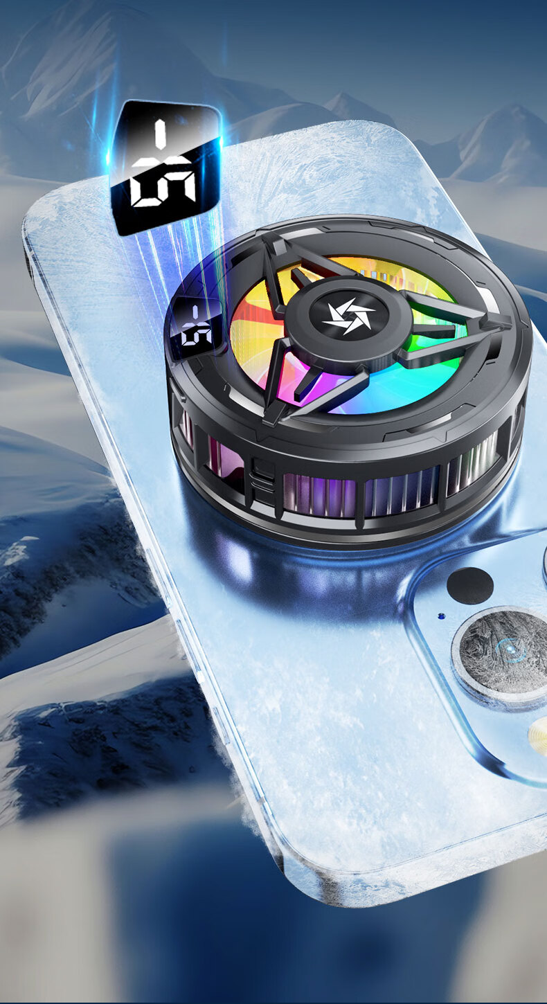 Gerberton 2025 New Upgrade丨Really Freezing Mobile Phone Radiator Tablet Magnetic Semiconductor Refrigeration Air Conditioner Back Clip Type Suitable for Huawei, Apple Phones, Tablets and Android Universal Obsidian Black Overclocking Icing Model Smart Digital Display丨Free Fingertip/Back Clip
